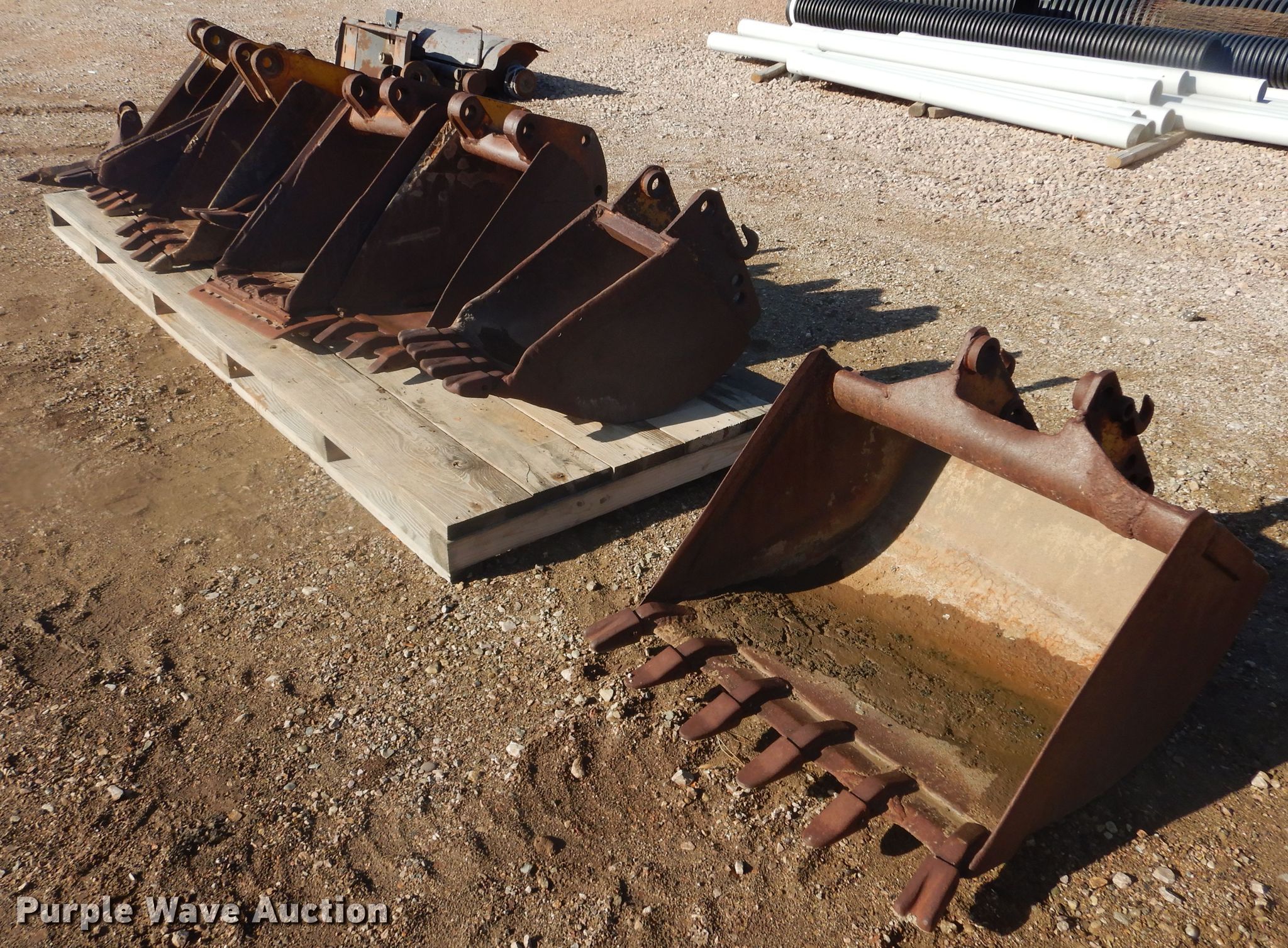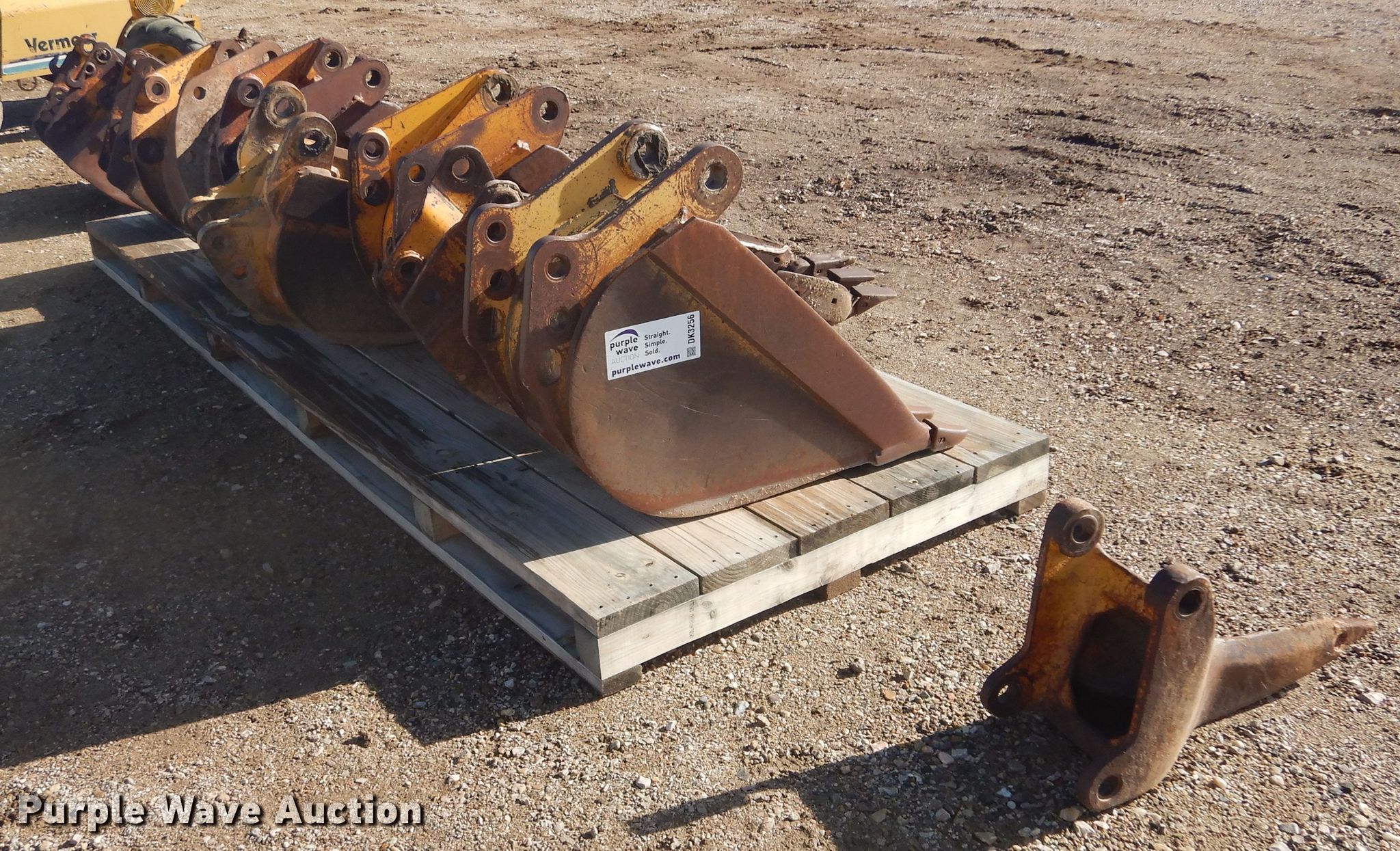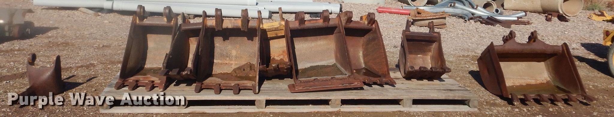 Purple Wave is selling a used Excavator Attach. in South Dakota. This item is a Excavator attachments with the following: 18" W bucket, (4) weld-on teeth, (2) 12" W bucket, (3) weld-on teeth, 24" W bucket, (4) weld-on teeth, 24" W bucket, Cutting edge: Weld-on, 17" W bucket, (4) weld-on teeth, Missing a tooth, 16" W bucket, (4) weld-on teeth, 35" W bucket, (6) weld-on teeth, 16" ripper shank