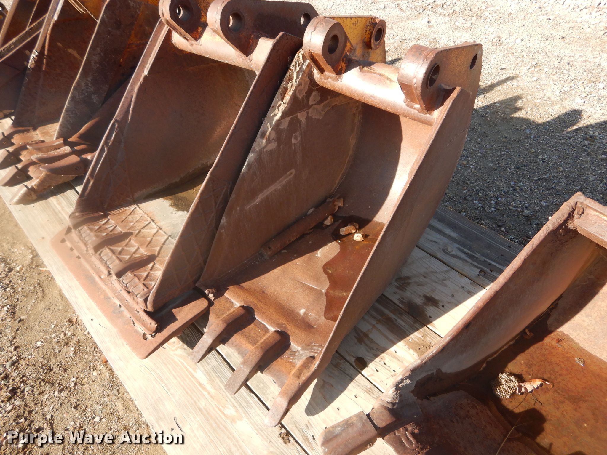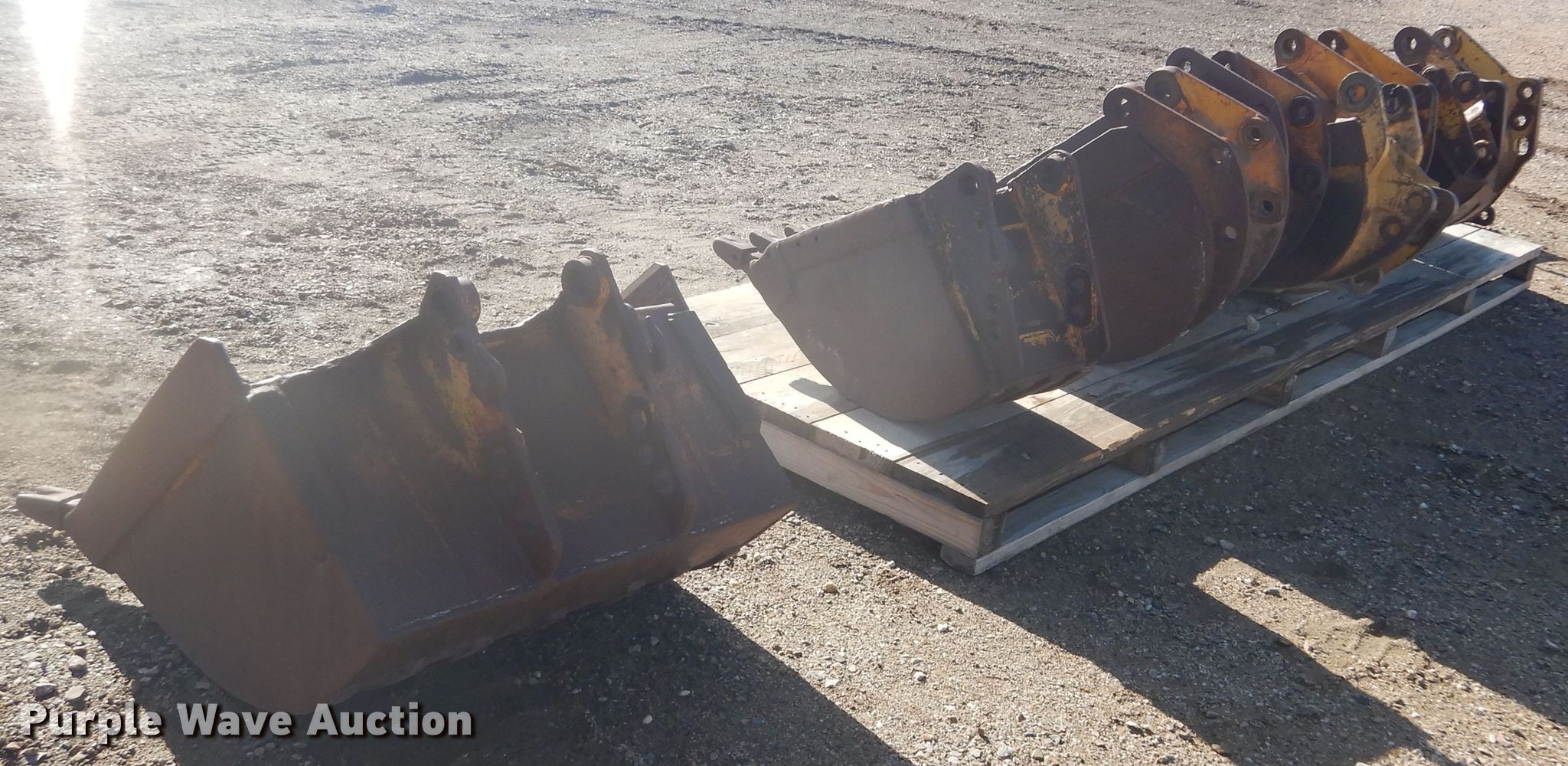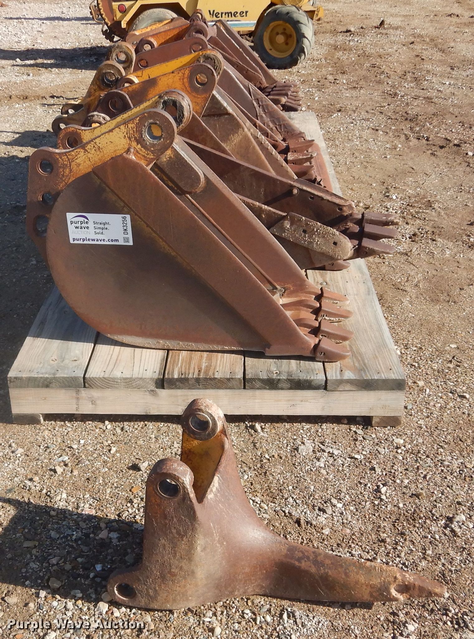 Purple Wave is selling a used Excavator Attach. in South Dakota. This item is a Excavator attachments with the following: 18" W bucket, (4) weld-on teeth, (2) 12" W bucket, (3) weld-on teeth, 24" W bucket, (4) weld-on teeth, 24" W bucket, Cutting edge: Weld-on, 17" W bucket, (4) weld-on teeth, Missing a tooth, 16" W bucket, (4) weld-on teeth, 35" W bucket, (6) weld-on teeth, 16" ripper shank