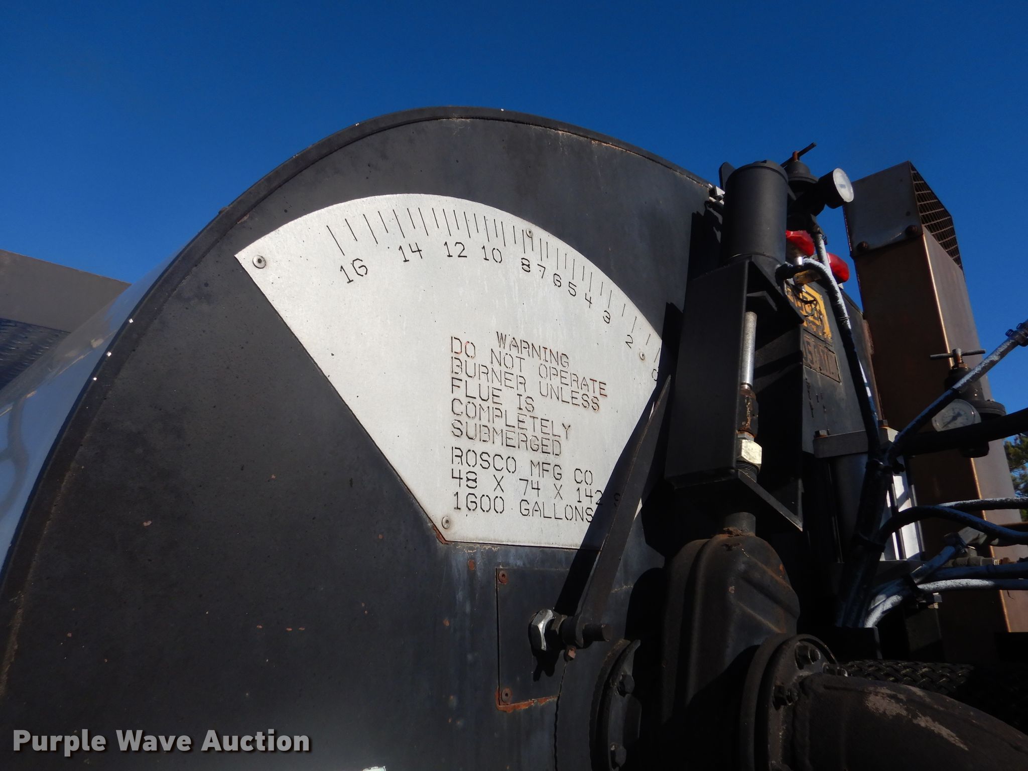 1995 Ford CF8000 oil distributor truck. Miles: 132,466 on odometer, Hours: 3,277 on meter, VIN: 1FDYH81E9SVA67671. Engine Cummins C Series, Displacement: 8.3L, Cylinders: 6, Fuel type: Diesel. Transmission Automatic. Chassis Axles: Single, Suspension: Spring, Brakes: Air, PTO, GVWR: 36,000 lbs. Interior Heat, Heated mirrors. Operational Bed / tank Rosco Maximizer, Serial: 33744, Capacity: 1,500 gallons, 12' 1" L x 6' 6" W, Oil distributor Burner: Diesel, Spray boom Width: 11', Folding, Side shift, Nozzles: 36, Fuel Compartments: 1. Tires Size: 11R22.5. South Dakota title. Title distribution may be delayed up to 30 days from verification of funds. 9417 Sturgis Rd. Black Hawk, SD 57718