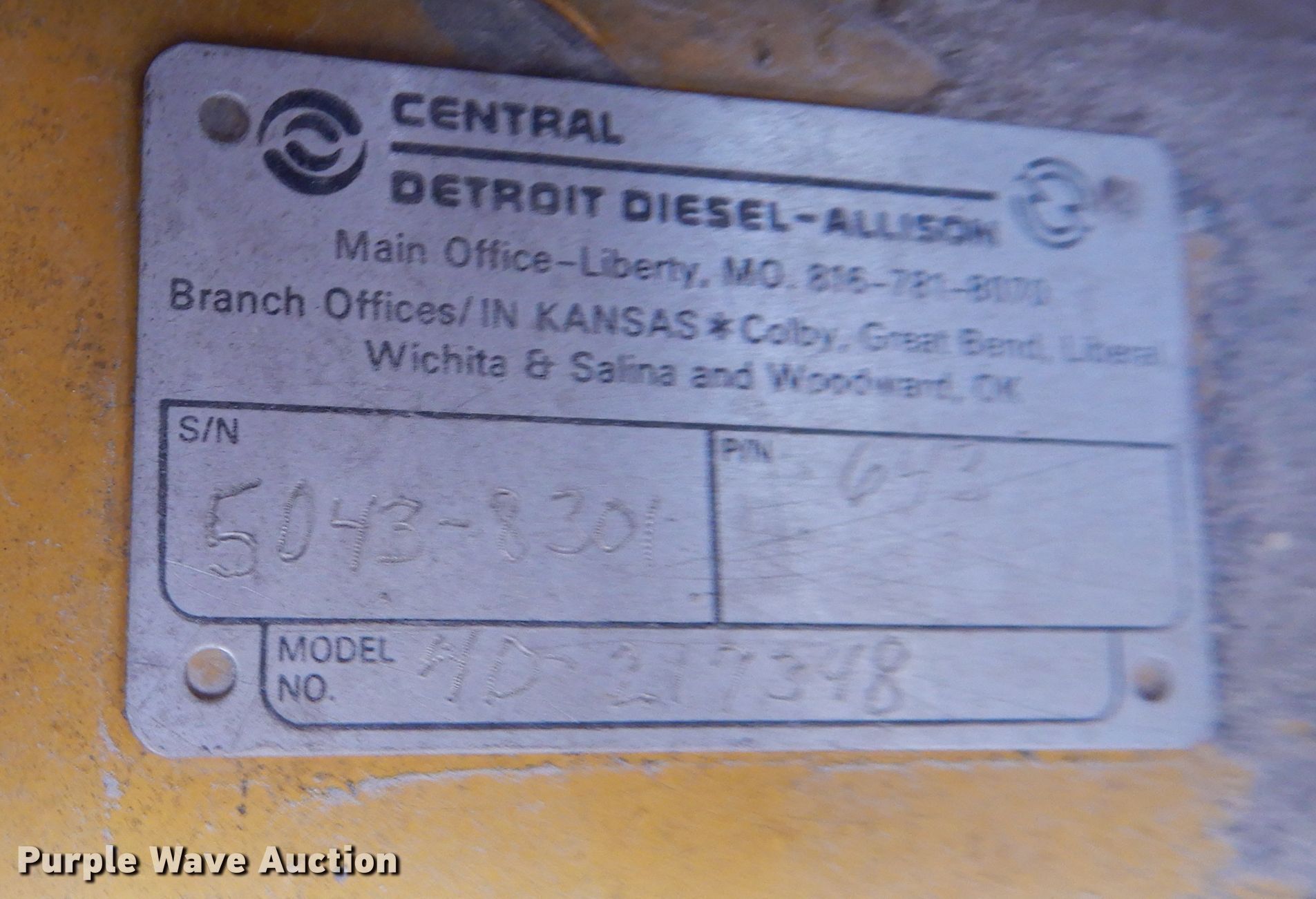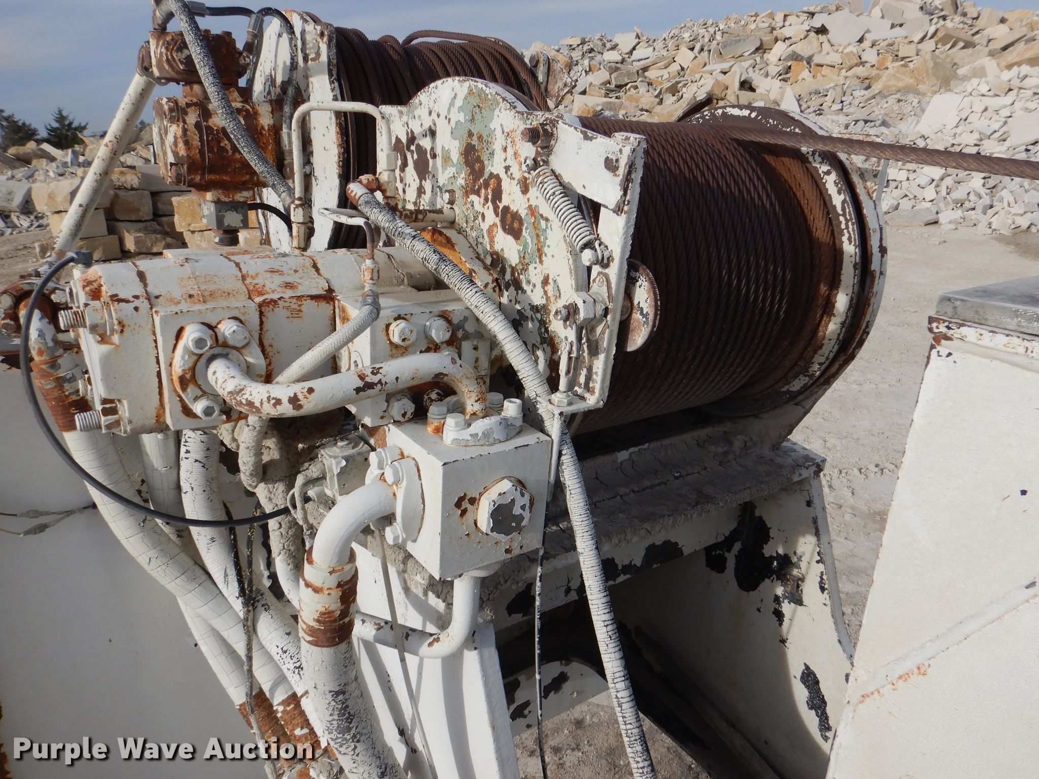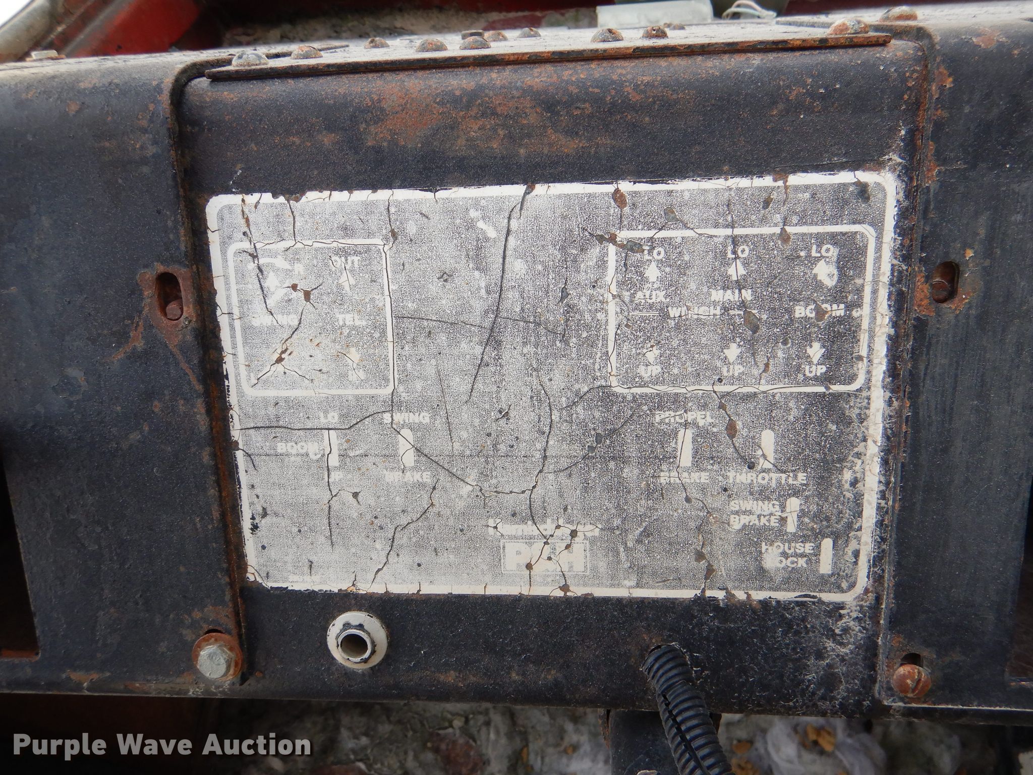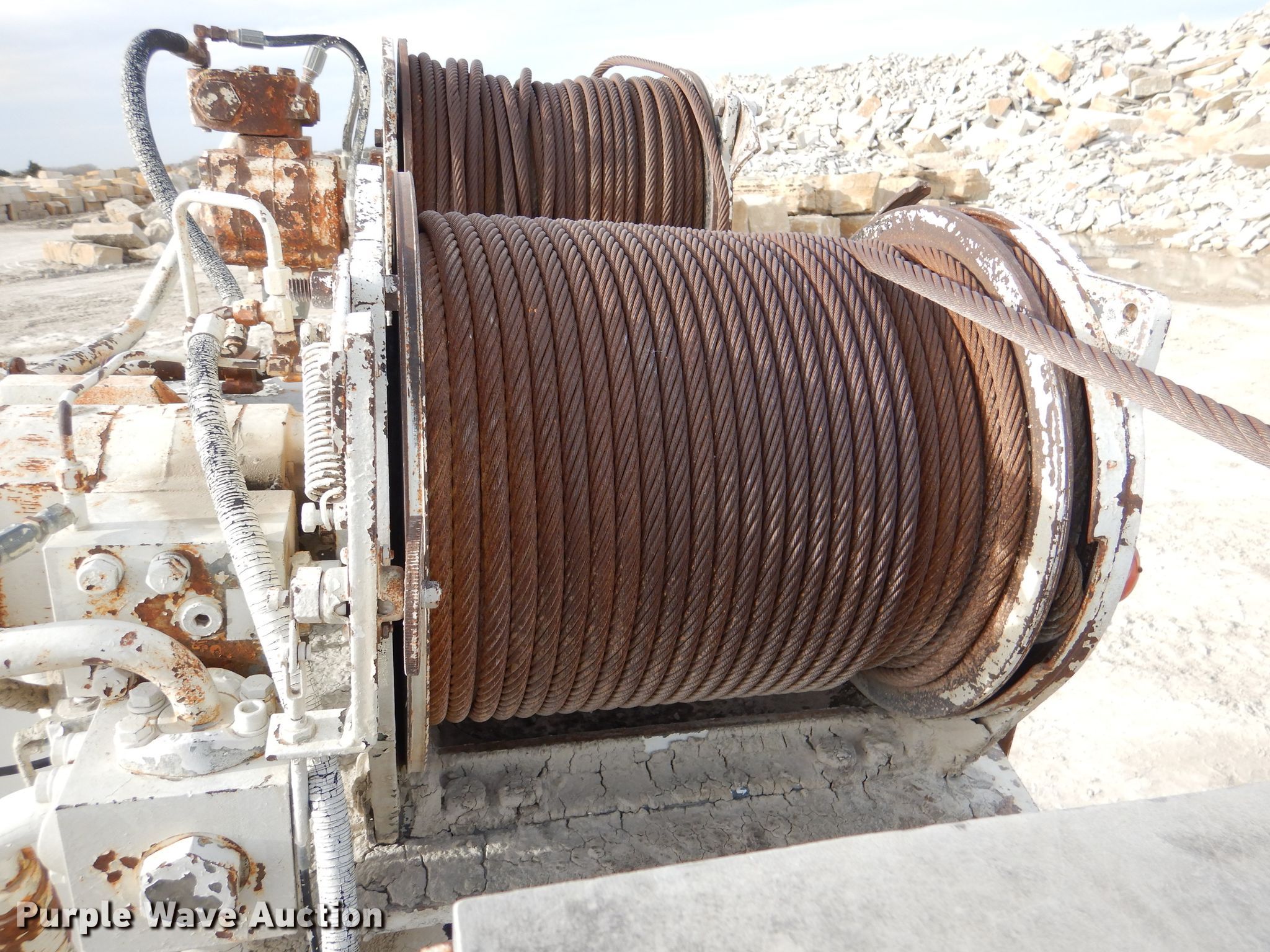 P&H Omega crane. Hours: 1,867 on meter. Engine Detroit Diesel, Cylinders: 4, Fuel type: Diesel. Transmission Powershift, 3F - 3R. Operators station Enclosed cab, Crane controls: Stick. Operational Boom Telescopic, Boom length: 80', Sections: 3, Maximum lift height: 85', Jib: 30', Stabilizers: 4, Boom controls In-cab, Winches: 2, Crane block Sheaves: 3. Tires Size: 20.5-25. Notes Glass cracked, Non-operational unit. US Stone Industries LLC. Herington, KS 67449