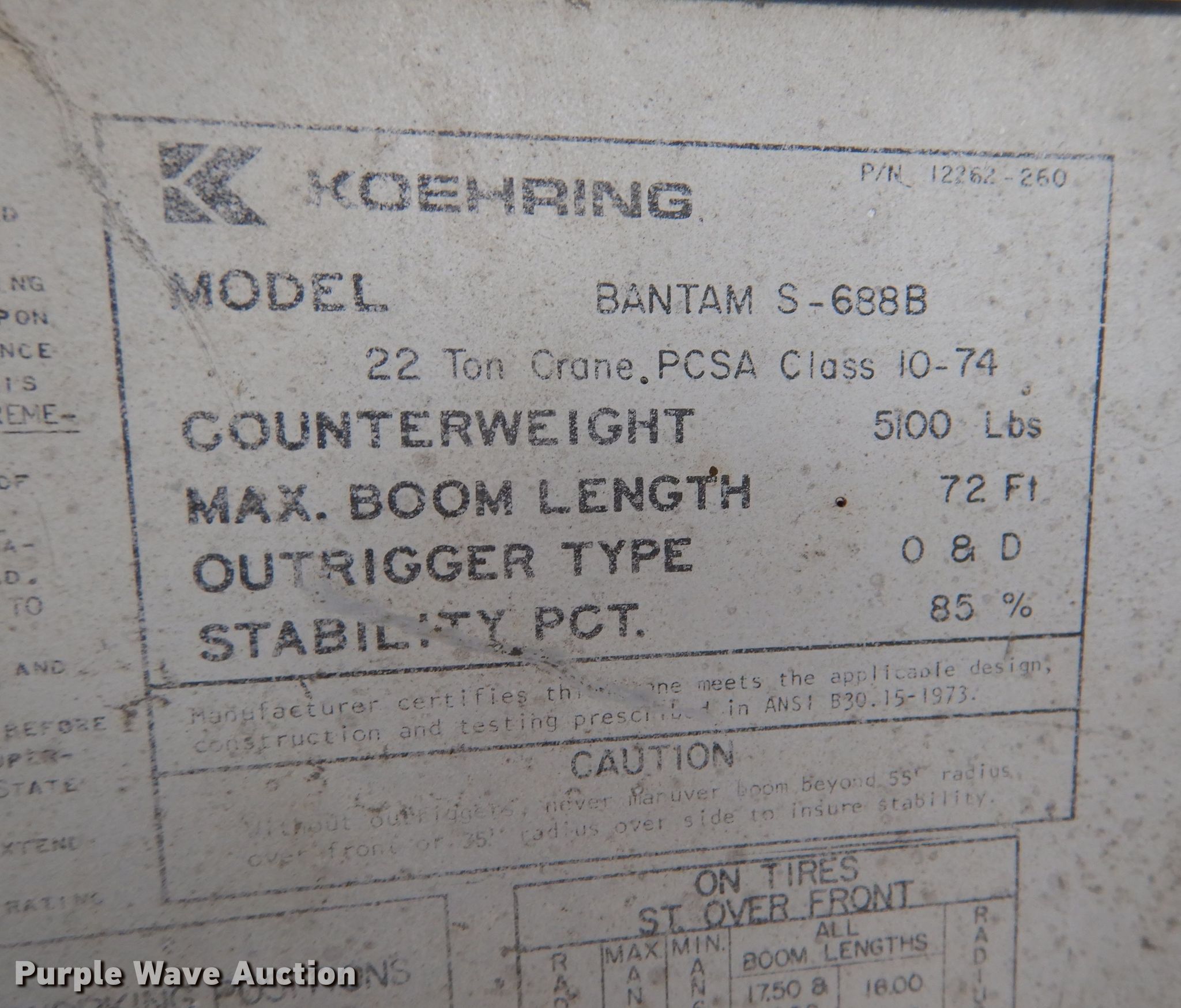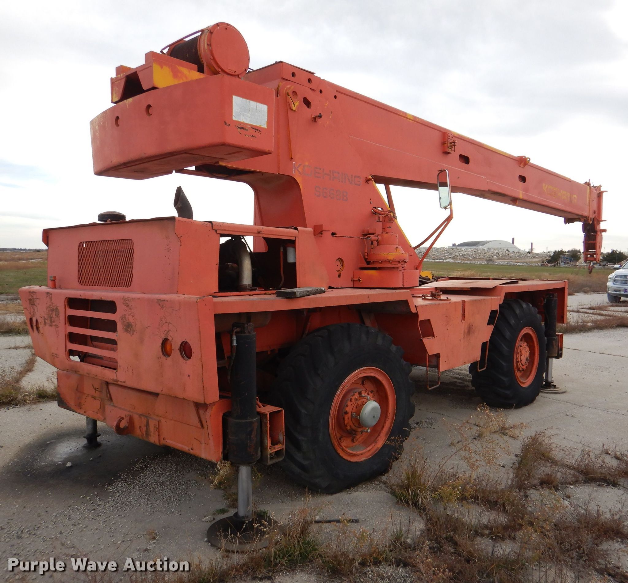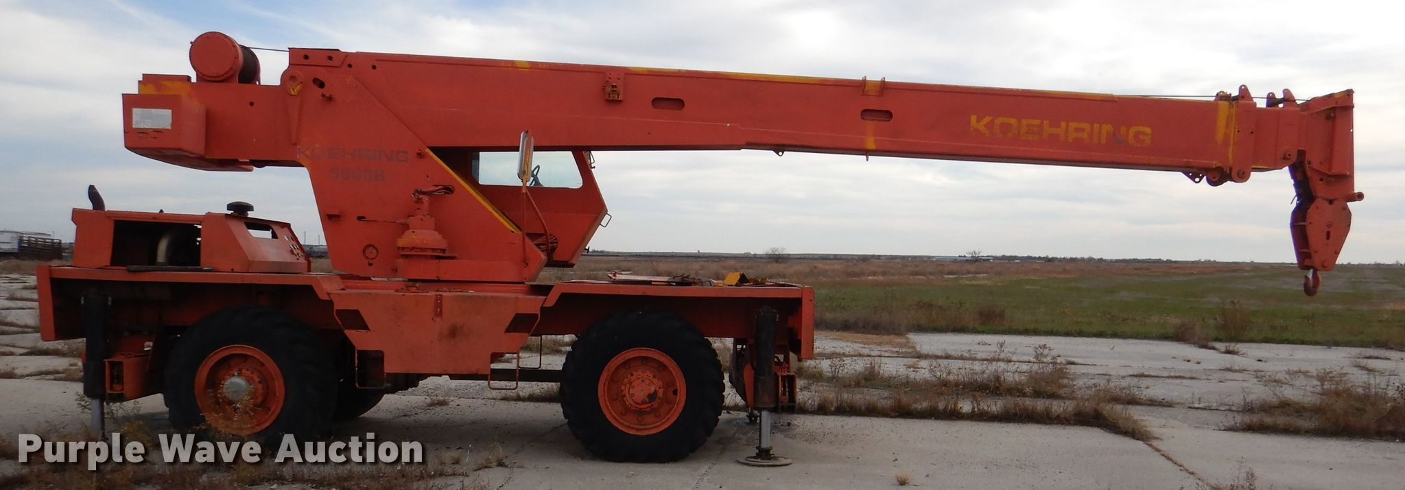 Purple Wave is selling a used Rough or All Terrain Crane in Kansas. This item is a Koehring S668B crane with the following: Hours: 6,885 on meter, Serial: 79084
