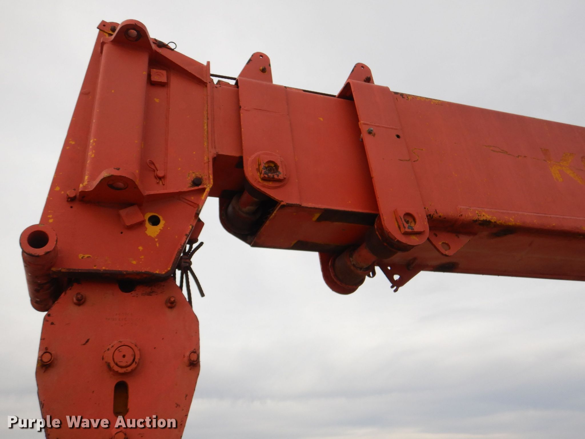 Koehring S668B crane. Hours: 6,885 on meter, Serial: 79084. Engine Detroit Diesel, Cylinders: 4, Fuel type: Diesel. Transmission Automatic. Operators station Enclosed cab, Crane controls: Stick. Operational Boom Telescopic, Sections: 3, Maximum lift capacity: 44,000 lbs, Maximum lift height: 72', Stabilizers: 4, Boom controls In-cab, Winches: 1, Crane block Sheaves: 3. Tires Size: 17.5-25. Notes Missing glass, Unknown operating condition. US Stone Industries LLC. Herington, KS 67449