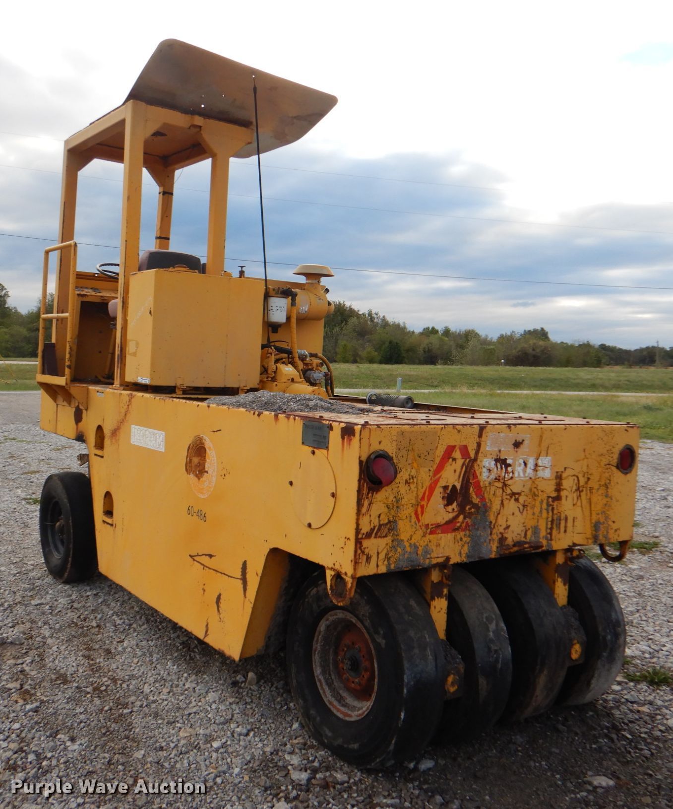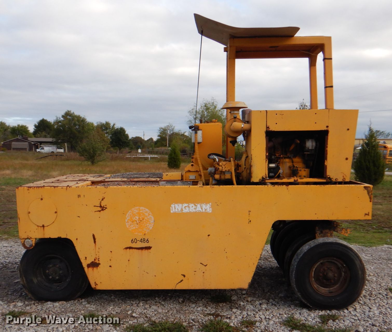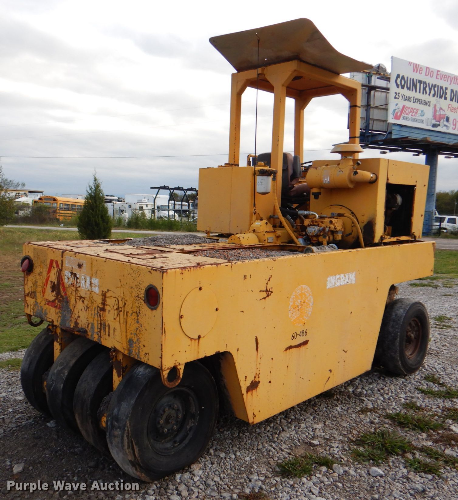 1988 Ingram 9-2800-PA pneumatic roller. Hours: 1,580 on meter, Serial: 588577PA22. Engine Cylinders: 4, Fuel type: Diesel. Transmission Hydrostatic. Tires Size: 8.5.00.90-15, Quantity: 9. Notes Non-operational unit. 15600 N 145th E Ave. Collinsville, OK 74021
