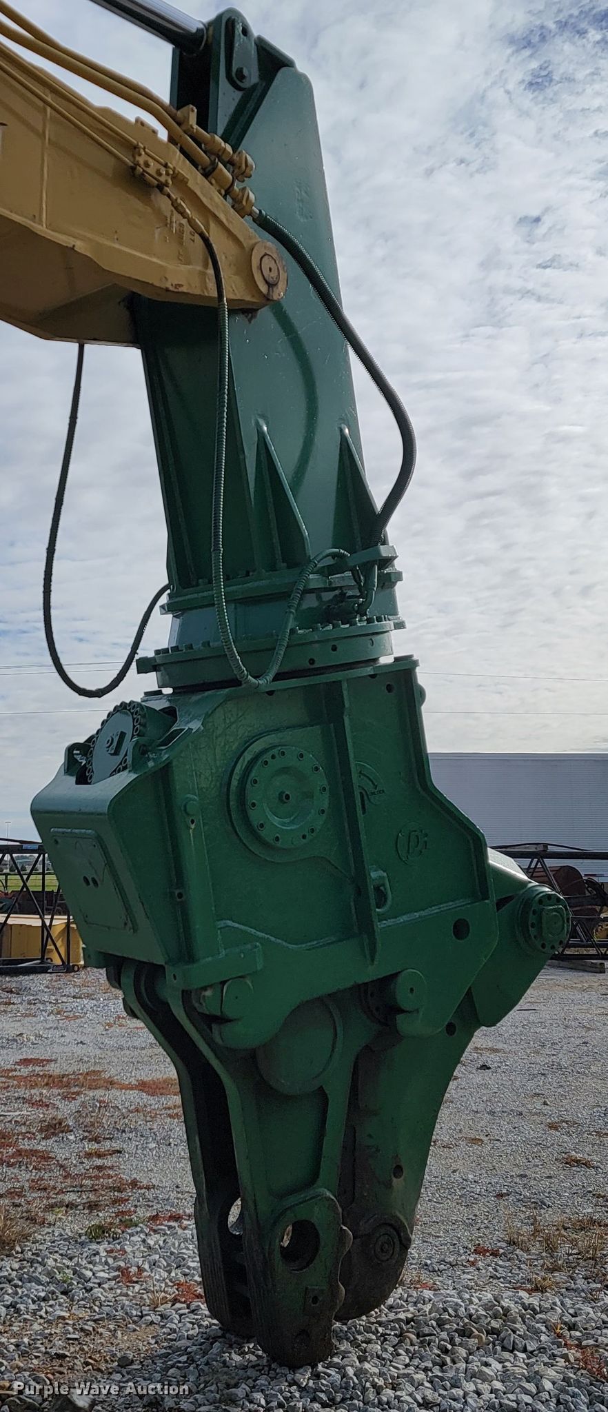 Purple Wave is selling a used Shear or Processor in Missouri. This item is a Kinshofer MQP 60-Y processor with the following: Rotating head, 5368 lbs, Cycle time: 2.8 seconds, Operating weight: 45-65 tons