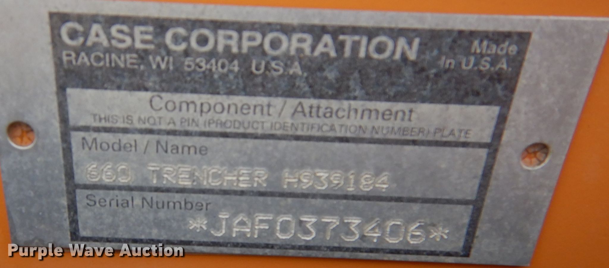 Purple Wave is selling a used Trencher or Rock Saw in Kansas. This item is a 2003 Case 660 trencher with the following: Hours: 2,556 on meter, Serial: DFG0004013