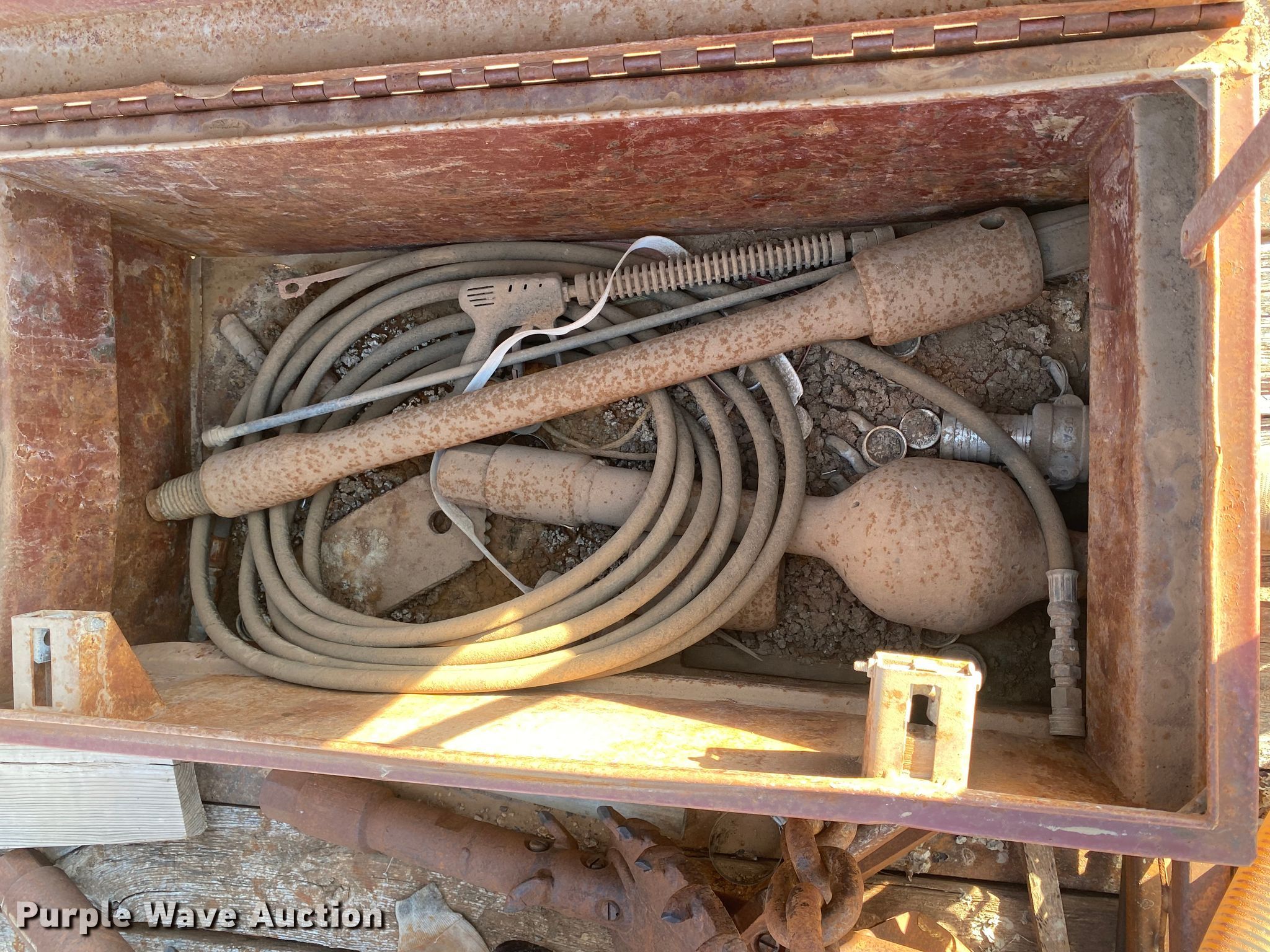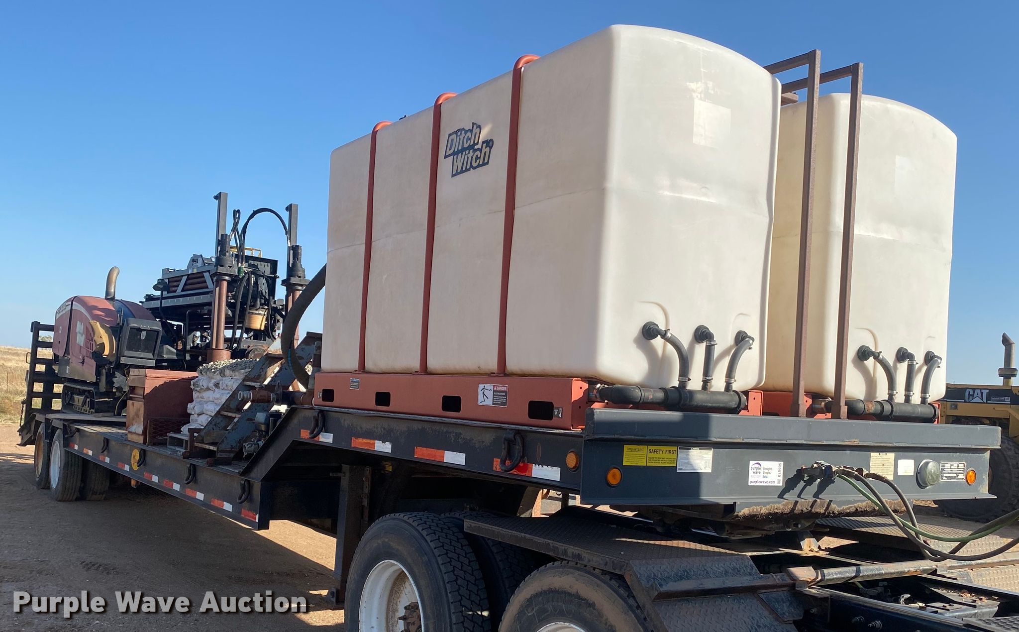 Ditch Witch JT3020 Mach 1 directional boring unit with trailer. Hours: 2,408 on meter. Operational Ground drive remote Tethered, Water pump Bean L0918 HD, GPM: 70, Drill stems On drill: 48, Drill stem length: 10', Rear hydraulic stabilizers, Hydraulic stake down, Fluid mix system Ditch Witch FM13, Mix system capacity: 1,500 gallons, Engine Cummins OSB4 5, Serial: 3284006, Beaver tail back reamers (2) 12", 16". Tracks Width: 12", Rubber. Notes Possible wiring issues, Unknown operating condition. 2005 Viking VFD46R16F35T drop deck equipment trailer VIN: 1V9CR46215N062777. Dimensions Overall: 47' L x 102" W, Deck: 30' L x 102" W, Top deck length: 114", Tail length: 5', Ramps: Manual Length: 6'. Operational Deck type: Wood. Chassis Landing gear: Dual, Suspension: Spring, Brakes: Air, Axles: Tandem, GVWR: 86,000 lbs, GAWR: 20,280 lbs. Tires Steel wheels, Size: 255/70R22.5. Oklahoma title. HW 270 S 14305 N, OK-23. Beaver, OK 73932