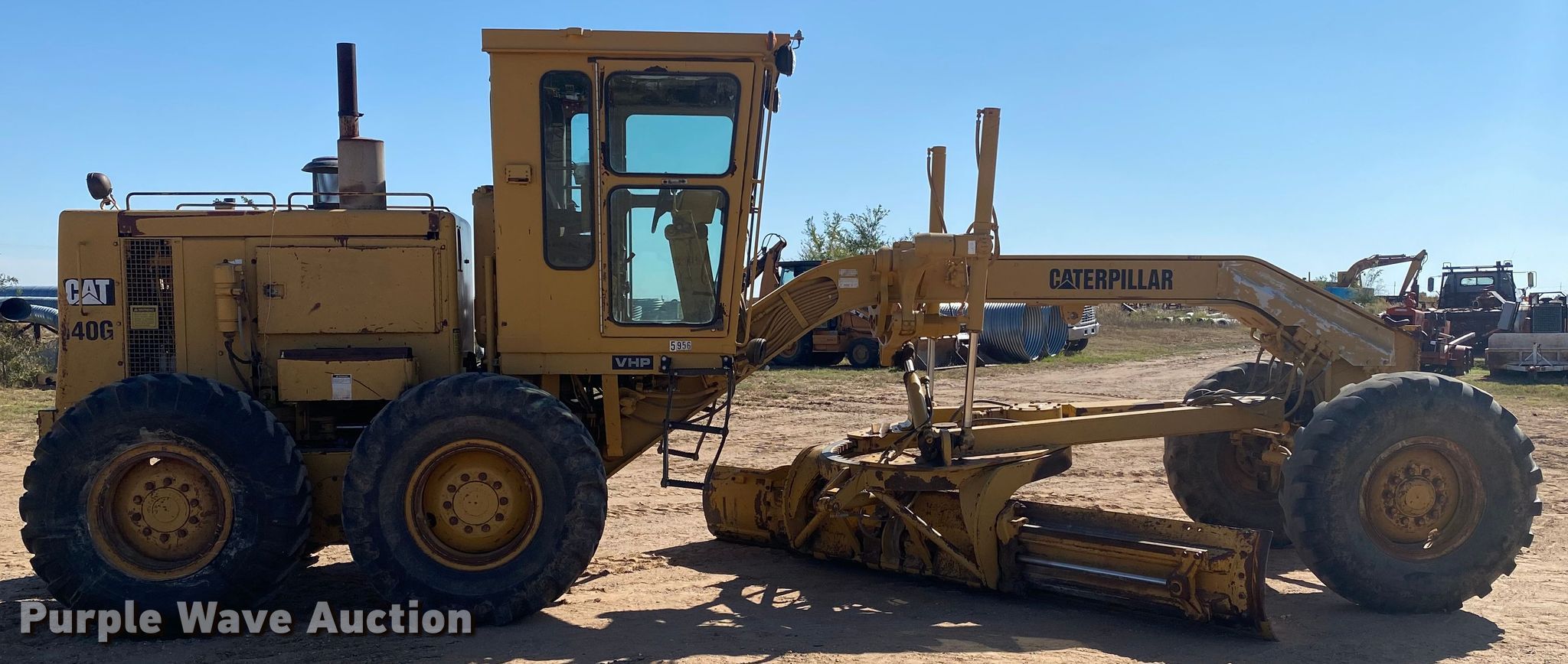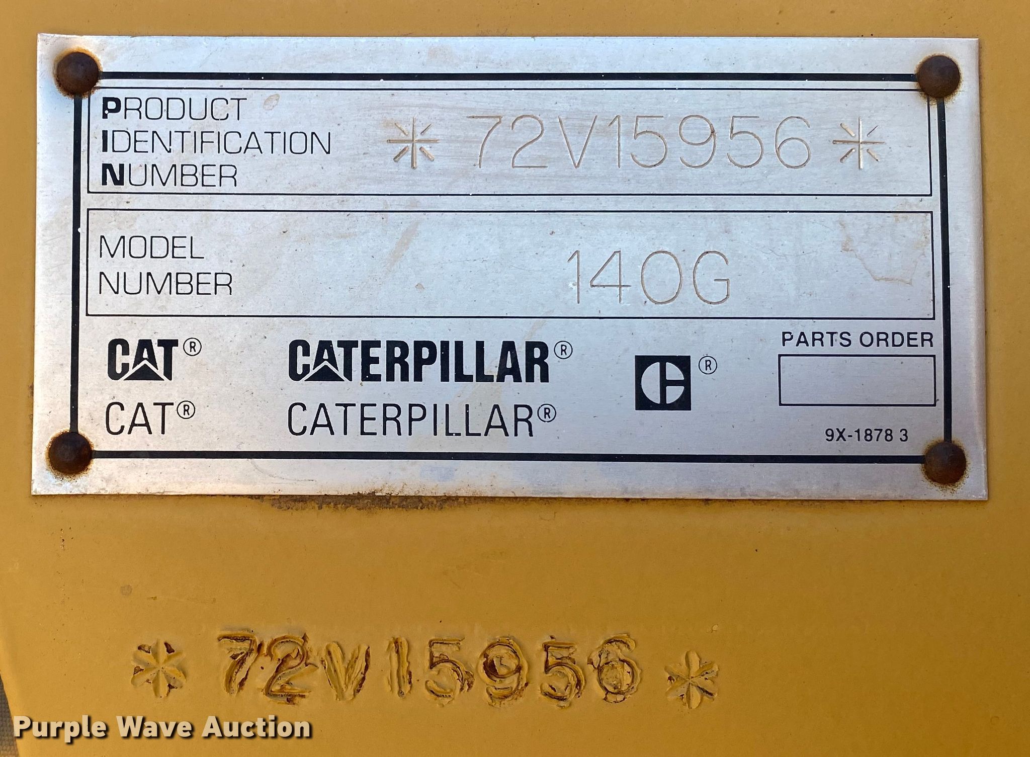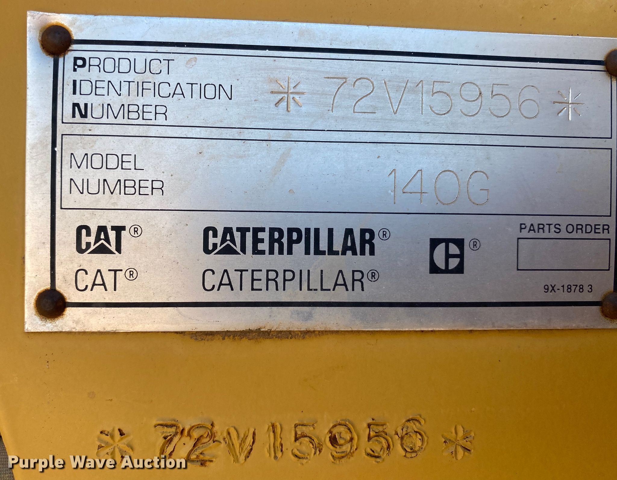 Purple Wave is selling a used Motor Grader in Oklahoma. This item is a 1993 Caterpillar 140G motor grader with the following: Hours: Unknown, Serial: 72V15956, Unit #: 5956