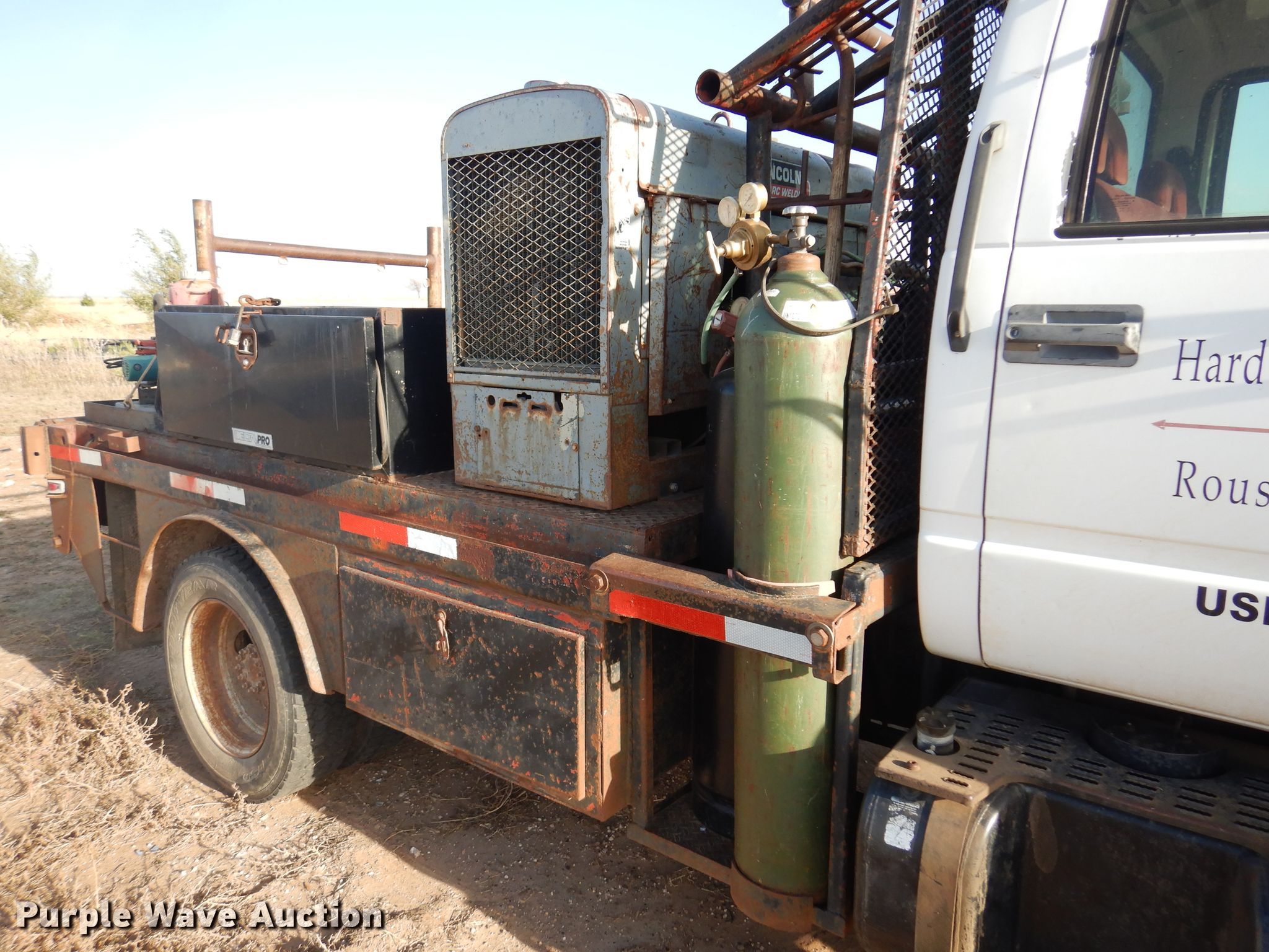 2000 Chevrolet C6500 winch truck. Miles: 230,614 on odometer, VIN: 1GBJ6H1C1YJ501418. Engine Displacement: 7.2L, Cylinders: 6, Fuel type: Diesel. Transmission Manual, Speed: 6. Chassis Axles: Single, Suspension: Spring, Brakes: Hydraulic, PTO. Interior AC, Heat. Operational Flatbed 138" L x 90" W, Torch bottle rack Tanks not included, Winch, Rolling tailboard, Welder Lincoln Arc Welder SA-200F-163, Fuel type: Gas, Welder type: Leads, Stick (AC/DC). Tires Size: 245/70R19.5. Notes Dash warning indicator: ABS. Oklahoma title. HW 270 S 14305 N, OK-23. Beaver, OK 73932