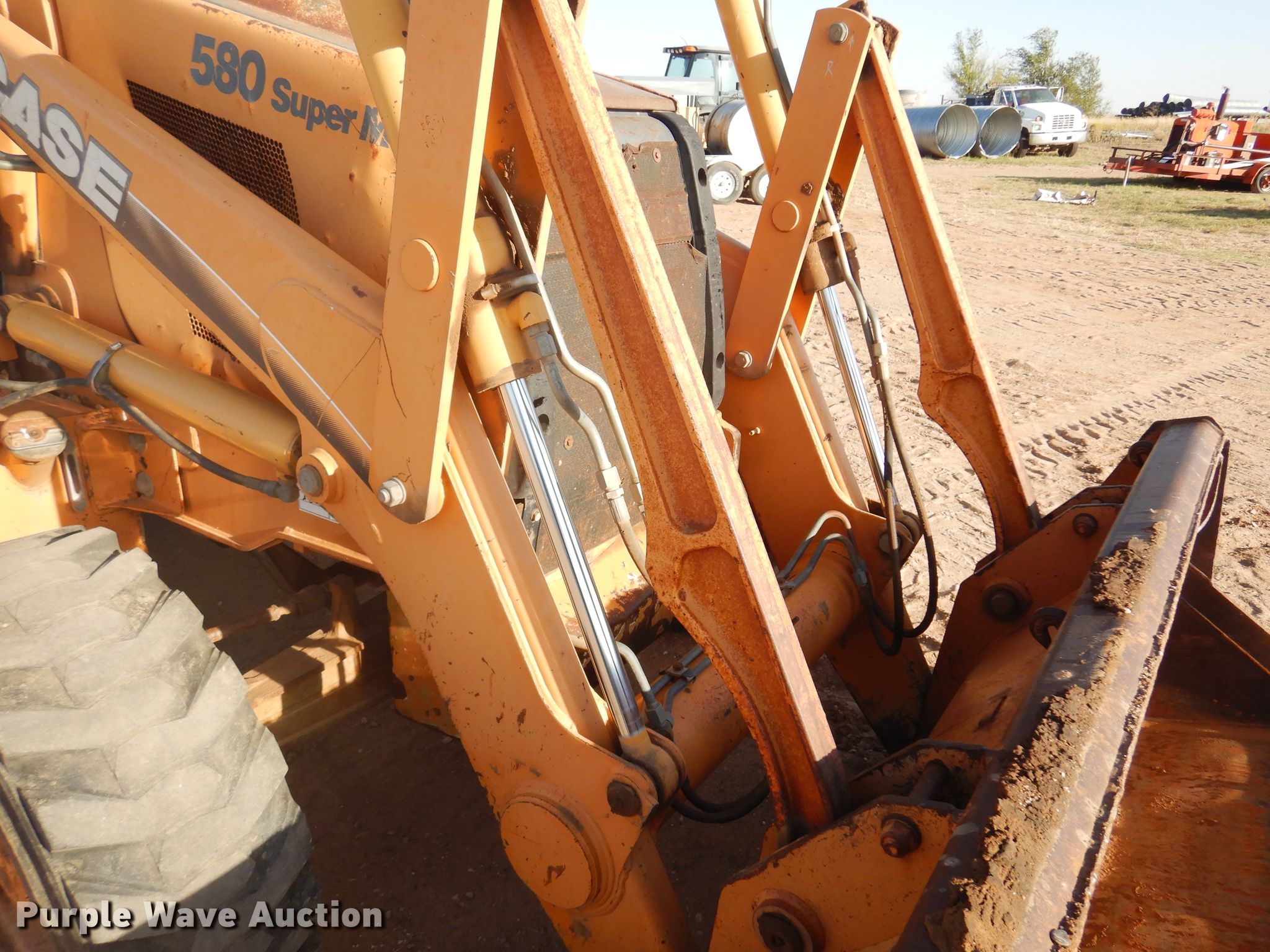 2002 Case 580 Super M backhoe. Hours: 7,955 on meter, Serial: JJG036415. Engine Cylinders: 4, Fuel type: Diesel. Transmission Shuttle shift, 4F - 4R. Operators station Enclosed cab, Heat, Backhoe controls: Four stick. Operational Loader Quick coupler: Manual, Bucket Width: 82", Cutting edge: Bolt-on, Backhoe Extendable stick, Quick coupler: Manual, Width: 23", Cutting edge: Weld-on, Teeth: 5. Tires Front: 12-16.5, Rear: 19.5L-24. Notes Non-operational brakes. HW 270 S 14305 N, OK-23. Beaver, OK 73932