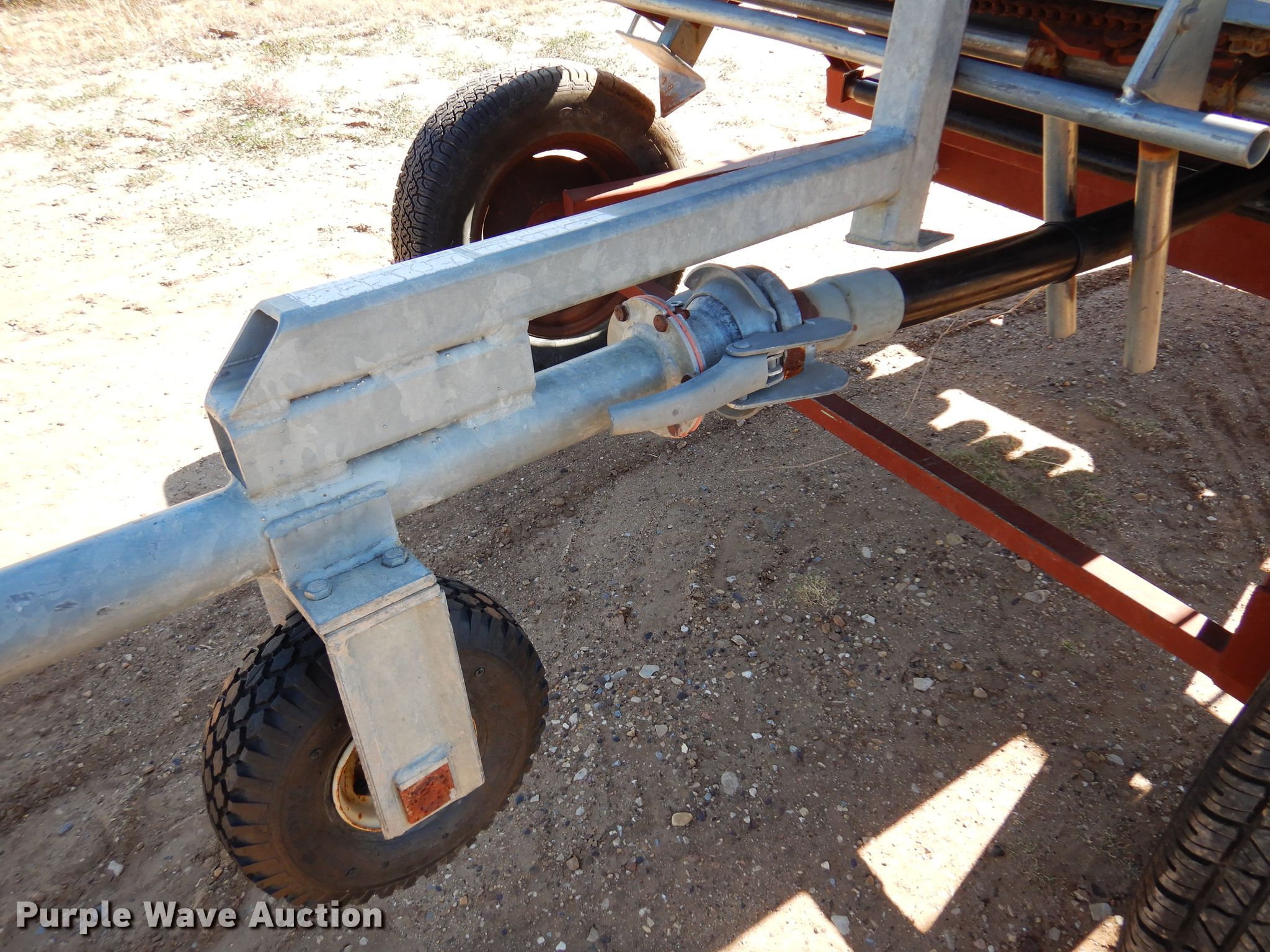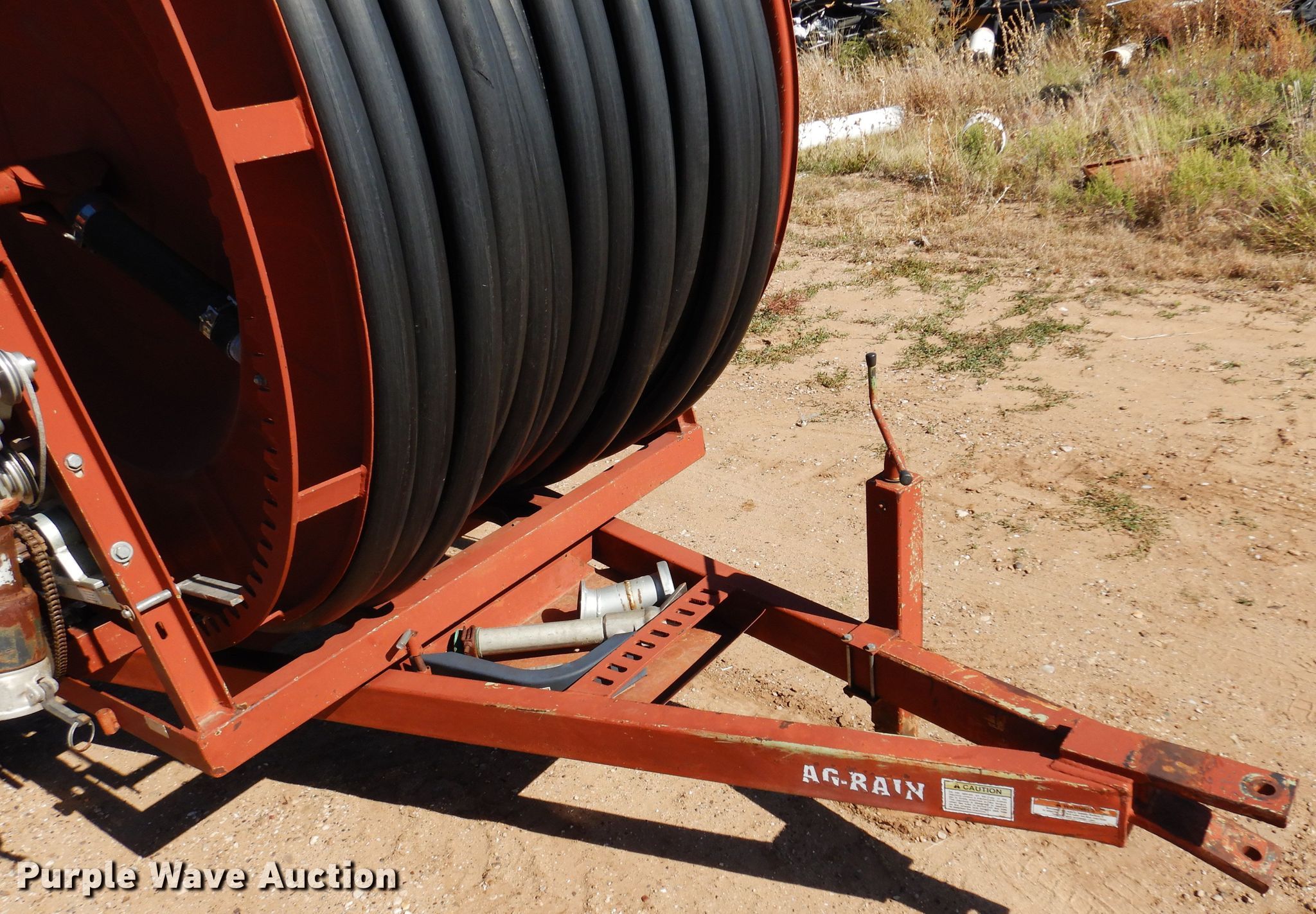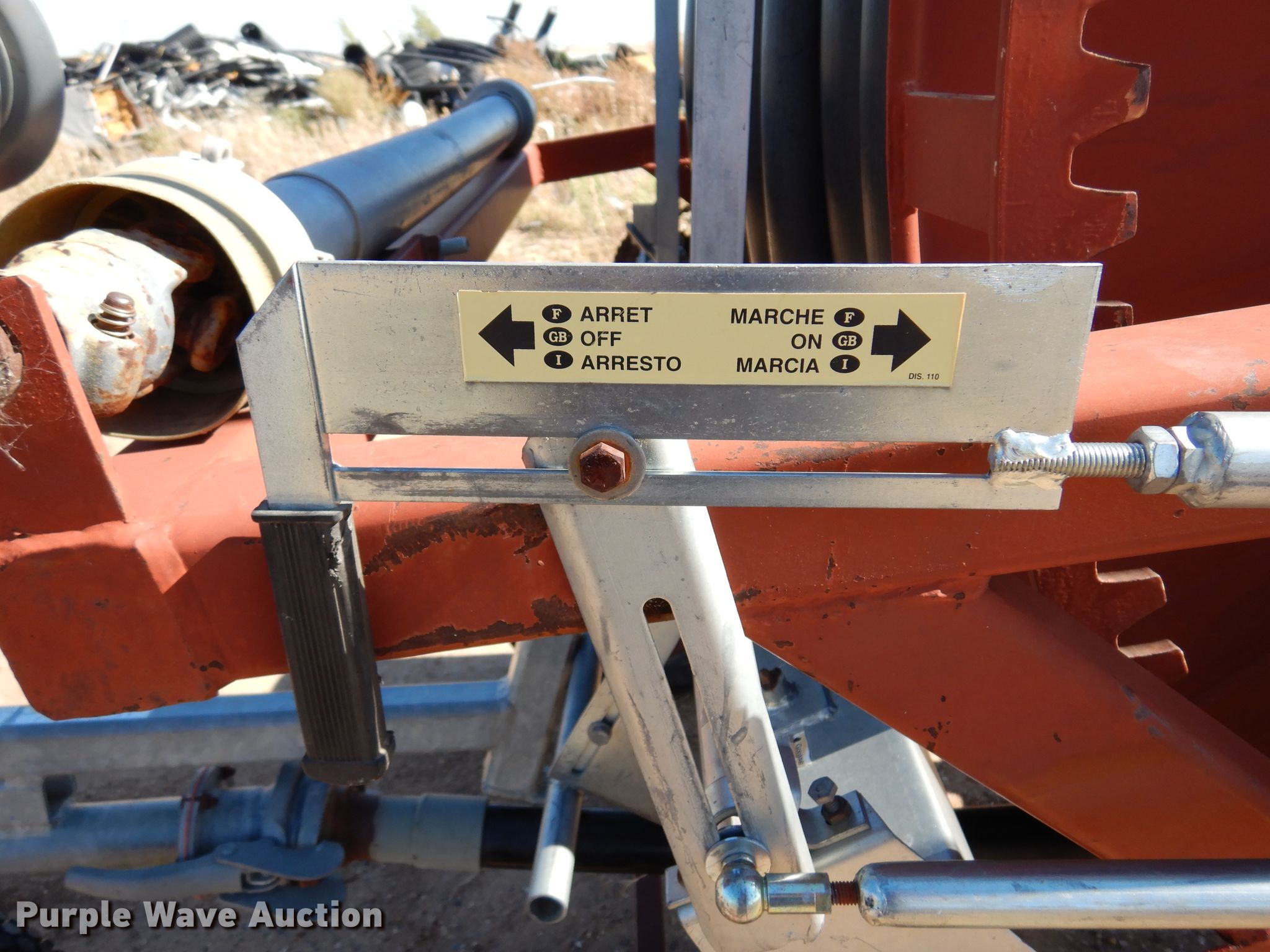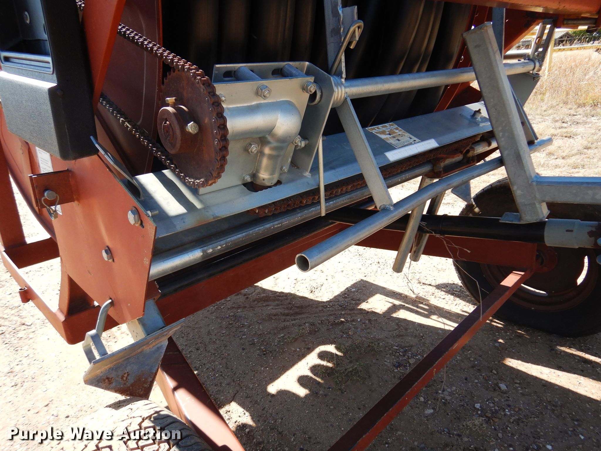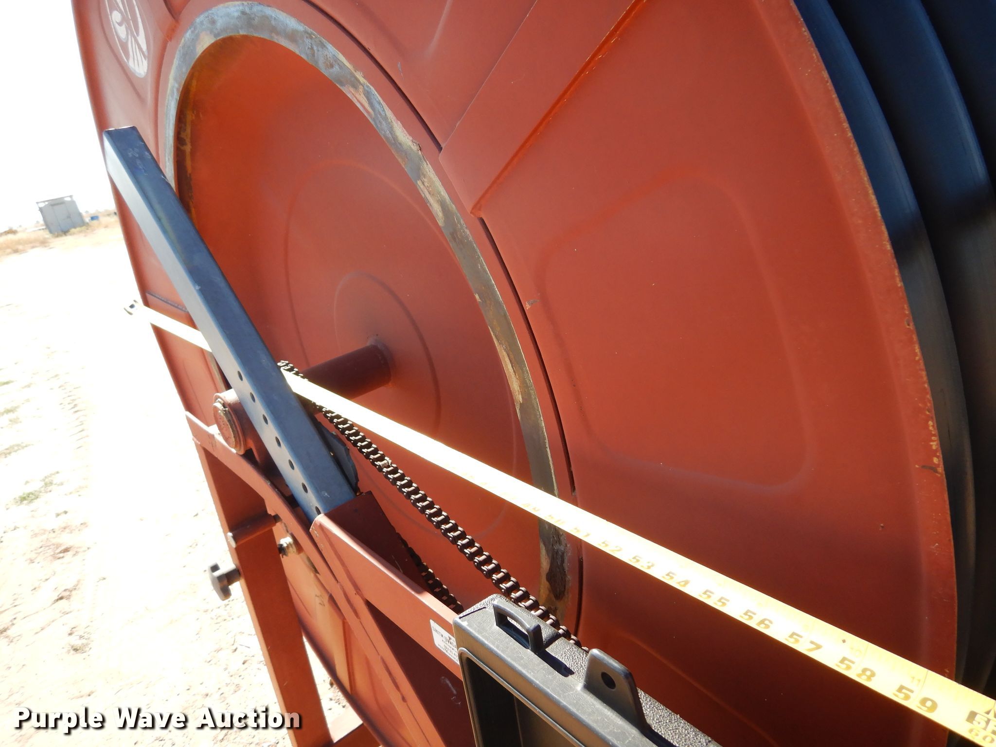 Purple Wave is selling a used Hose Reel in Oklahoma. This item is a Smith Irrigation Equipment water reel with sprinkler with the following: 2" hose, Big Gun sprinkler, Front tires: 185/70R14, Rear tires: 4.80-8, Serial: 330077