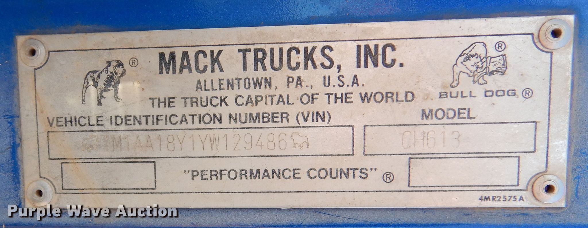 Purple Wave is selling a used Truck Tractor in Oklahoma. This item is a 2000 Mack CH613 semi truck with the following: Miles: 149,133 on odometer, VIN: 1M1AA18Y1YW129486