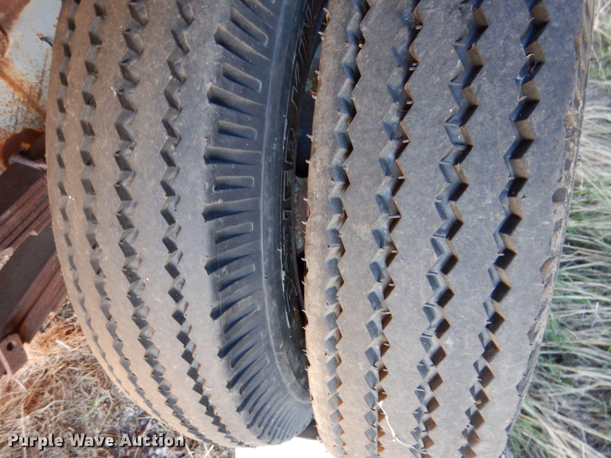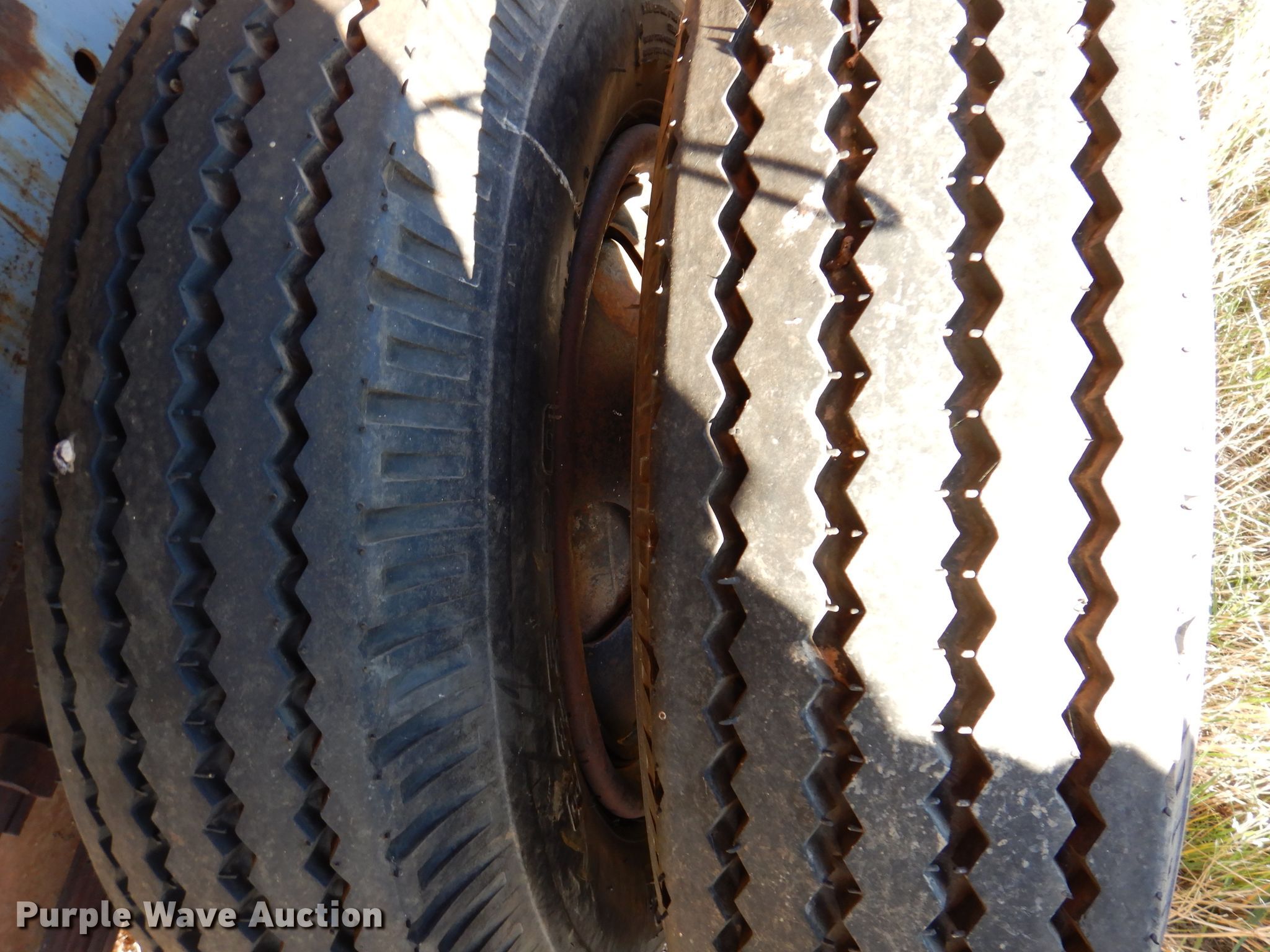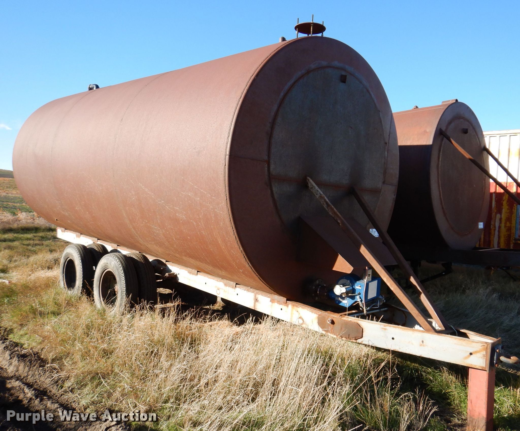 Tank trailer. Dimensions. Overall: 27' 2" L x 108" W. Operational Tank type: Steel Capacity: 10,000 gallons, Outlet valves: 1 Size: 3", Heater. Chassis Hitch: Pintle, Suspension: Spring, Axles: Tandem. Tires Steel wheels, Size: 8.25-20. This is worksite support equipment and will not come with a title. Transfer of ownership documentation will be a bill of sale. Sharpe Rentals, Inc.. 1908 N Garfield Ave. Pierre, SD 57501