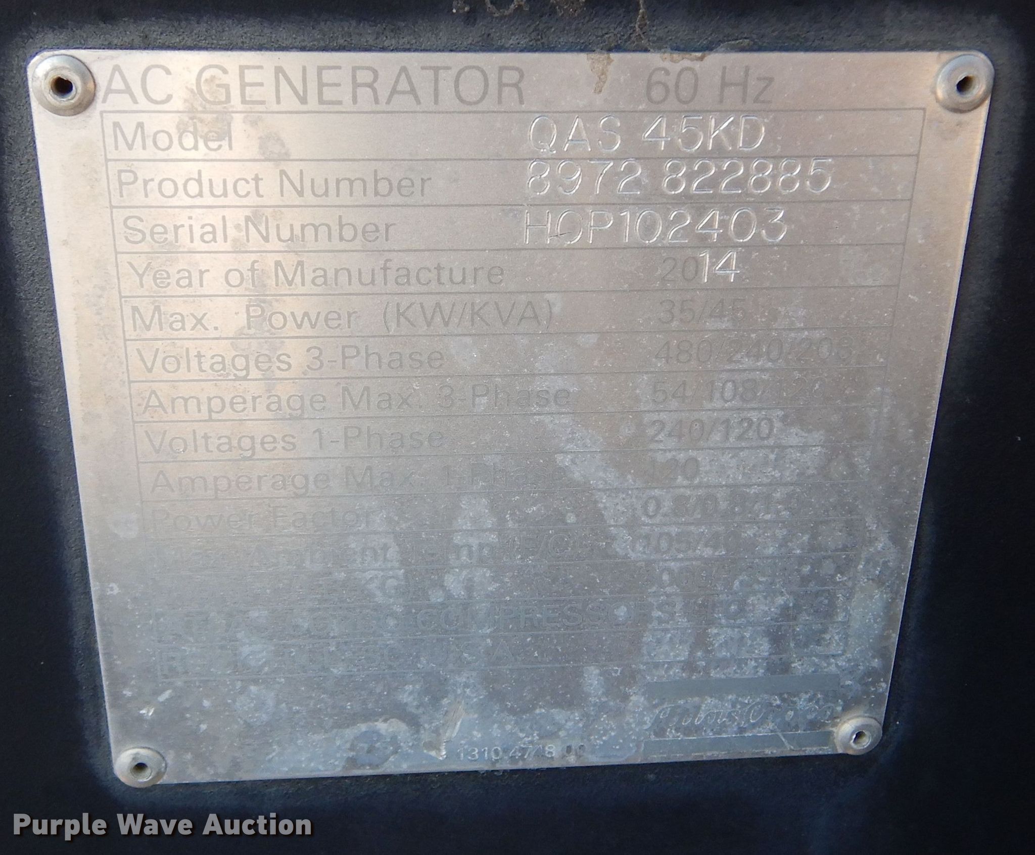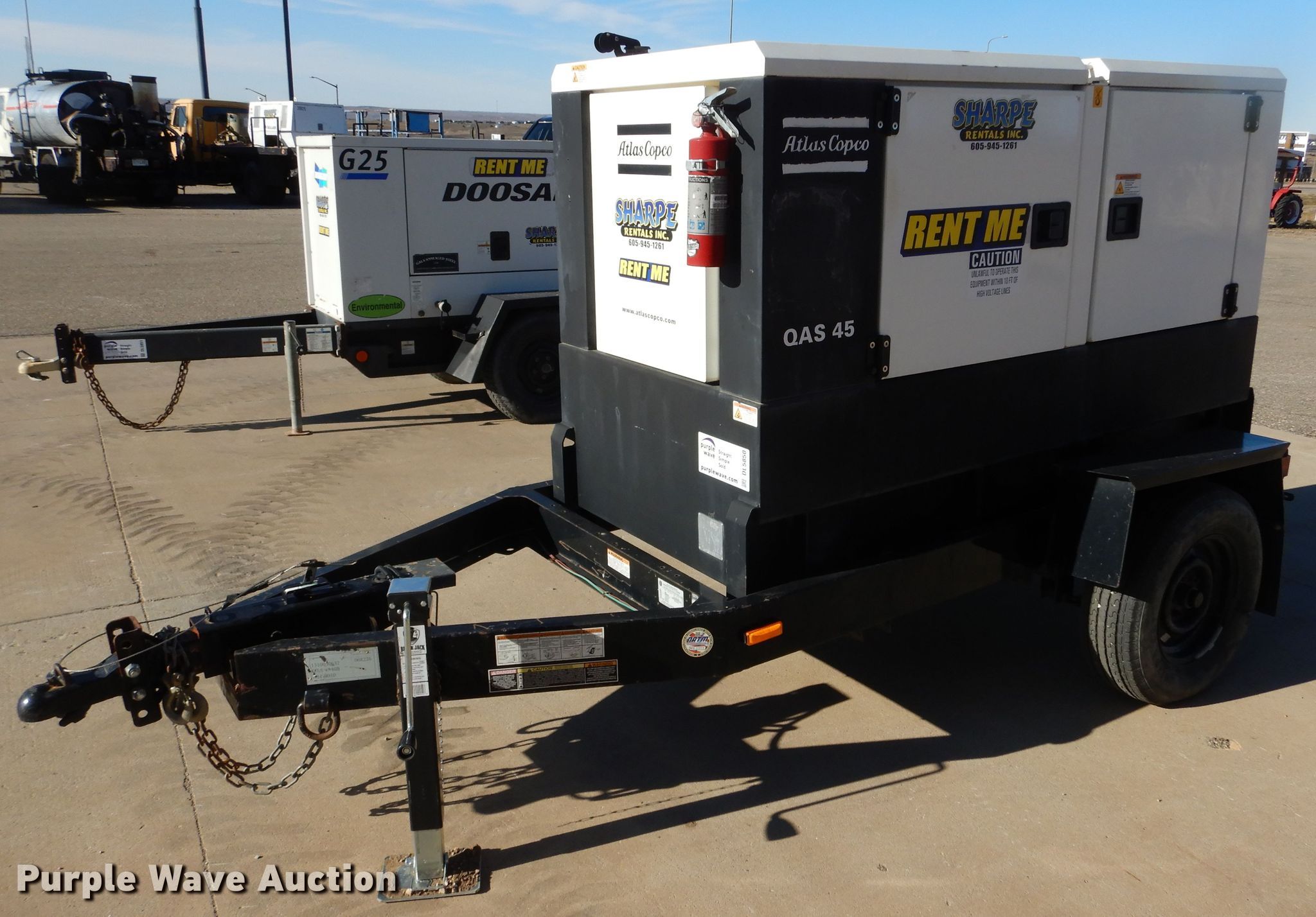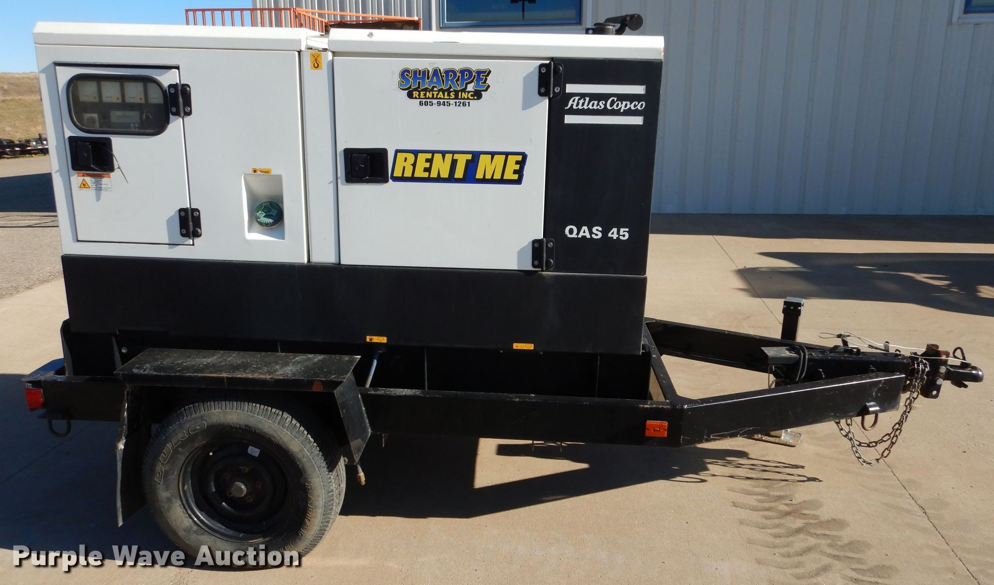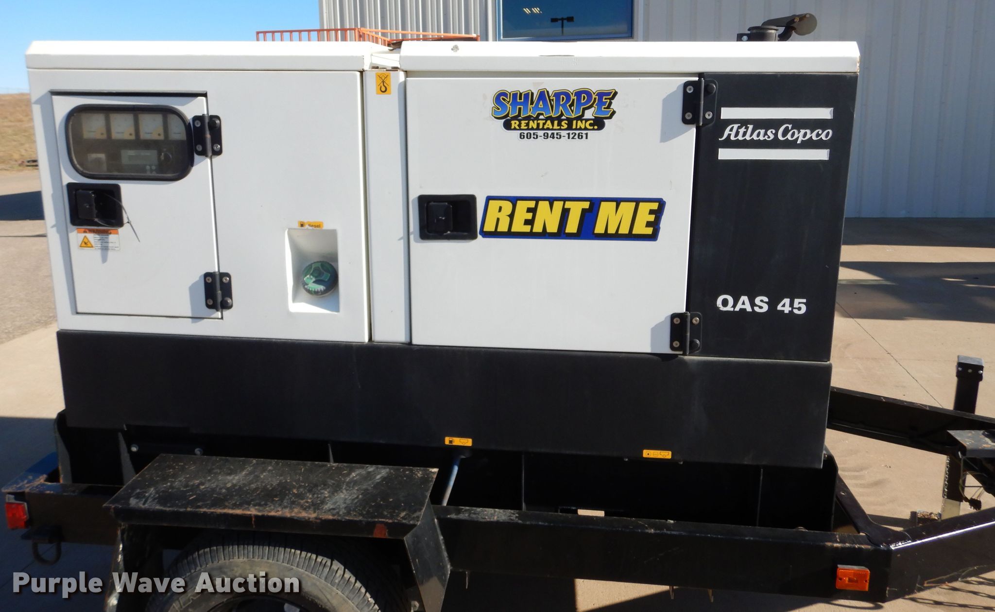 Purple Wave is selling a used Generator Set in South Dakota. This item is a 2013 Atlas Copco QAS45 generator with the following: Hours: 5,332 on meter, VIN: 16MPF0718DD068226, Serial: HCP102403, Unit #: 93023