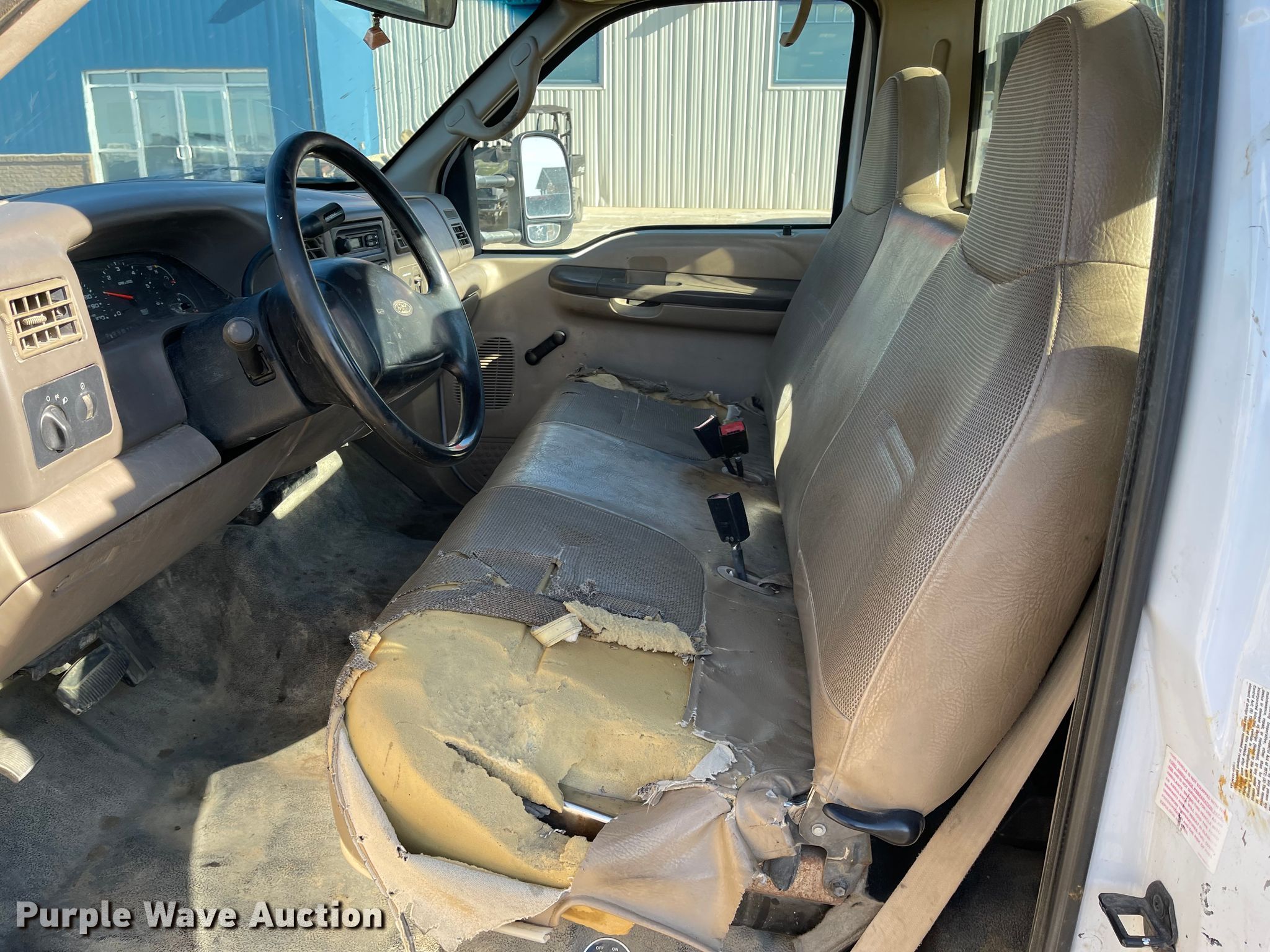2002 Ford F550 Super Duty XL flatbed truck. Miles: 150,434 on odometer, VIN: 1FDAF56S32EC84105. Engine Displacement: 6.8L, Cylinders: 10, Fuel type: Gas. Transmission Automatic. Chassis Axles: Single, Suspension: Spring, Brakes: Hydraulic. Interior AC, Heat. Operational Flatbed 12' 6" L x 95" W. Tires Size: 225/70R19.5. Notes Windshield chipped or cracked. South Dakota title. Sharpe Rentals, Inc.. 1908 N Garfield Ave. Pierre, SD 57501