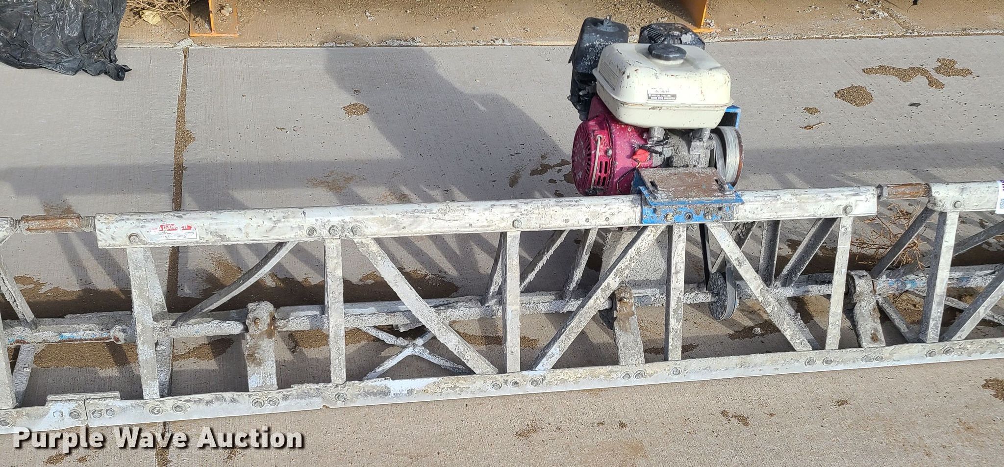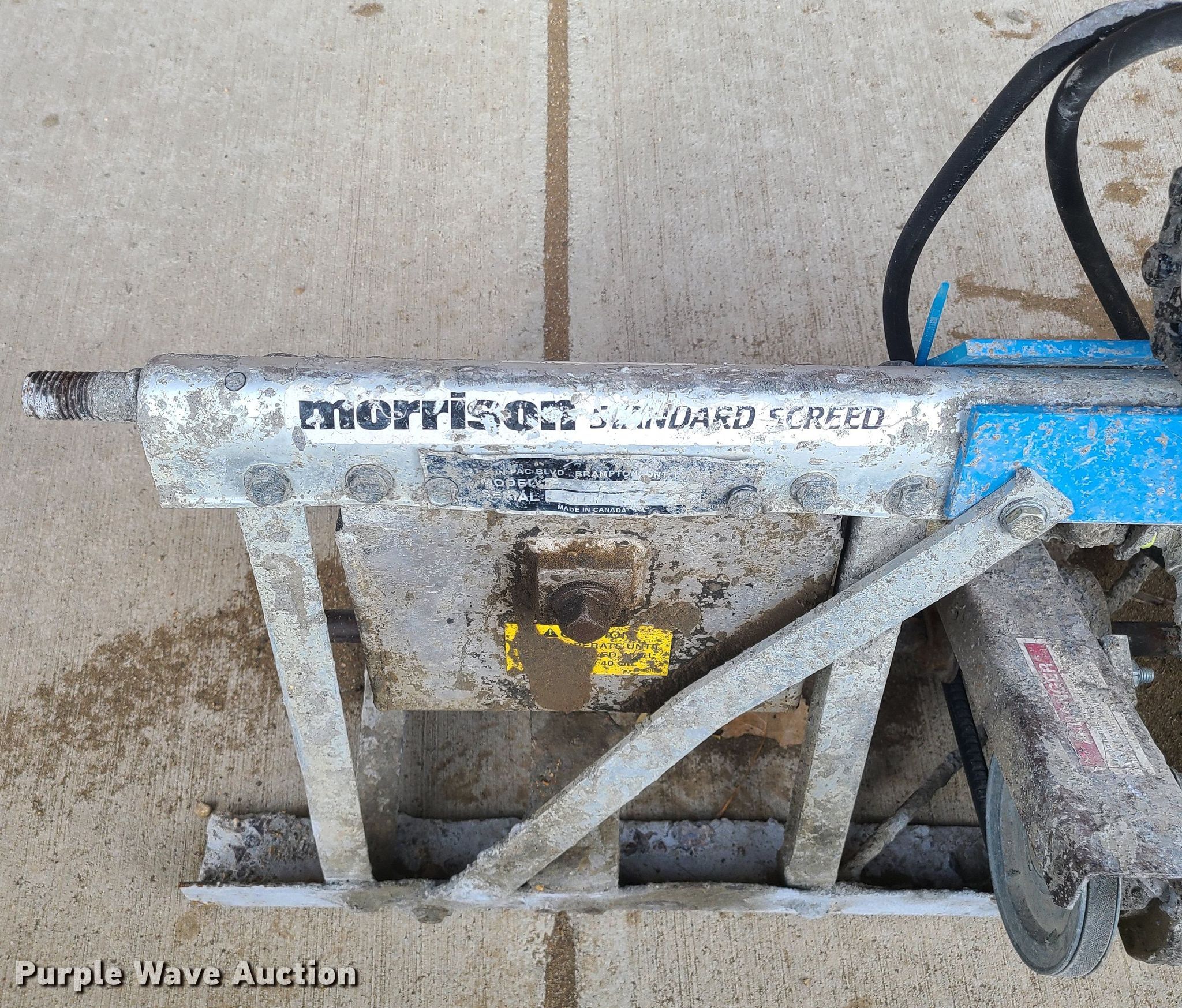 Morrison screed. Honda single cylinder gas engine, Hydraulic driven, 27' maximum length (4) 55" sections, (3) 25" sections. Sharpe Rentals, Inc.. 1908 N Garfield Ave. Pierre, SD 57501