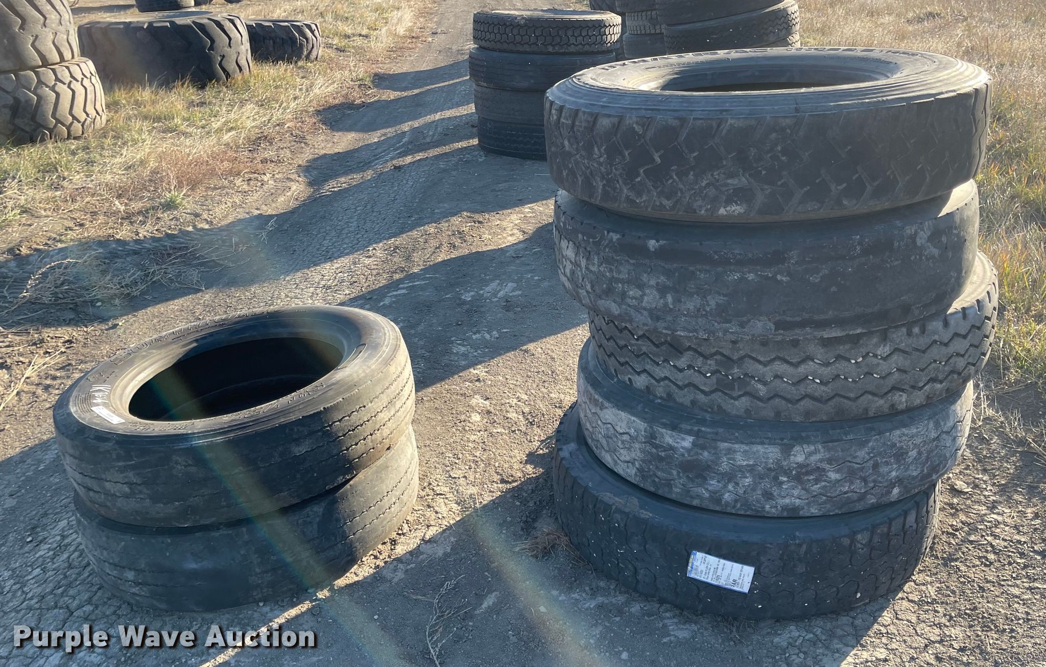 Purple Wave is selling a used Fleet Tires in South Dakota. This item is a (7) tires with the following: 255/70R22.5, 11R22.5