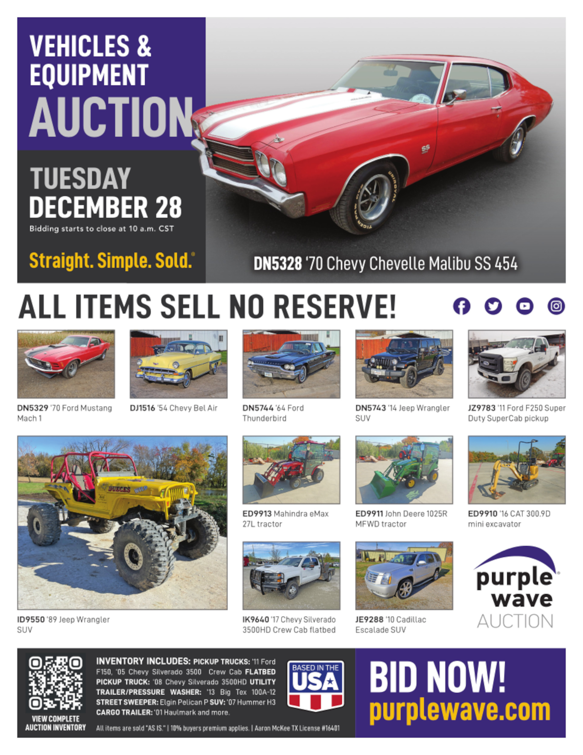 This auction is conducted by Purple Wave, Inc., whose home office is 825 Levee Drive, Manhattan, Kansas. Aaron McKee, Texas auctioneer license # 16401, operates Purple Wave, Inc. Complaints against us may be directed to the Texas Department of Licensing and Regulation, P.O. Box 12157, Austin, Texas 78711, (512) 463-6599. For additional required information, see the attached document.