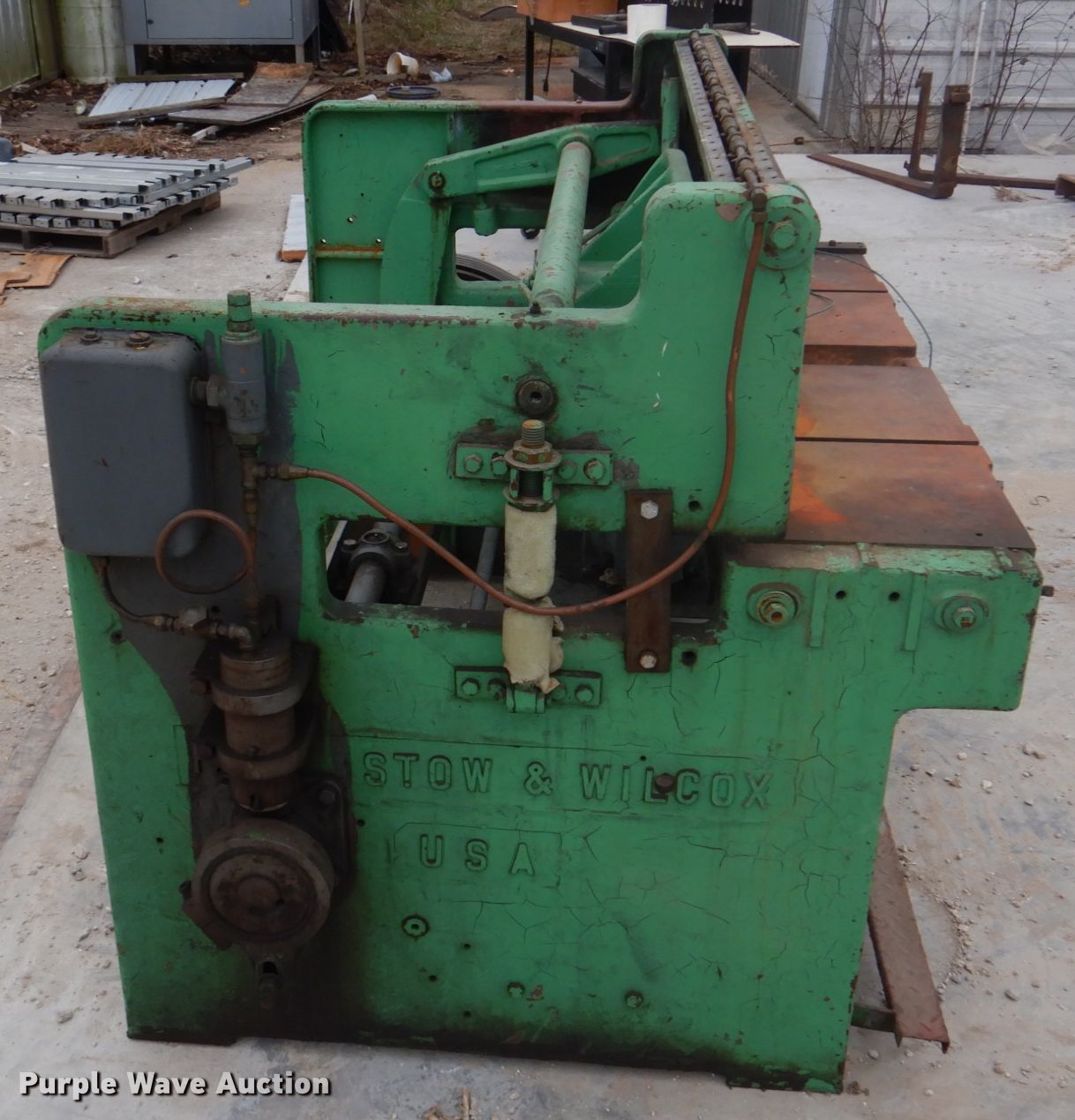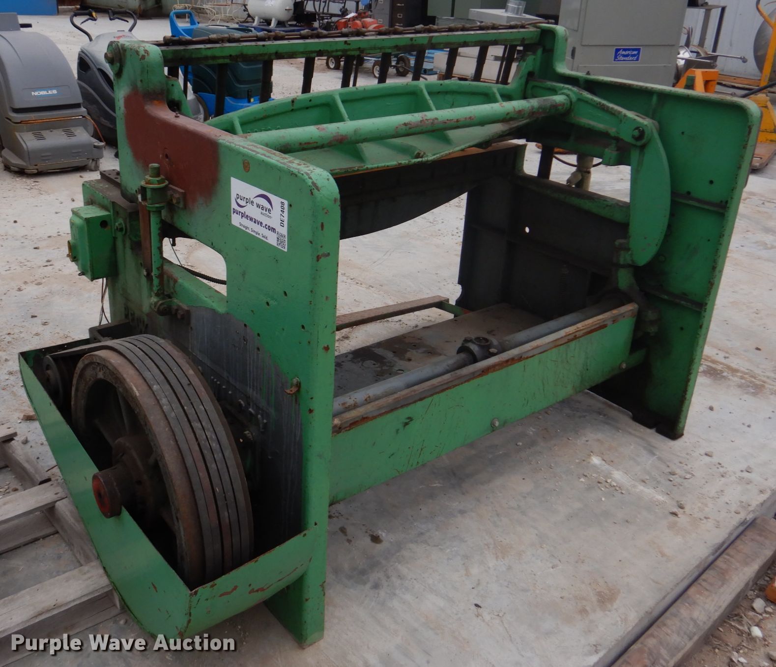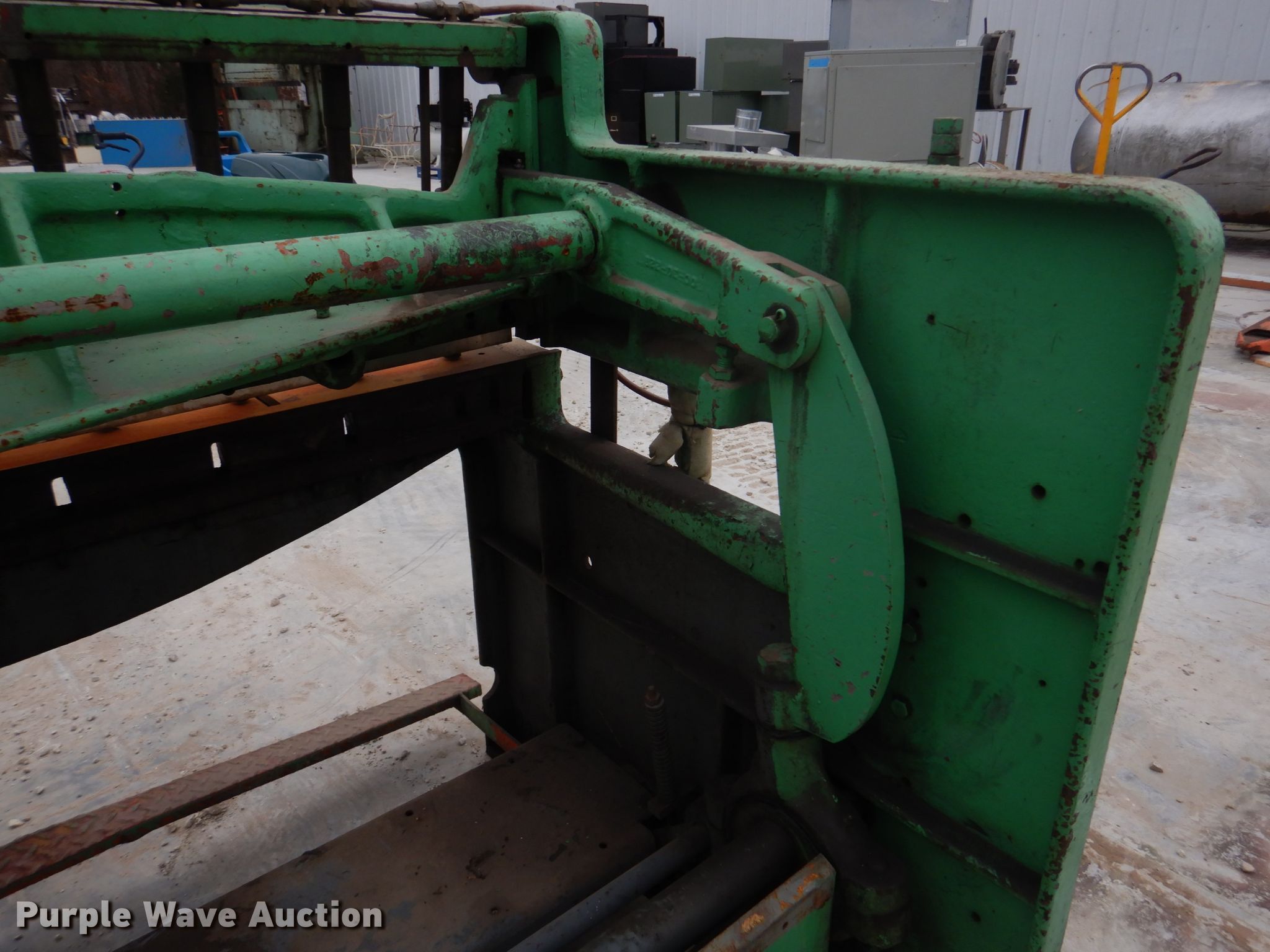 Purple Wave is selling a used Machine Shop Tools and Equip. in Missouri. This item is a Pexto G-52 sheet metal shear with the following: 53.5"W cutting capacity, (10) down force rods, Master electric motor, Three phase, Unknown operating condition, Serial: PG774
