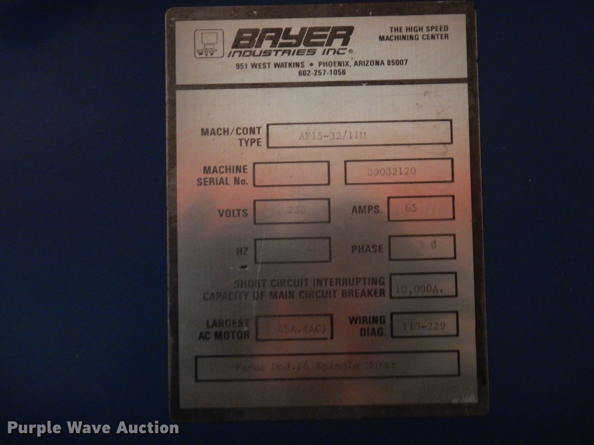 Purple Wave is selling a used Machine Shop Tools and Equip. in Missouri. This item is a Acroloc AF15-32 vertical machining center with the following: 230V, Three phase, Unknown operating condition