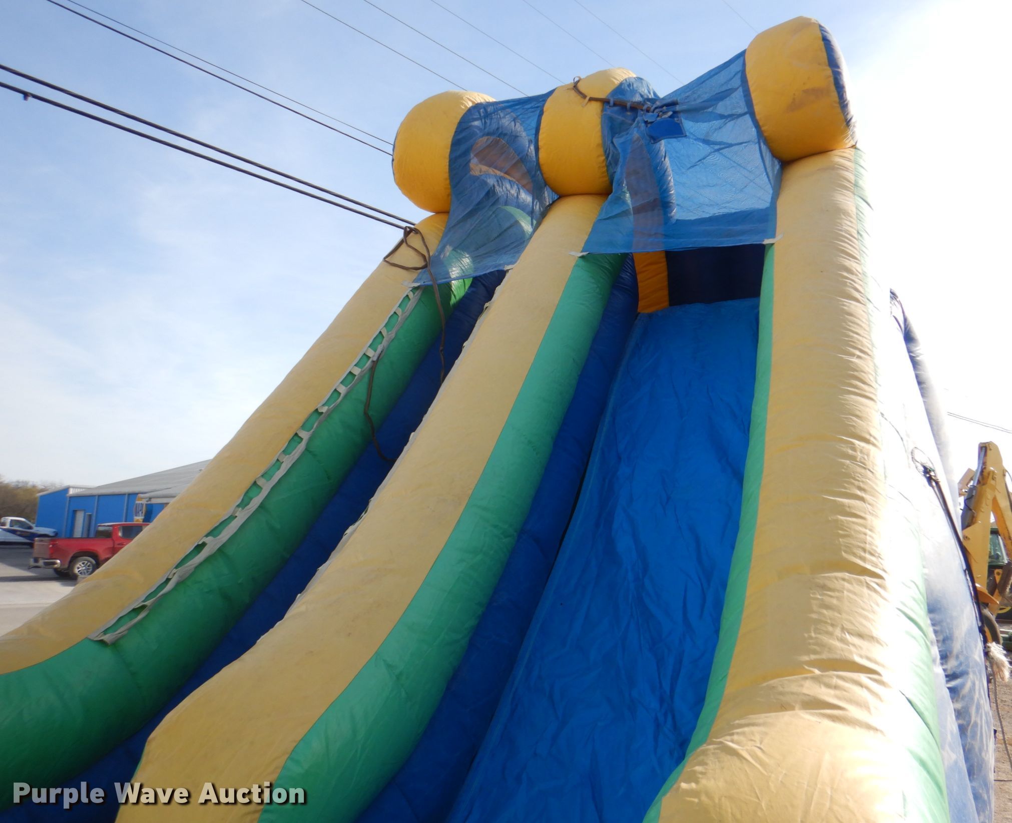 Purple Wave is selling a used Sporting Goods in Texas. This item is a Slide bounce house with the following: 18'L, Blowers