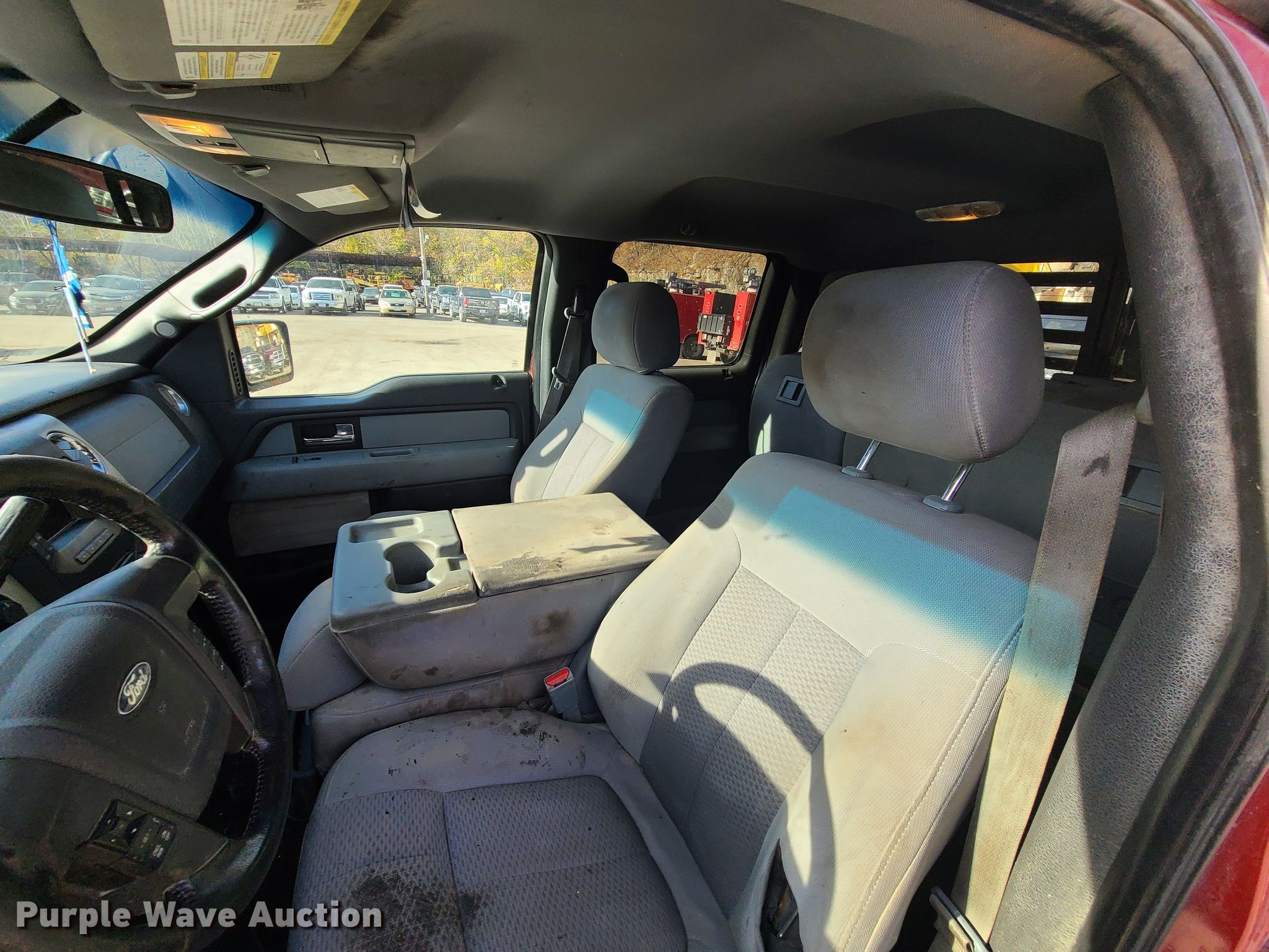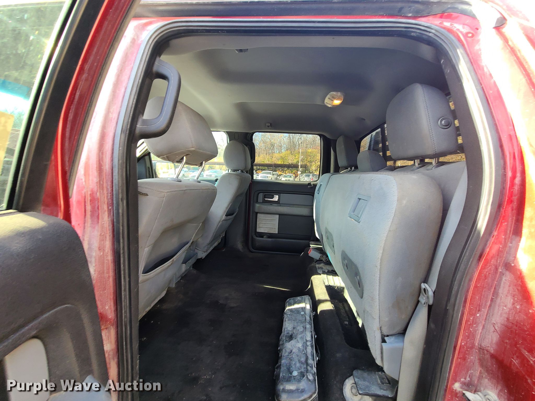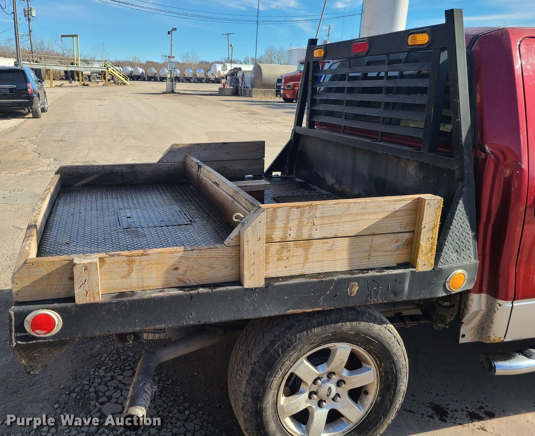 This 2013 Ford F150 SuperCrew flatbed pickup truck will sell to the highest bidder regardless of price.