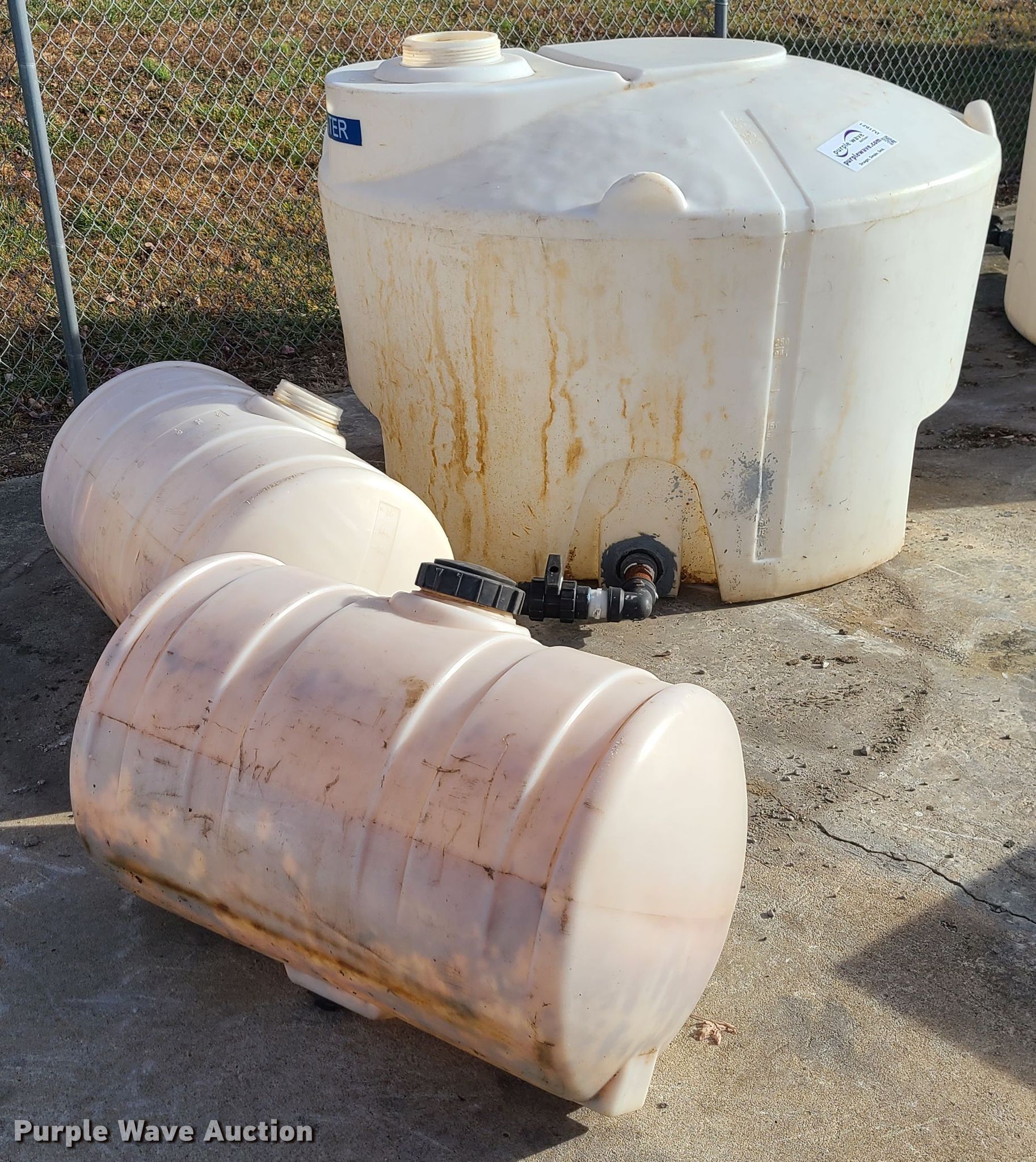 Purple Wave is selling a used Tanks in Missouri. This item is a (3) poly tanks with the following: 450 gallon capacity, (2) 55 gallon capacity