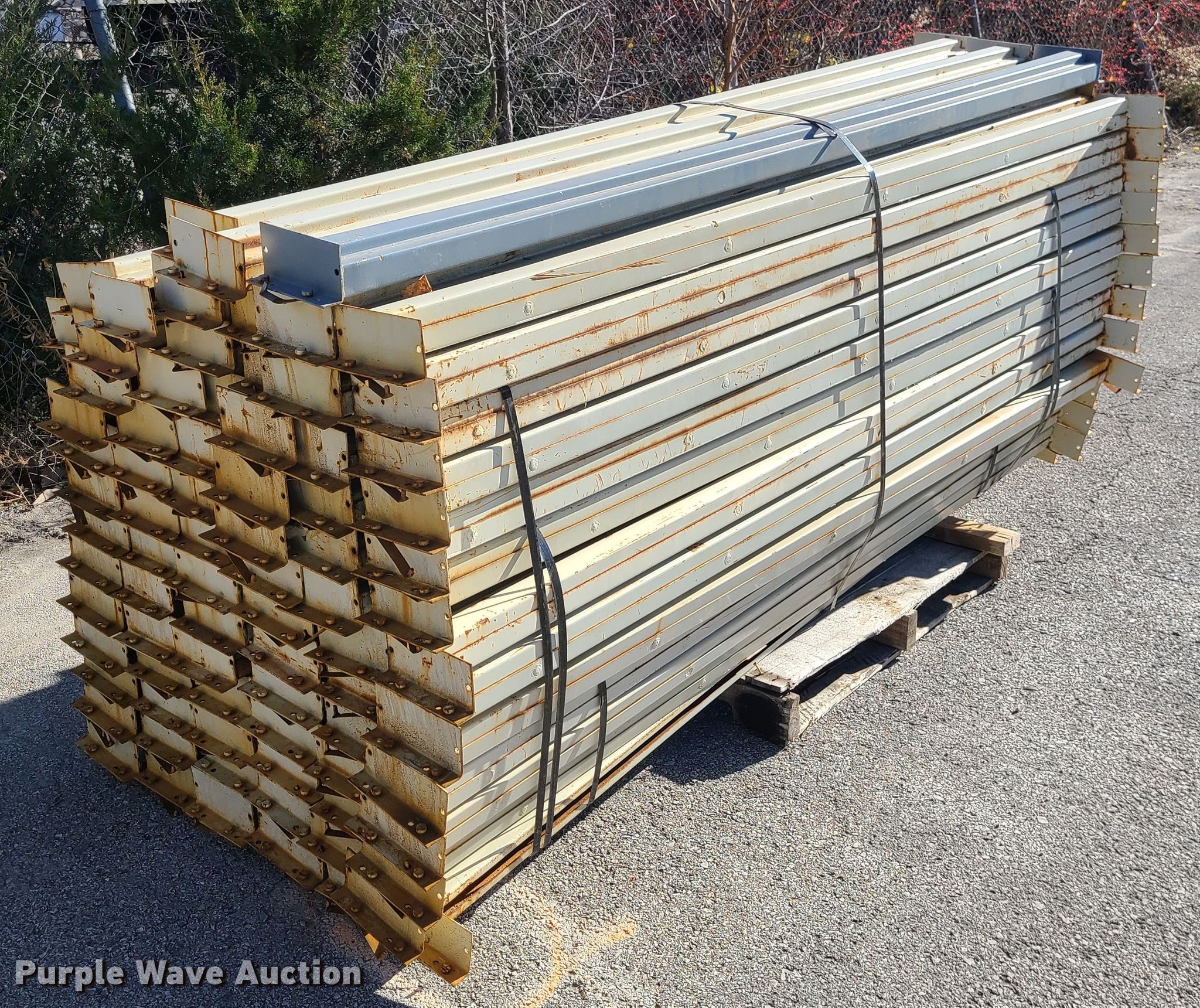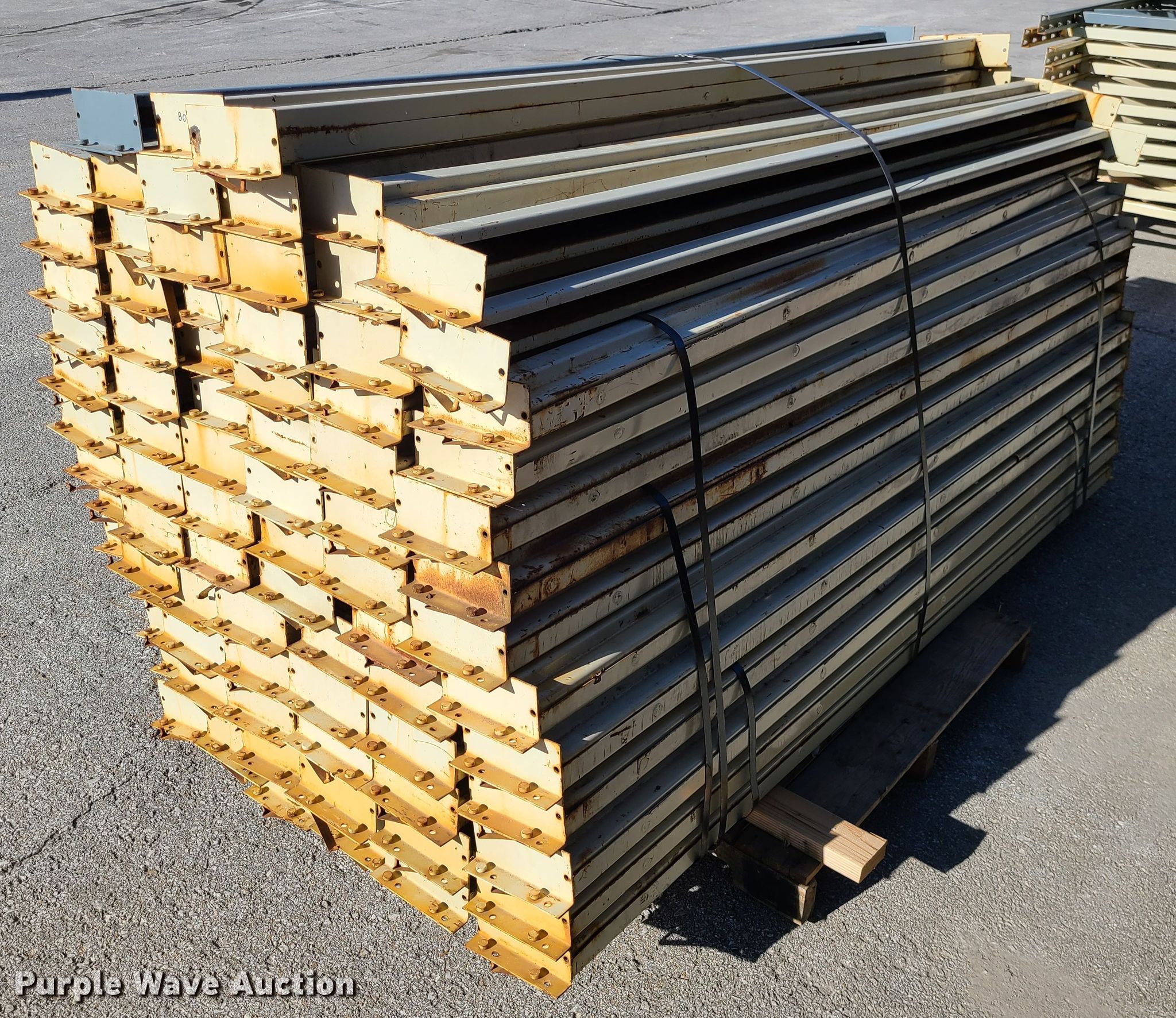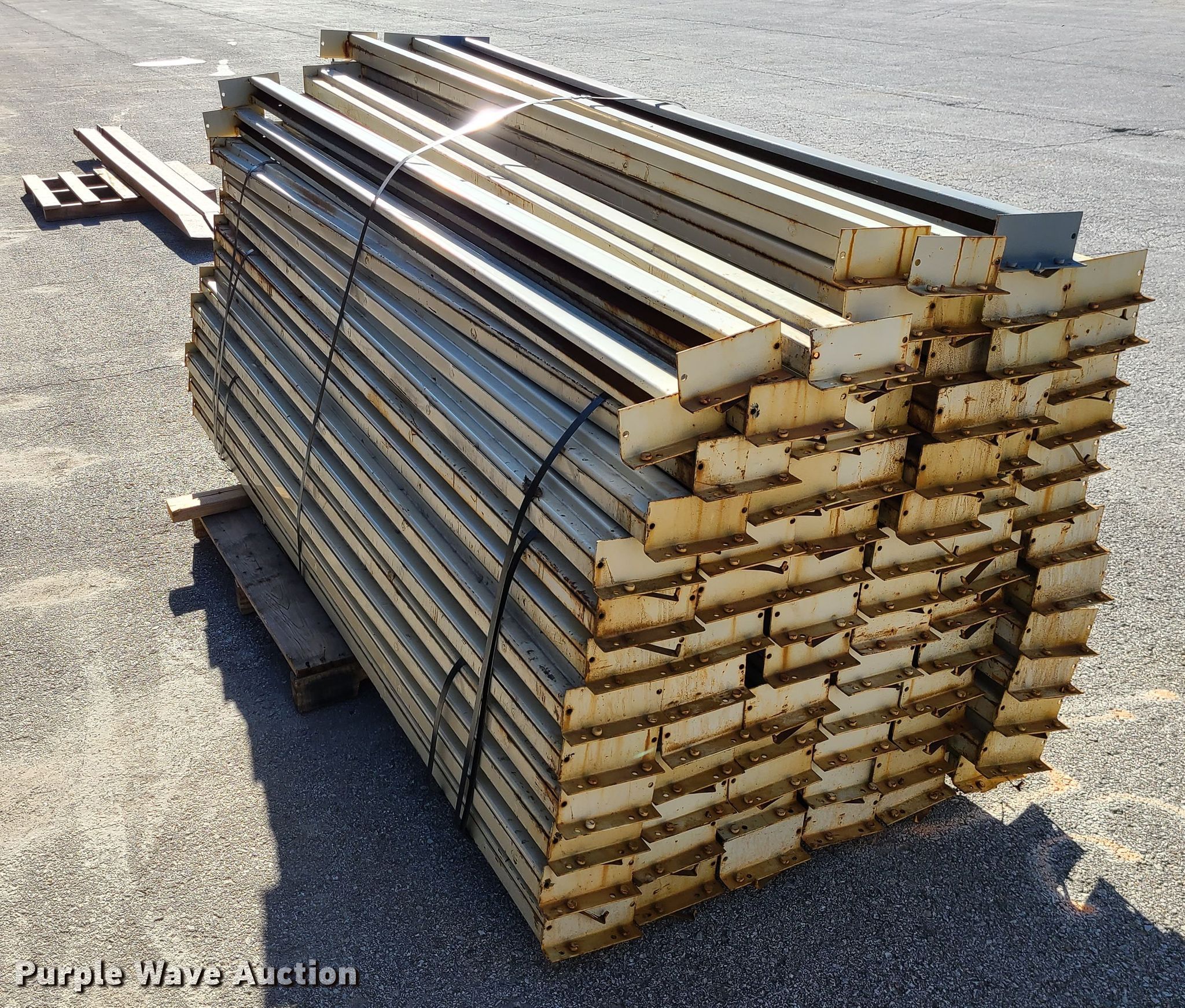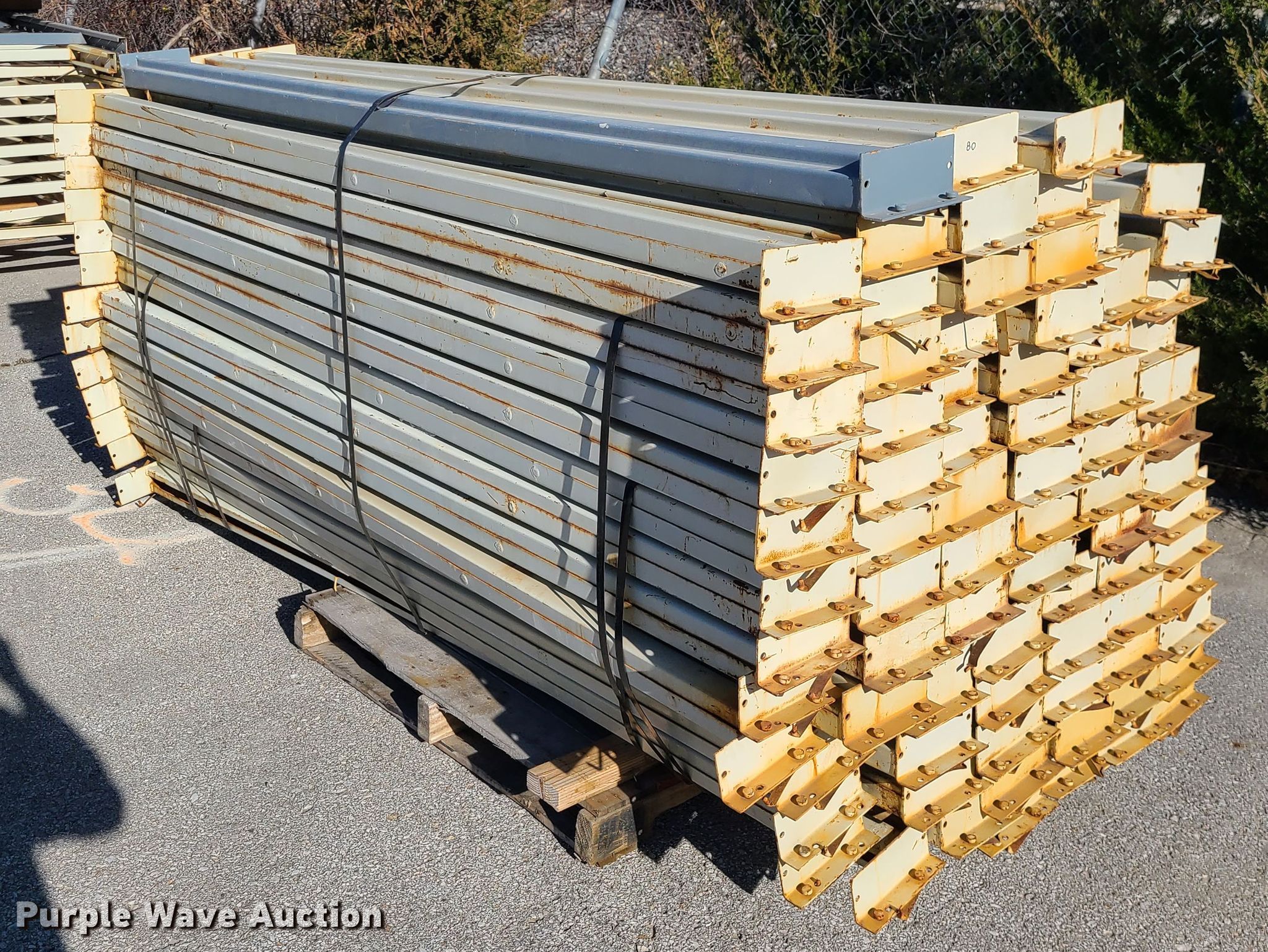 Pallet racking. (25) 42"W x 12'H uprights, (80) 8' cross members. Teague Lumber Co. 300 Duck Rd. Grandview, MO 64030