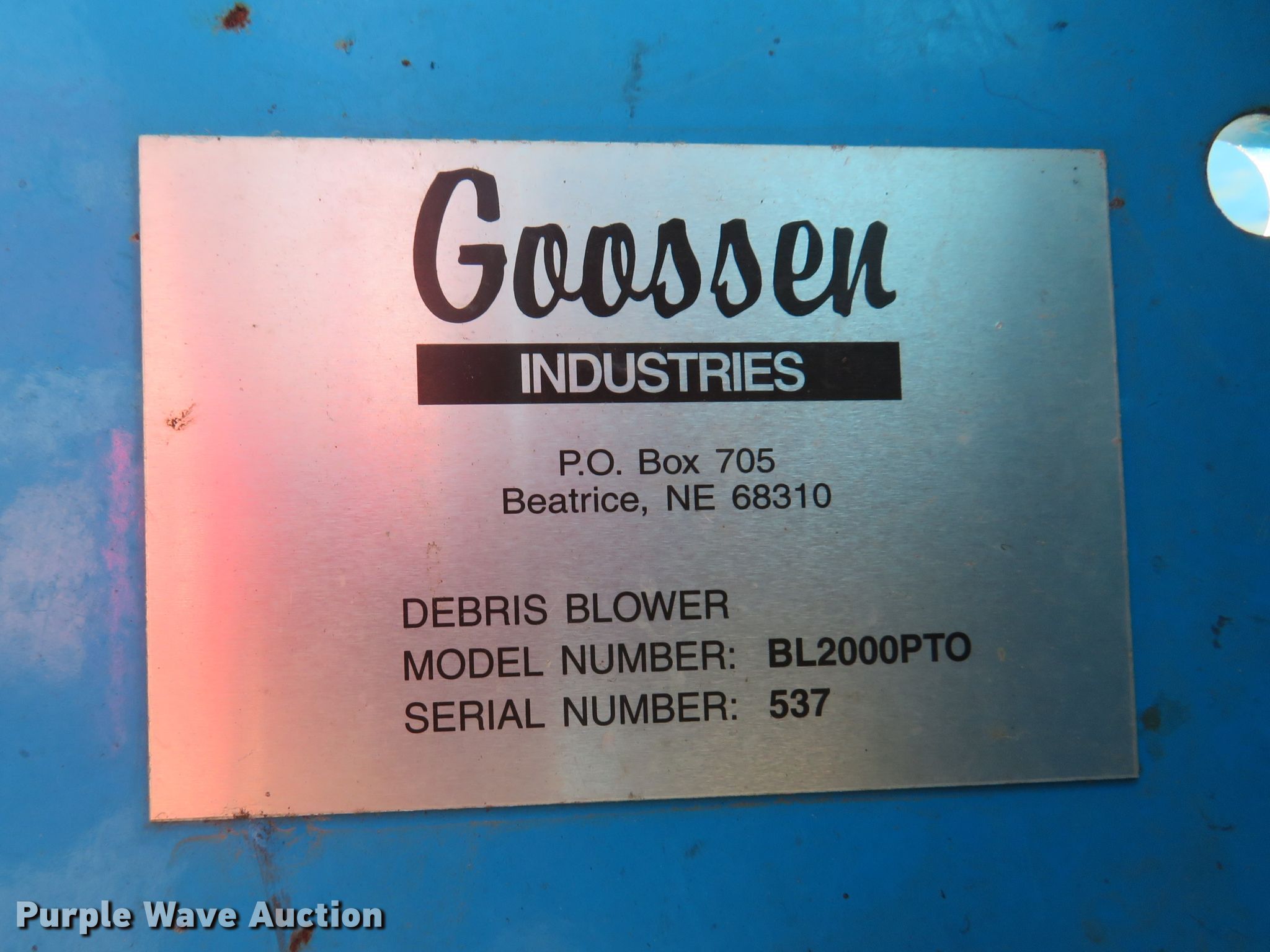 Goossen BL2000PTO debris blower has sold in Saint Louis, Missouri for $1540. Item FP9474 sold on December 28th, 2021.