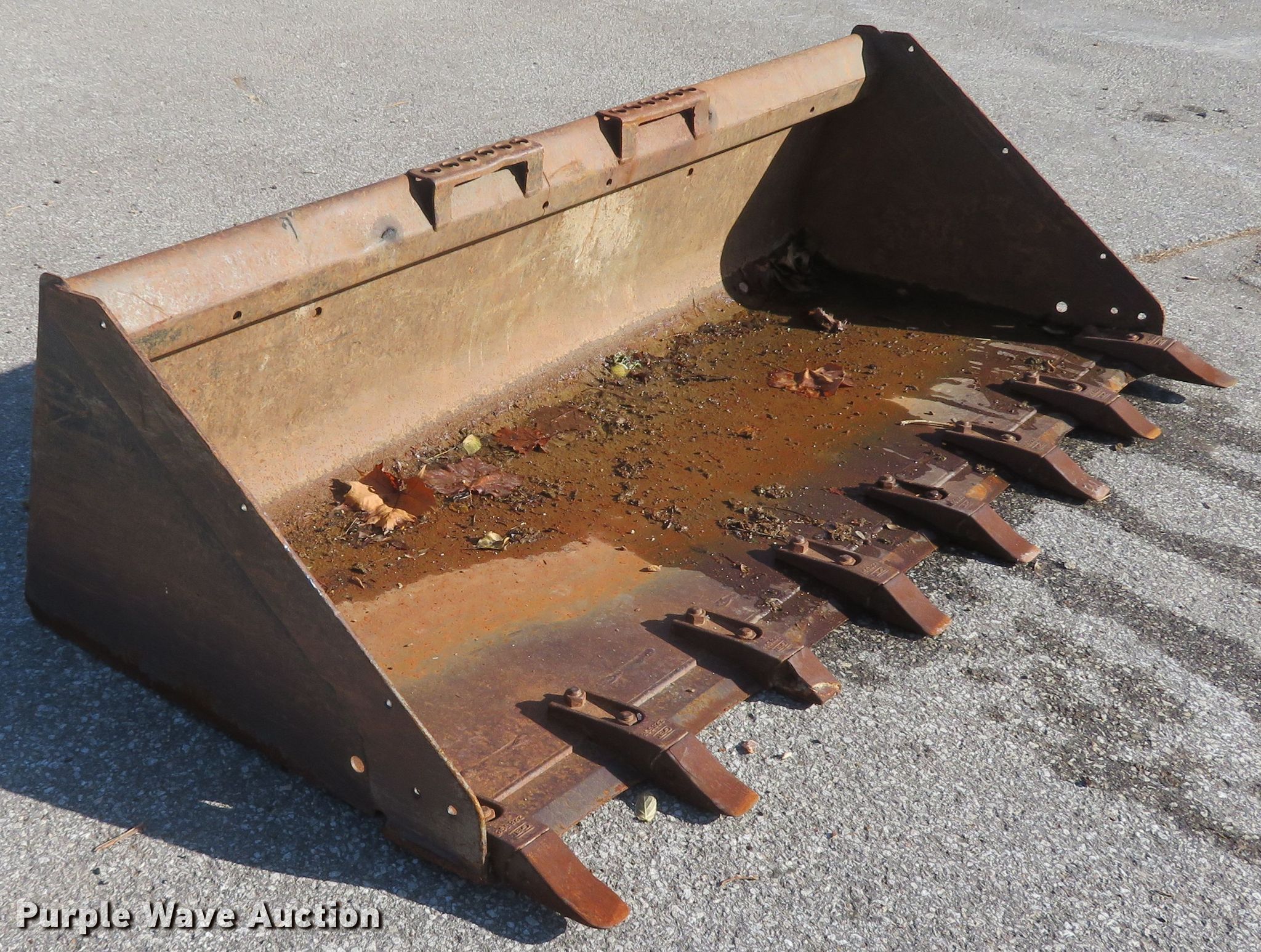 Purple Wave is selling a used Skid Steer Attach. in Missouri. This item is a Bobcat 74" W skid steer bucket with the following: Teeth: Bolt-on
