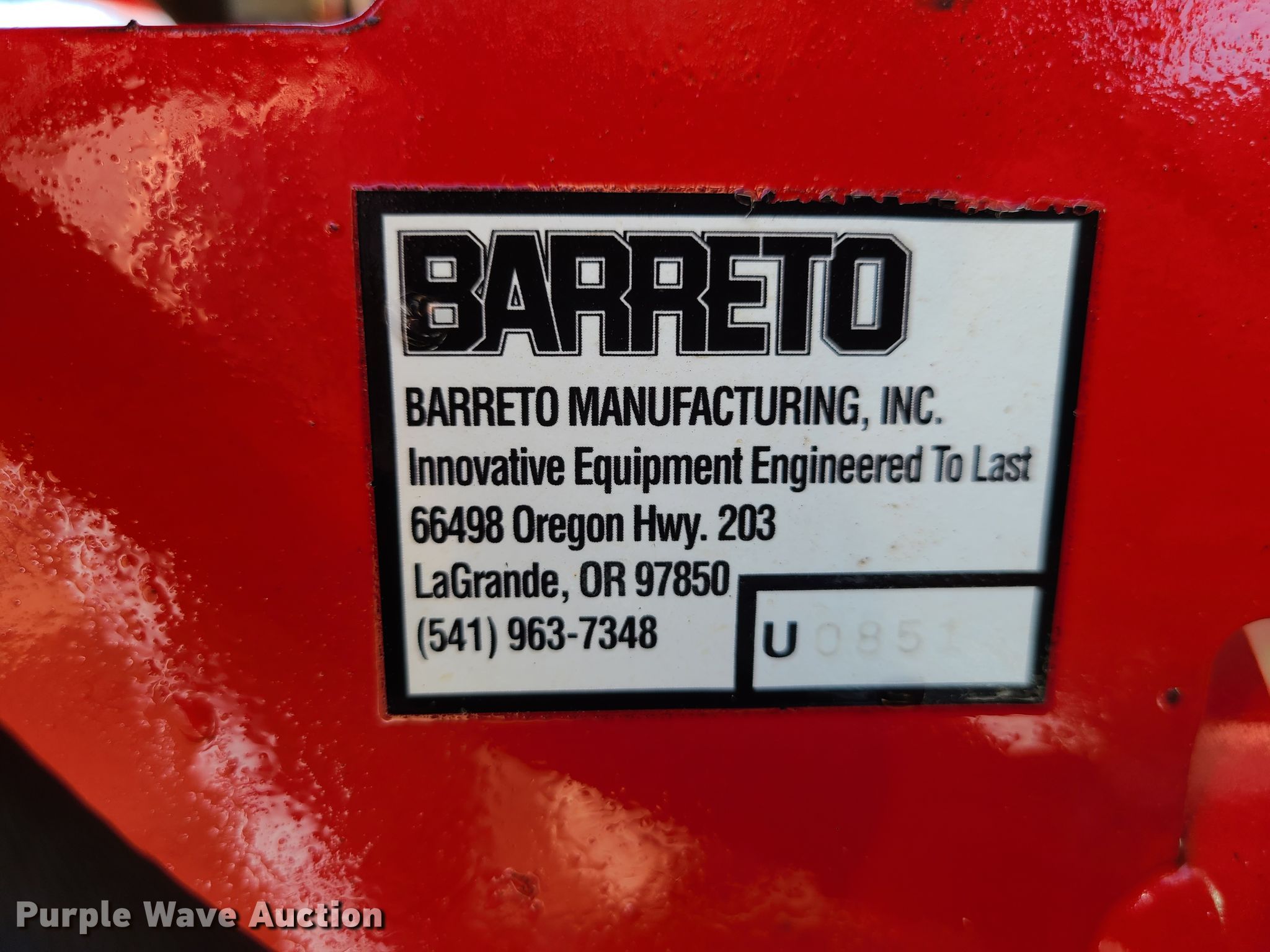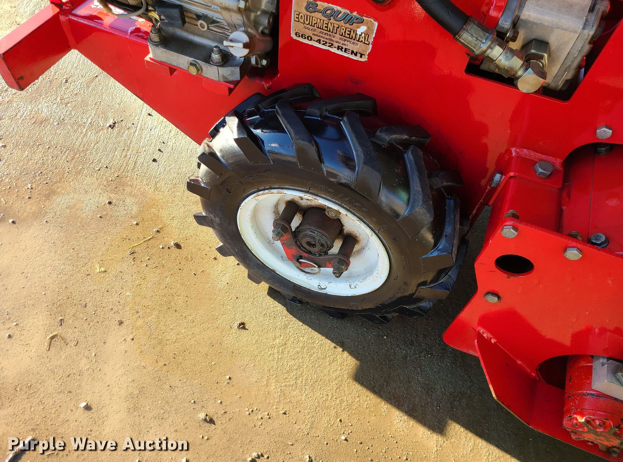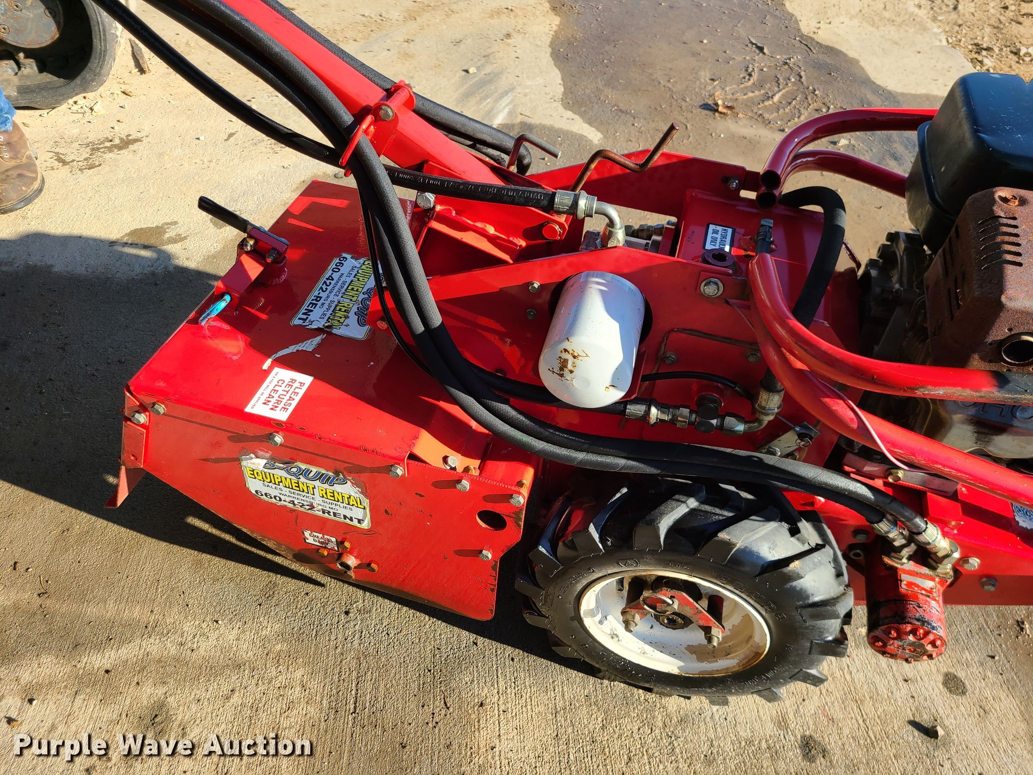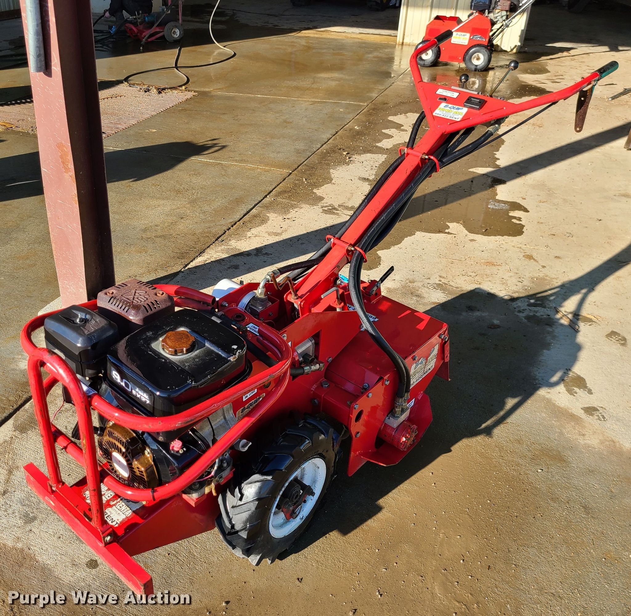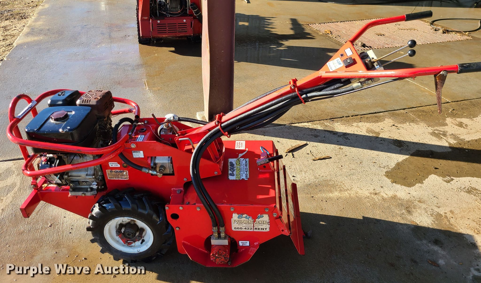 Purple Wave is selling a used Lawn and Garden in Missouri. This item is a Barreto rear tine tiller with the following: 9 HP gas engine, Hydrostatic transmission, 20"W, 4.80/4-8 tires, Serial: U0851