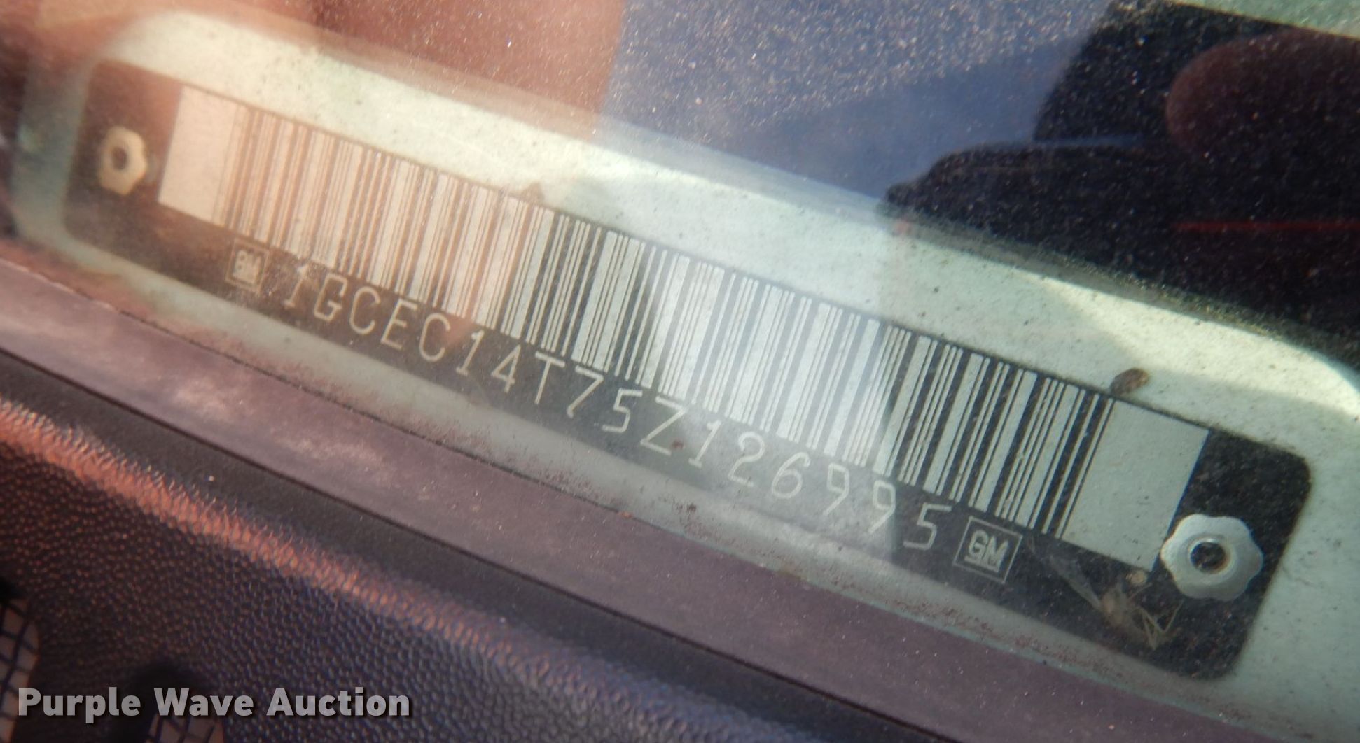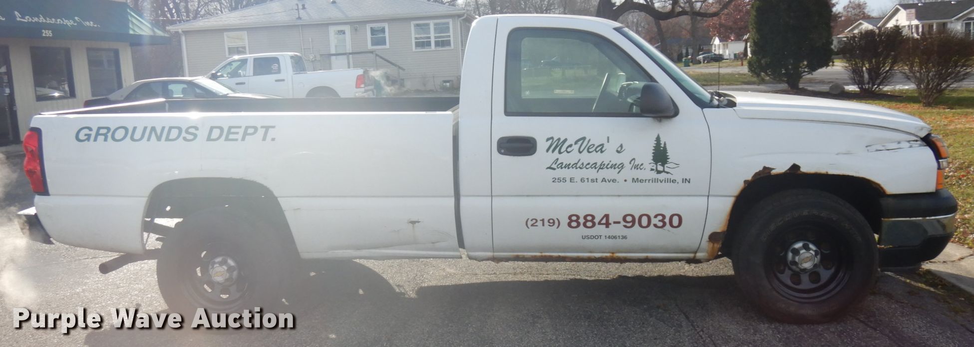 2005 Chevrolet Silverado 1500 pickup truck. Miles: 83,508 on odometer, VIN: 1GCEC14T75Z126995. Engine Displacement: 5.3L V8 OHV 16V, Cylinders: 8, Fuel type: Gas. Transmission Automatic. Interior AC, Heat. Tires Size: 245/70R17. Notes Dash warning indicator: Check engine. Indiana title. McVea's Landscaping and Garden Center, Inc. 255 E 61st Ave. Merrillville, IN 46410