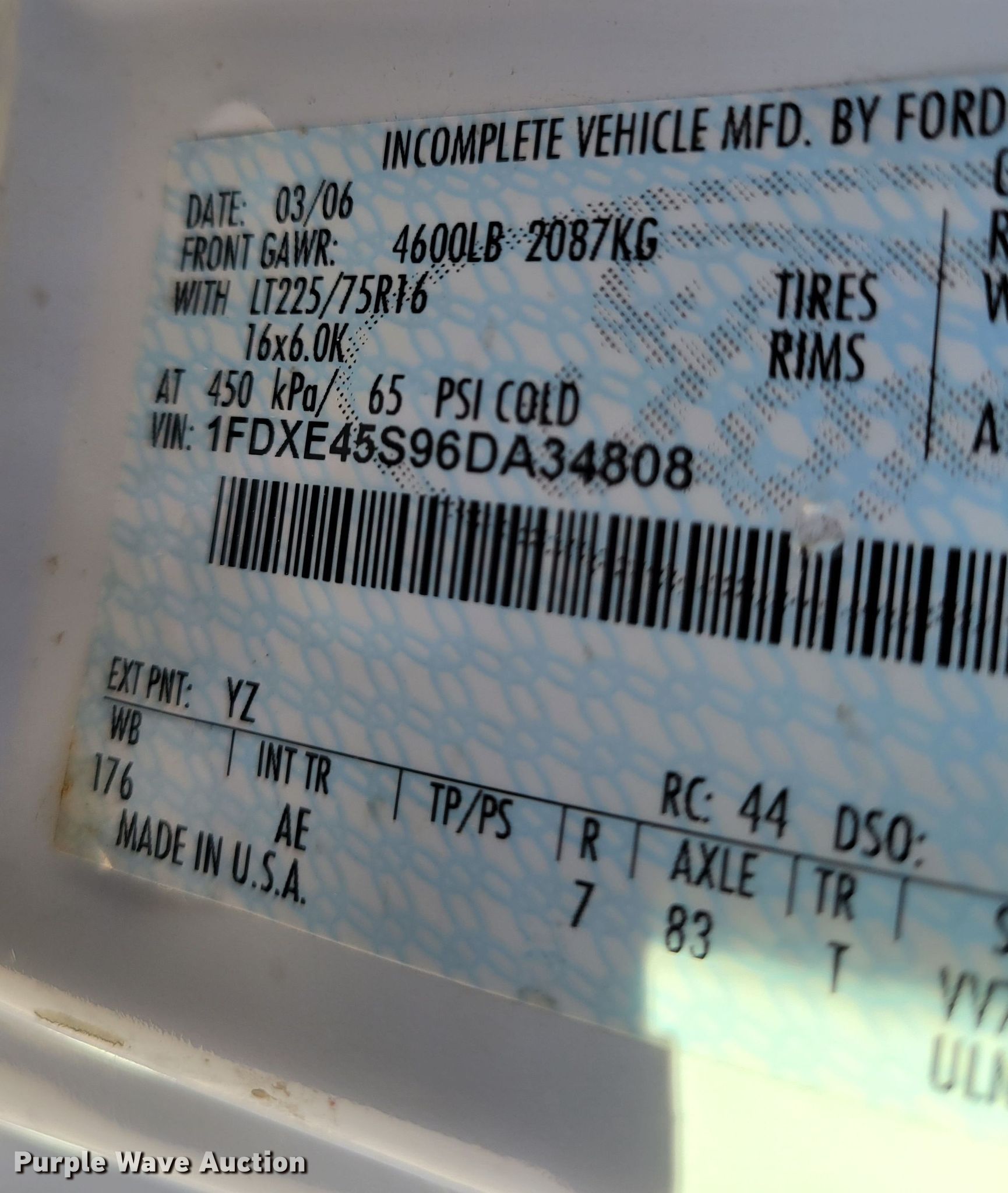 - VIN: 1FDXE45S96DA34808