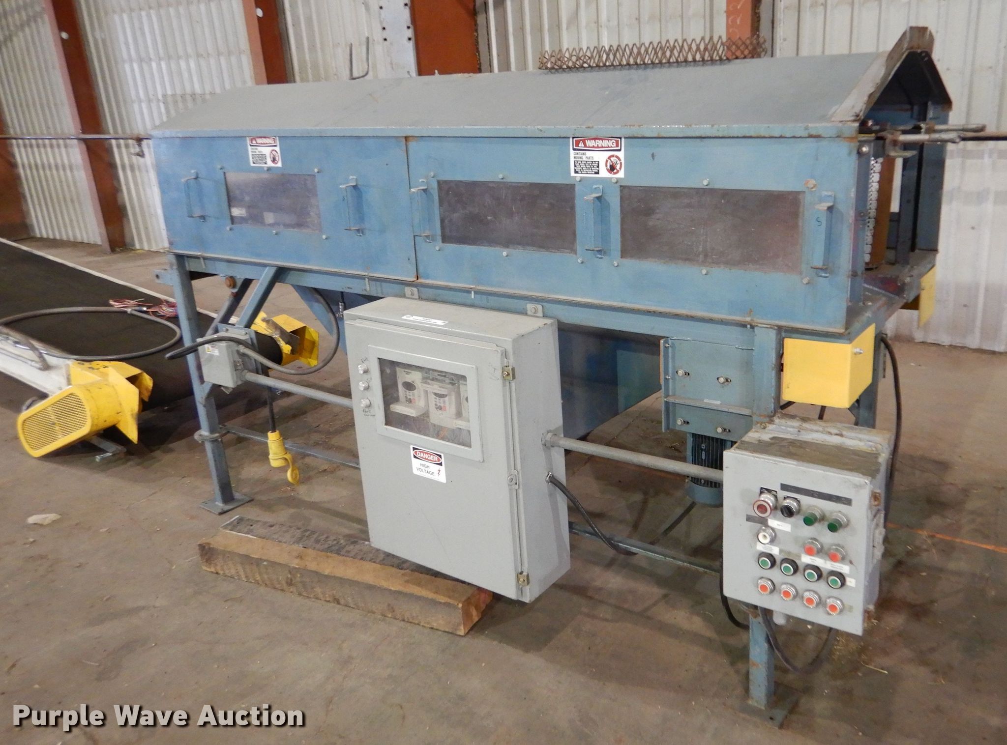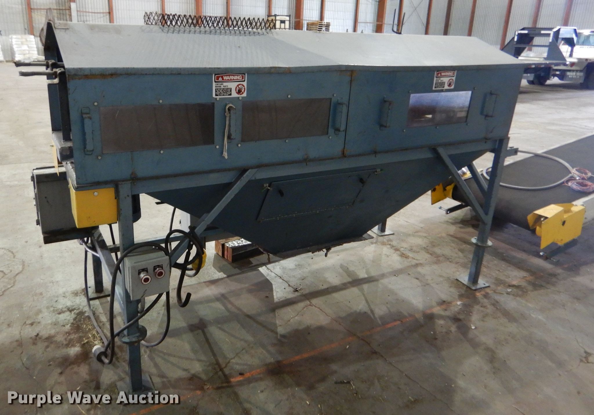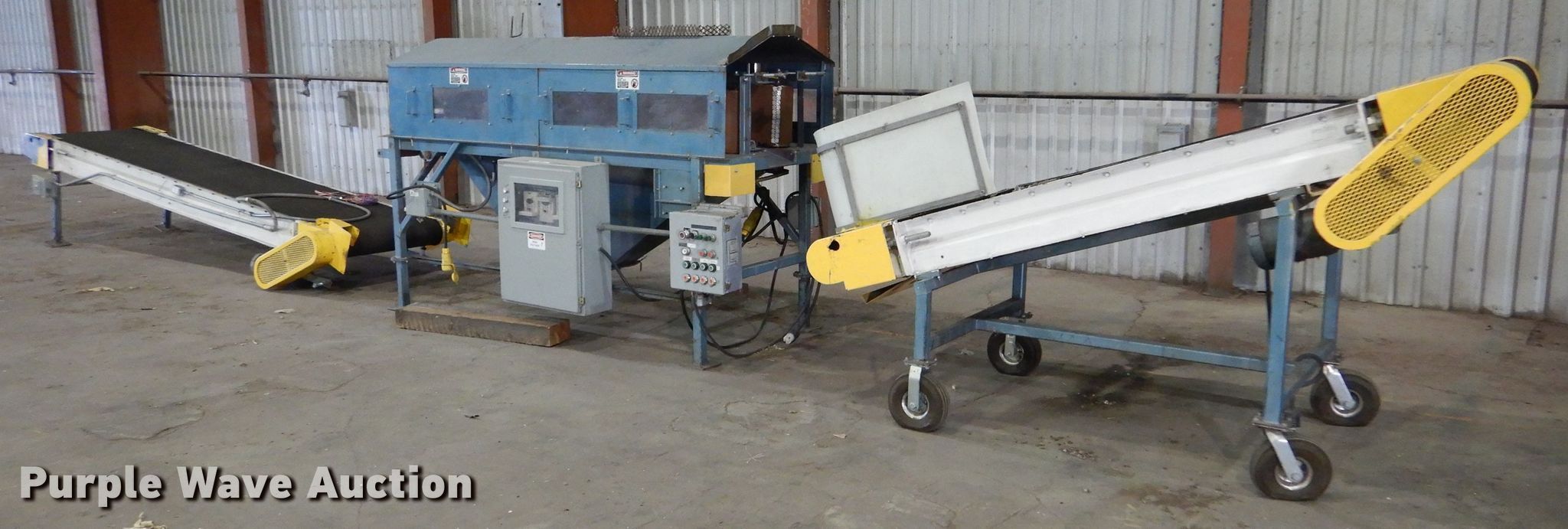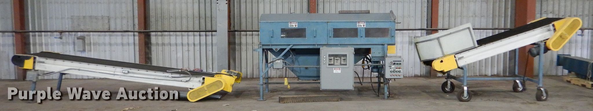 Purple Wave is selling a used Tools in Kansas. This item is a Metalfab, Inc. debagger system with the following: Approx. 9'L x 45"W overall, 14" blade, Weigmann electrical box, (2) AGRA Industries conveyors, Model 30BSC454, 13'L overall, 30" wide belt, Model 30BSDC454, 8'8"L overall, 30" wide belt,, Air Sentry dust collection system, Approx. 11'7"H, Baldor electric motor, 5 HP, Three phase, Serial: J-202042