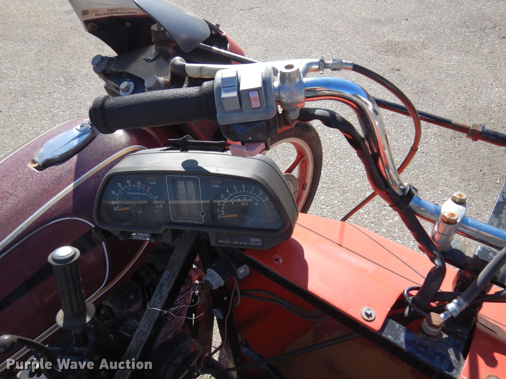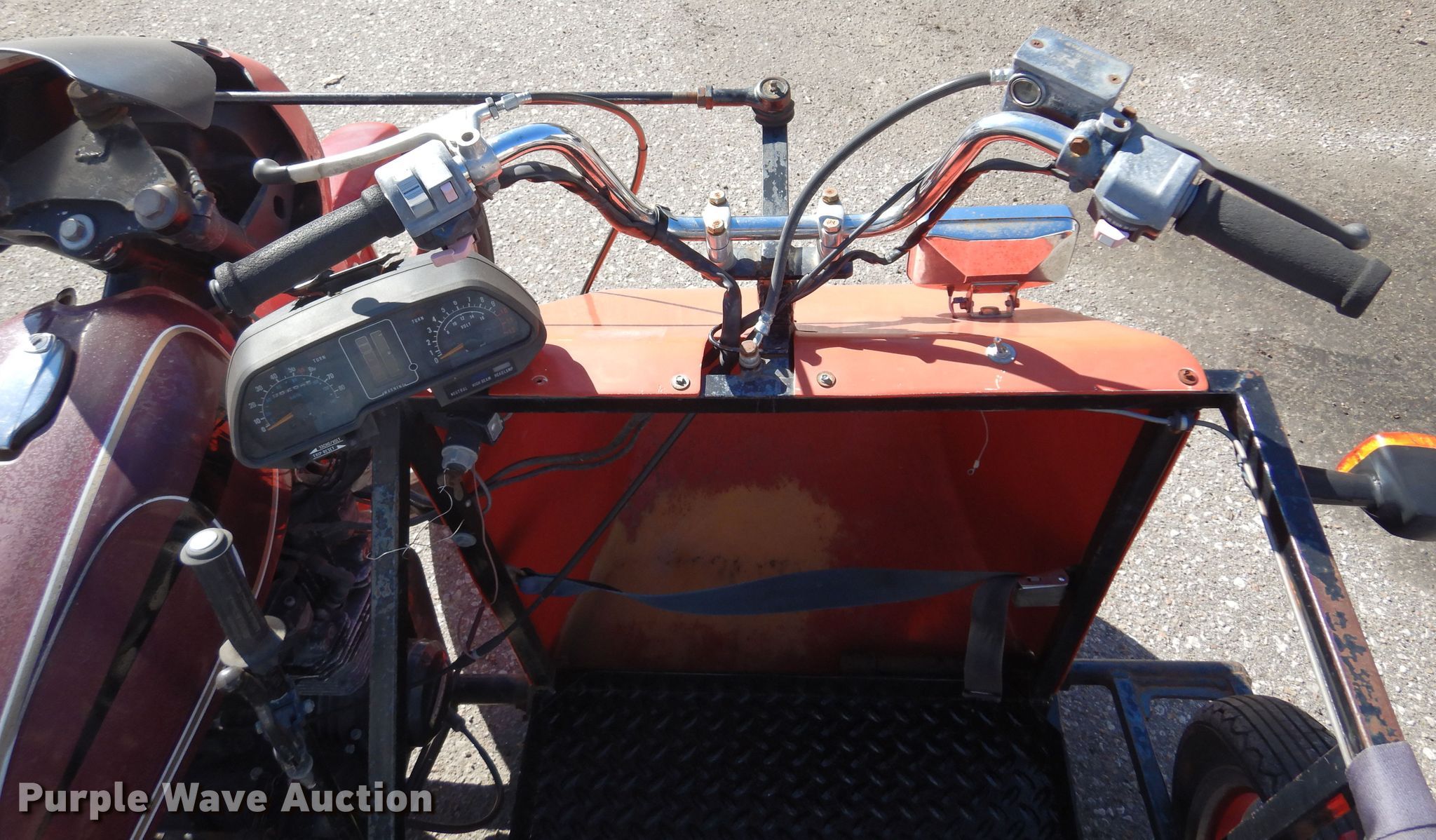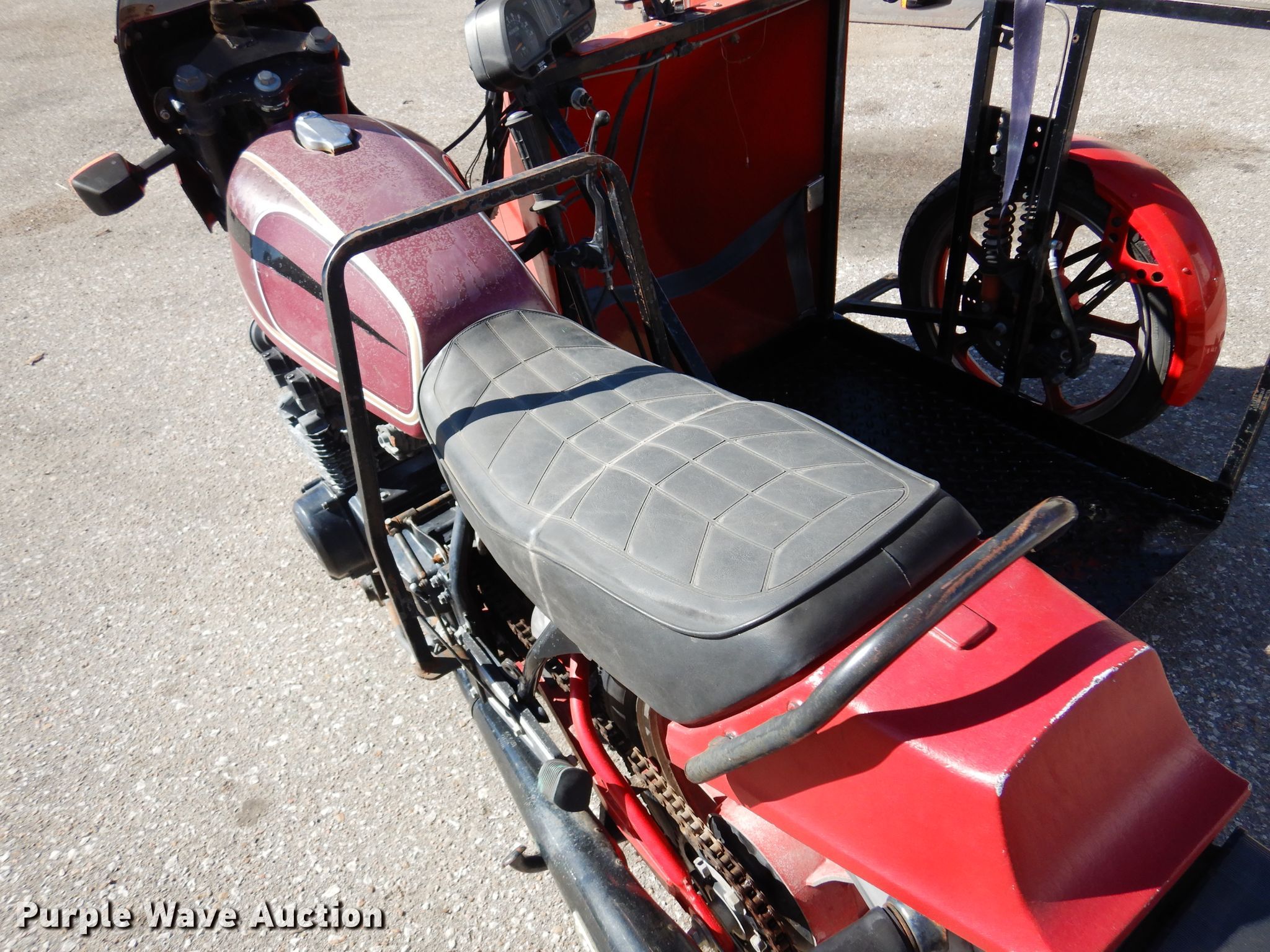 1982 Kawasaki 750 motorcycle. Miles: 98,267 on odometer, VIN: JKAKZFH12CA007653. Engine Displacement: 750 cc, Cylinders: 4, Fuel type: Gas. Transmission Speed: 5. Operational Wheelchair side car. Tires Front: 3.25/H19, Rear: 4.25/85R18. Notes Unknown operating condition. Kansas title. 6125 N Broadway Ave. Park City, KS 67219