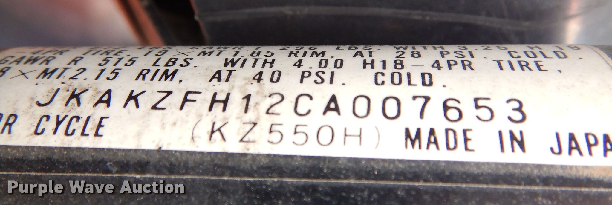 Purple Wave is selling a used Motorcycle in Kansas. This item is a 1982 Kawasaki 750 motorcycle with the following: Miles: 98,267 on odometer, VIN: JKAKZFH12CA007653