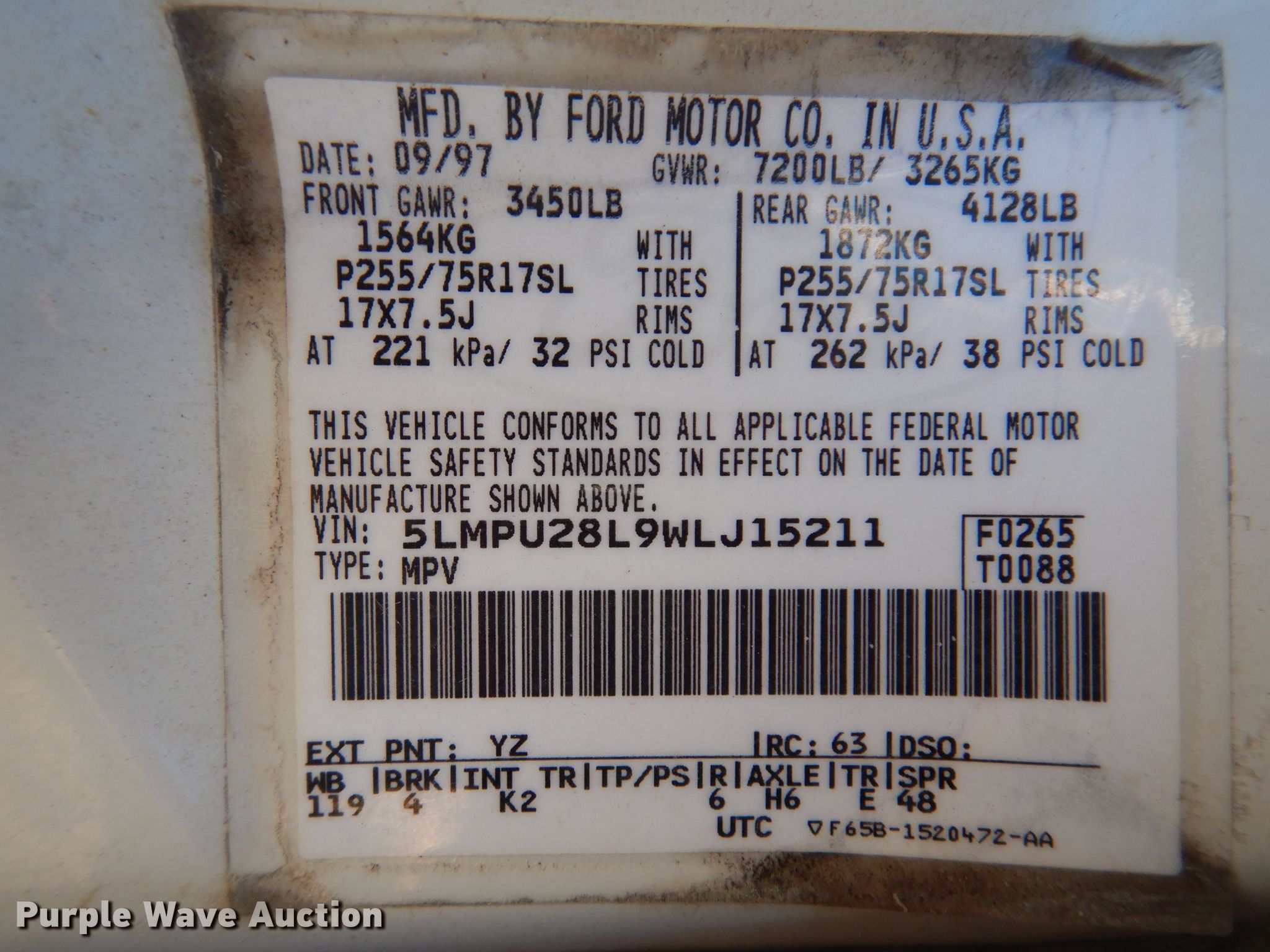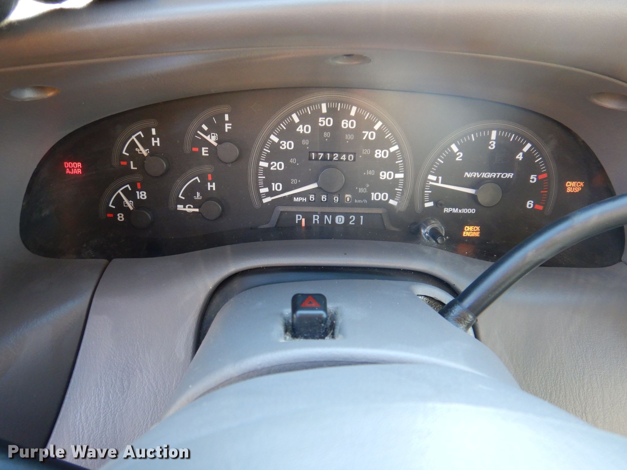 1998 Lincoln Navigator SUV. Miles: 171,240 on odometer, VIN: 5LMPU28L9WLJ15211. Engine Displacement: 5.4L V8 SOHC 16V, Cylinders: 8, Fuel type: Gas. Transmission Automatic, Four wheel drive. Interior AC, Heat, Seat: Power driver, Power passenger, Heated mirrors, Power locks, Cruise control. Tires Size: P265/70R17. Notes Rear air suspension air spring removed, Dash warning indicator: Check engine. Iowa title. Wiegert Disposal Inc.. 10881 40th Ave. Prole, IA 50229