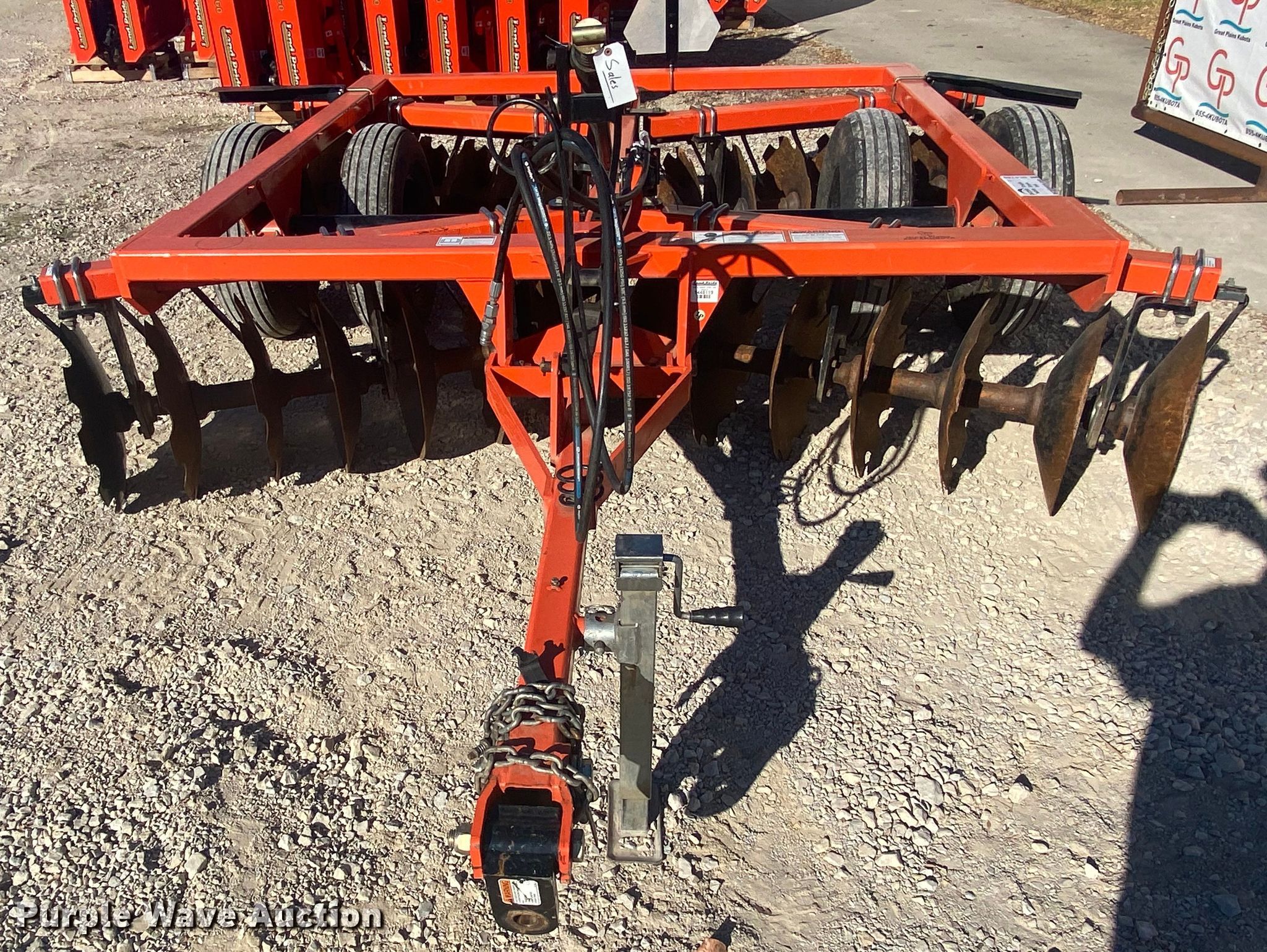 Land Pride DH3510 tandem disk. Overall width: 10' 6", Serial: 1448119. Operational Blade diameter Front: 20", Rear: 20", Spacing: 7.5", Operation Hydraulic lift. Great Plains Kubota - Open inspection Dec. 17, 18. 1601 N Mississippi Ave. Ada, OK 74820
