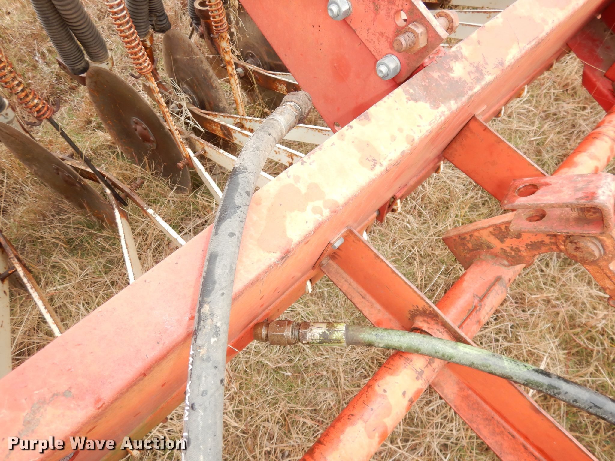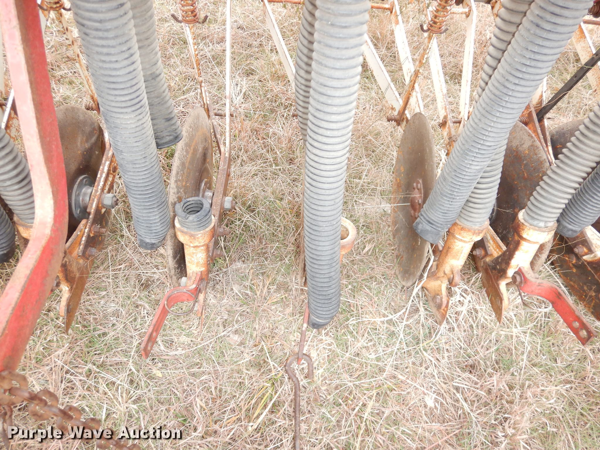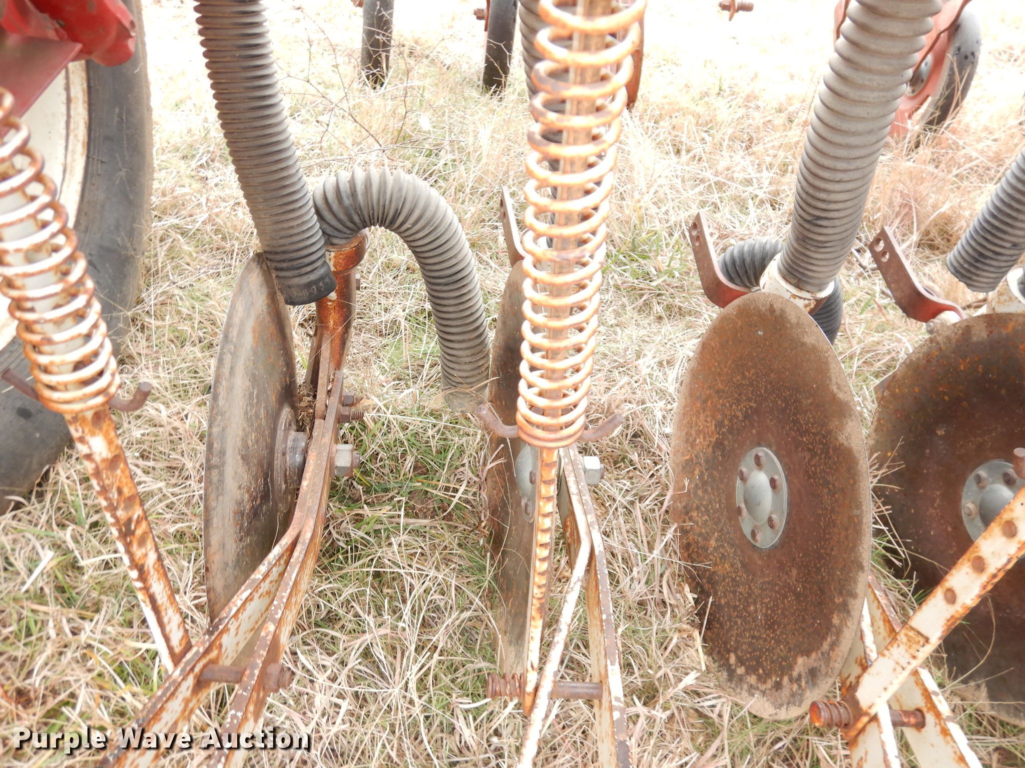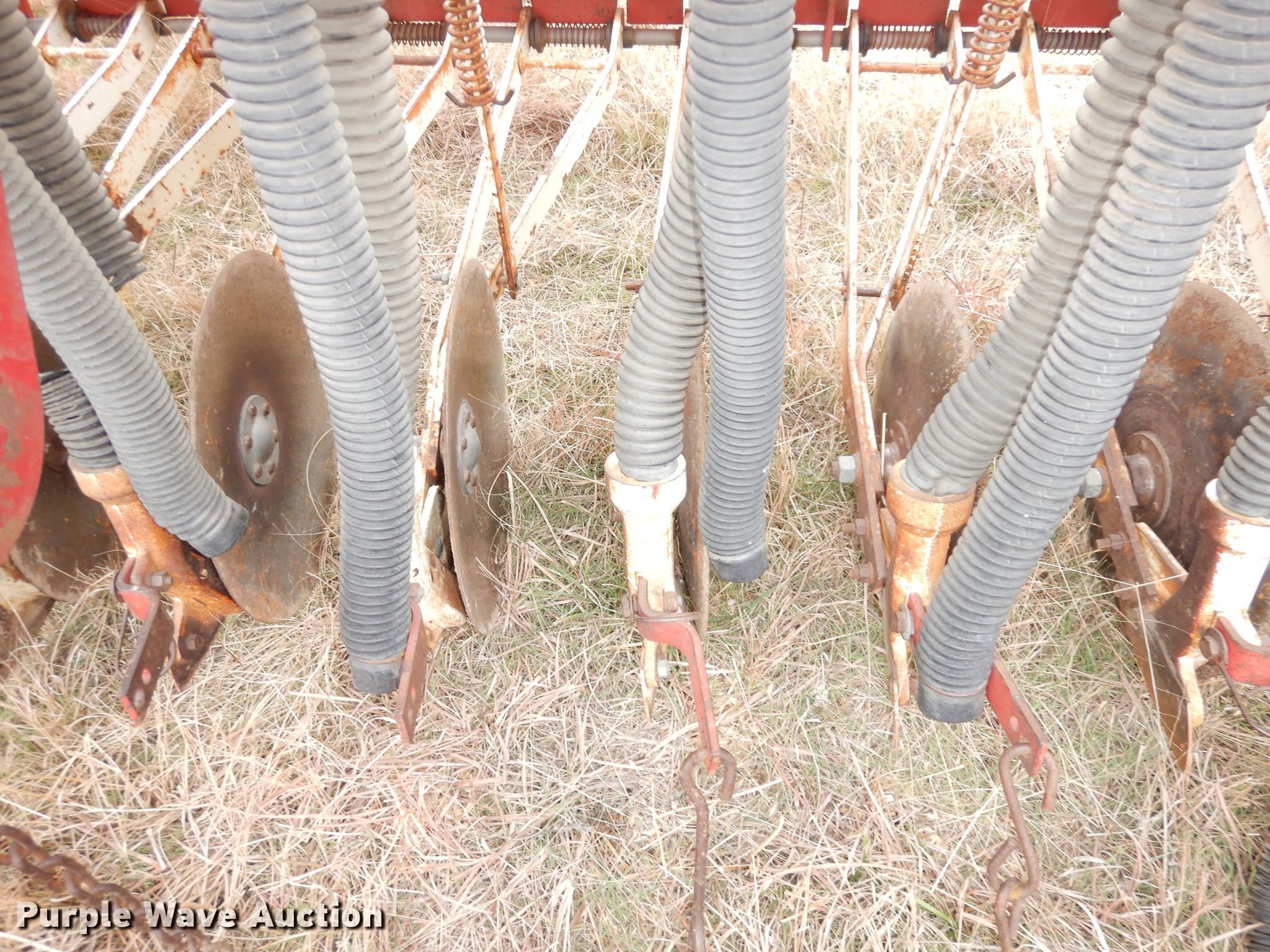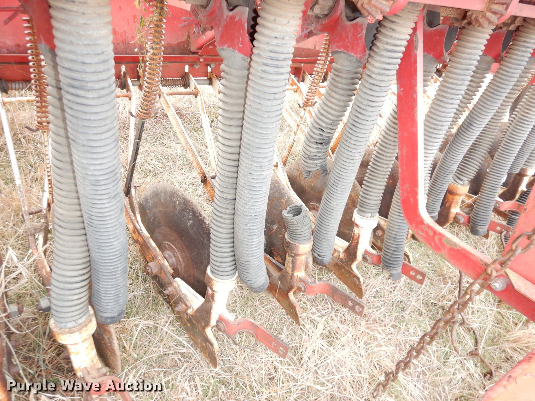 International 510 grain drill. Width: 13'6", Row units: 20, Row spacing: 9". Operational Seed delivery Bulk fill system, Row units Disk openers: Single , Closing system: Single Type: Rubber.. Tires Transport tire size: 7.5020 Quantity: 2. Notes Some hoses need replaced, Drive chains missing. Diehl Enterprises Inc.. Brookville, KS 67425