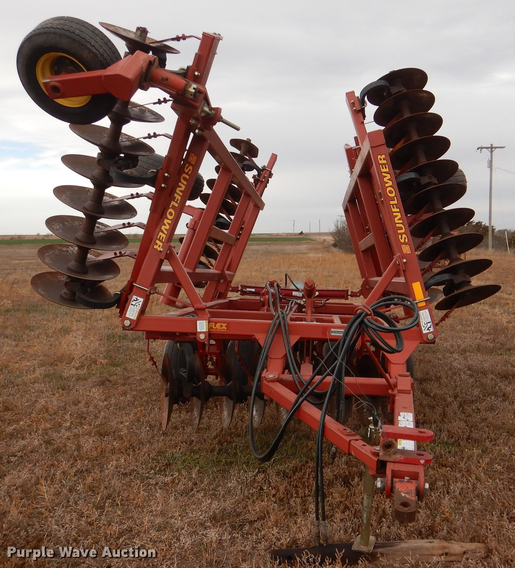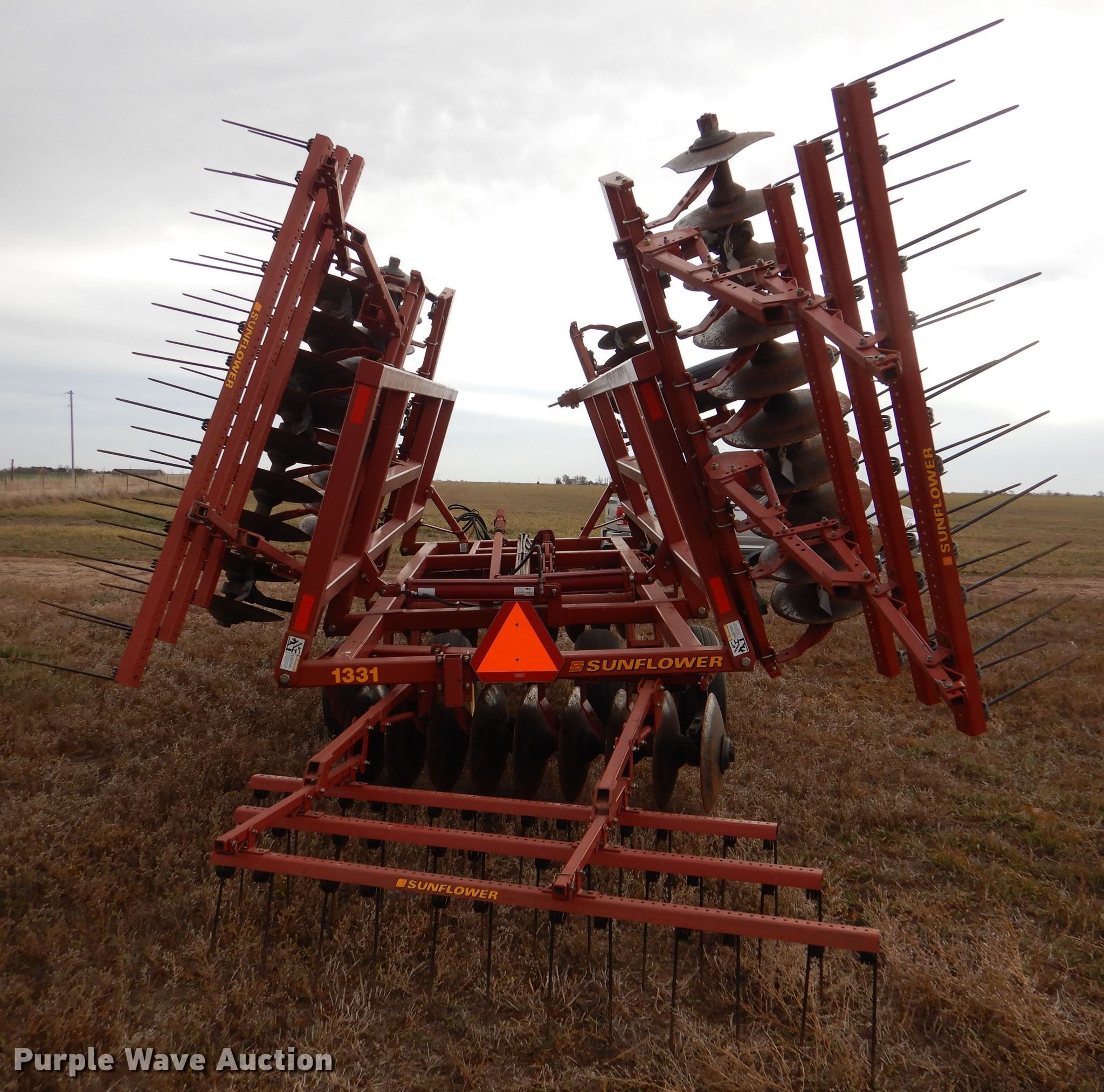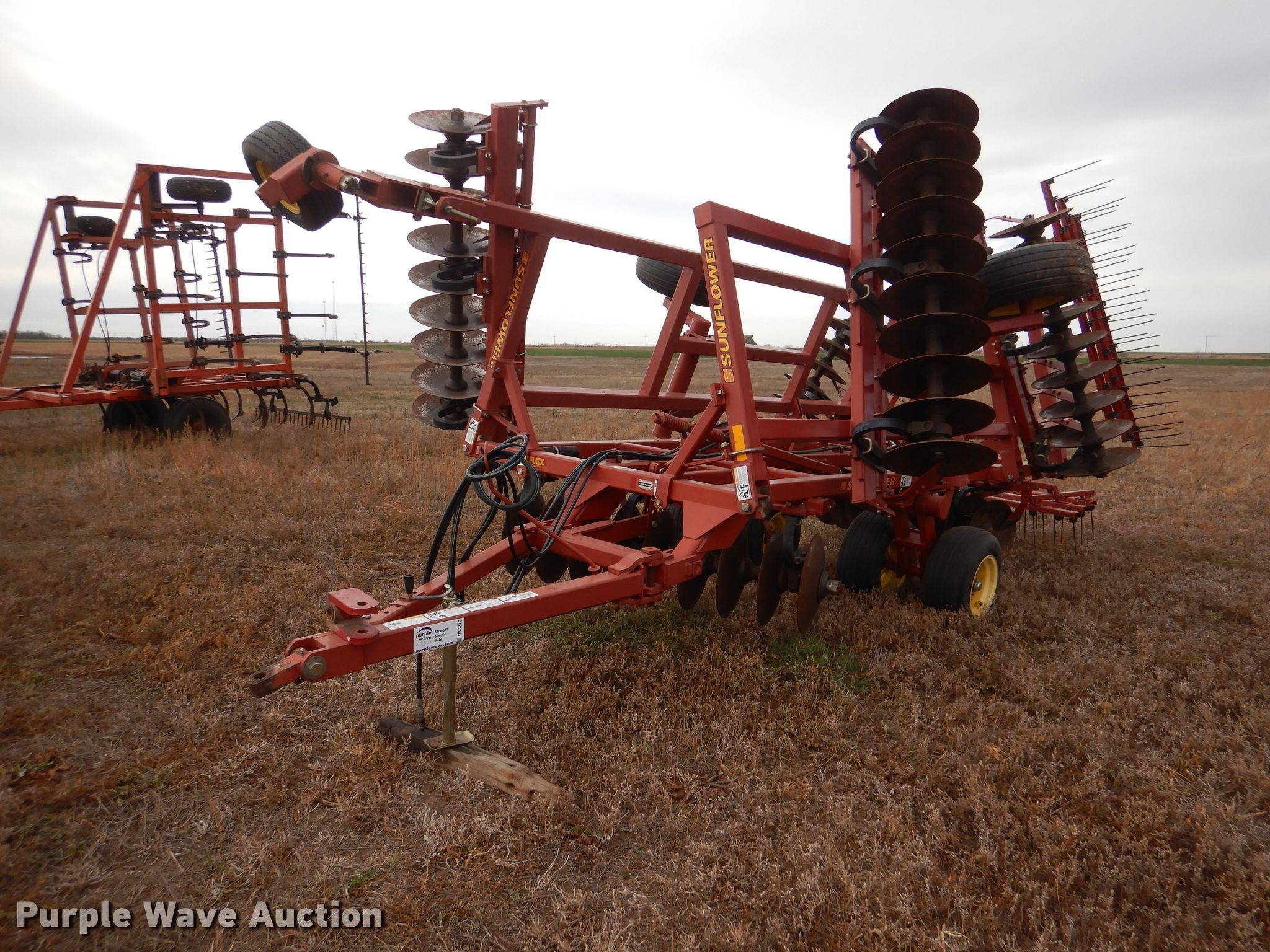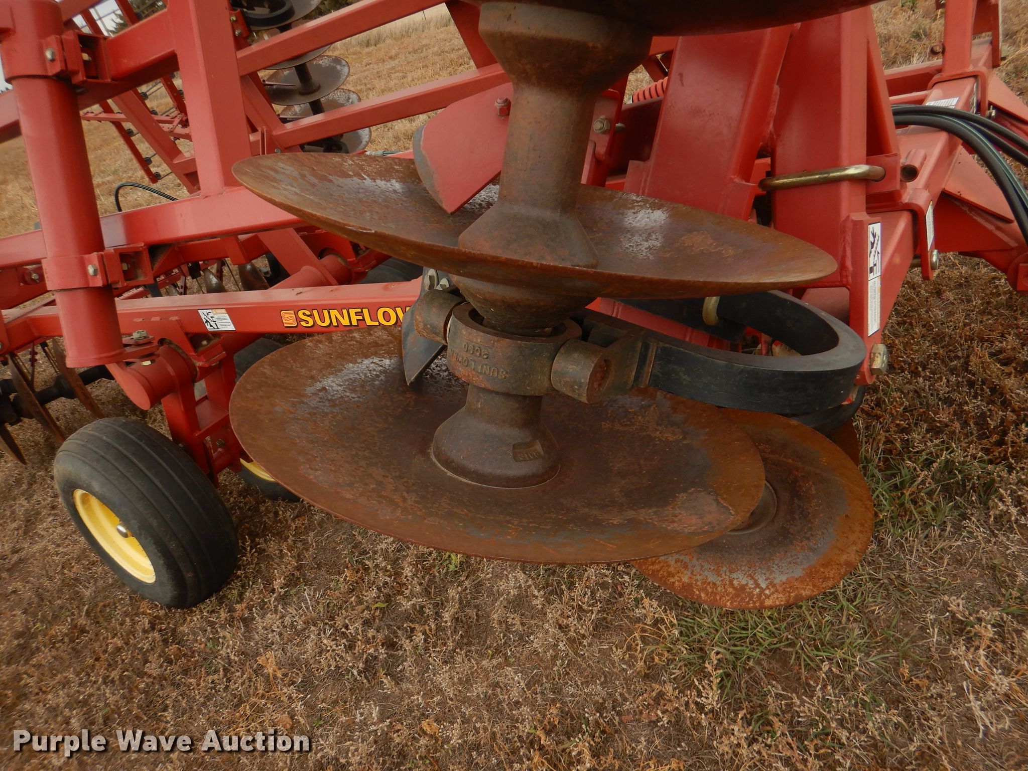 Purple Wave is selling a used Disk in Kansas. This item is a Sunflower 1331-20 off-set disk with the following: Overall width: 20'