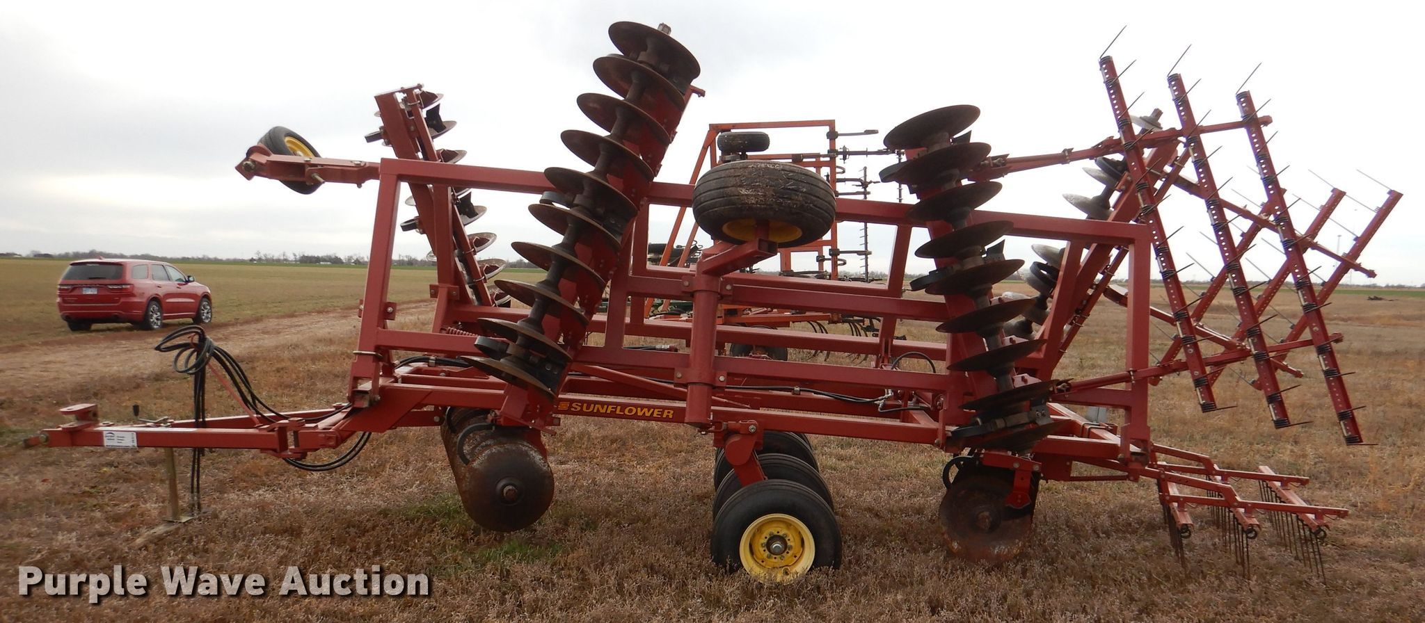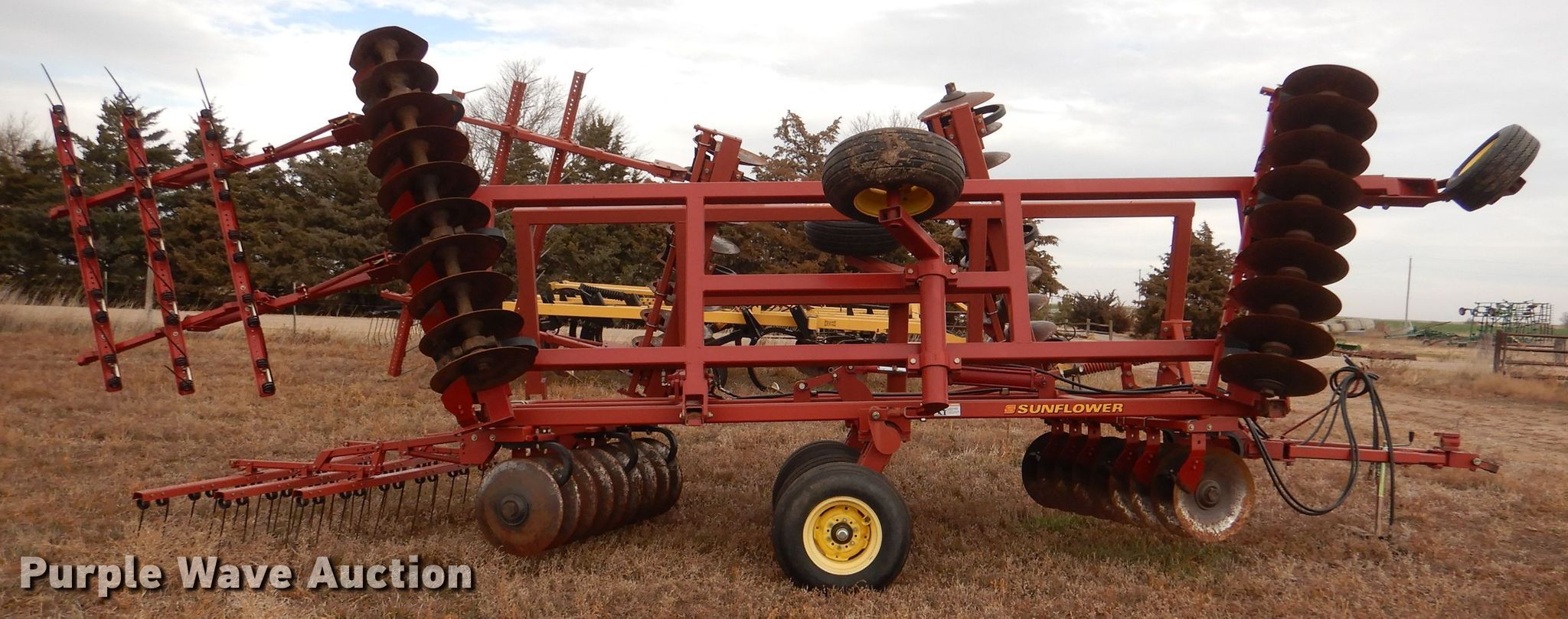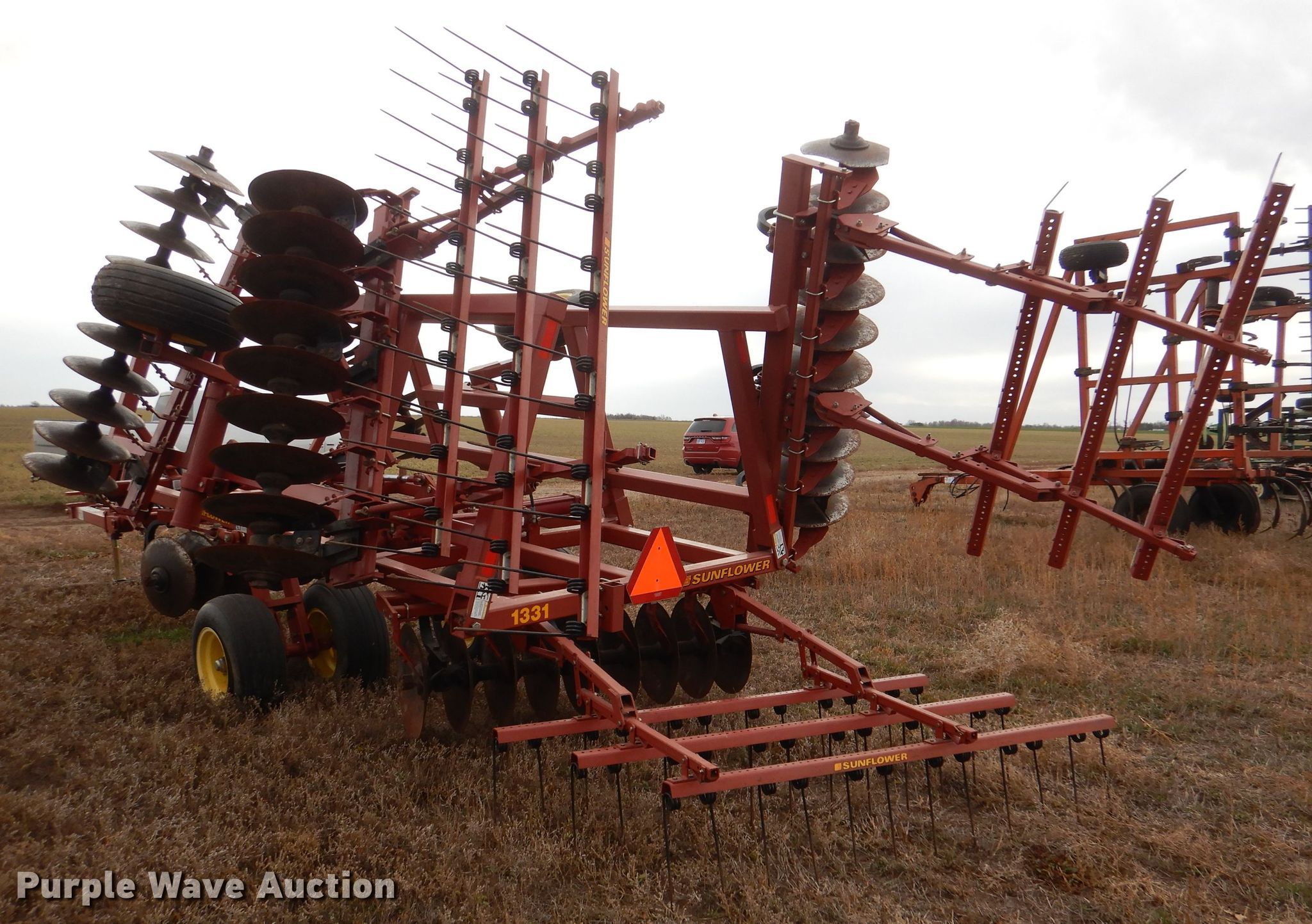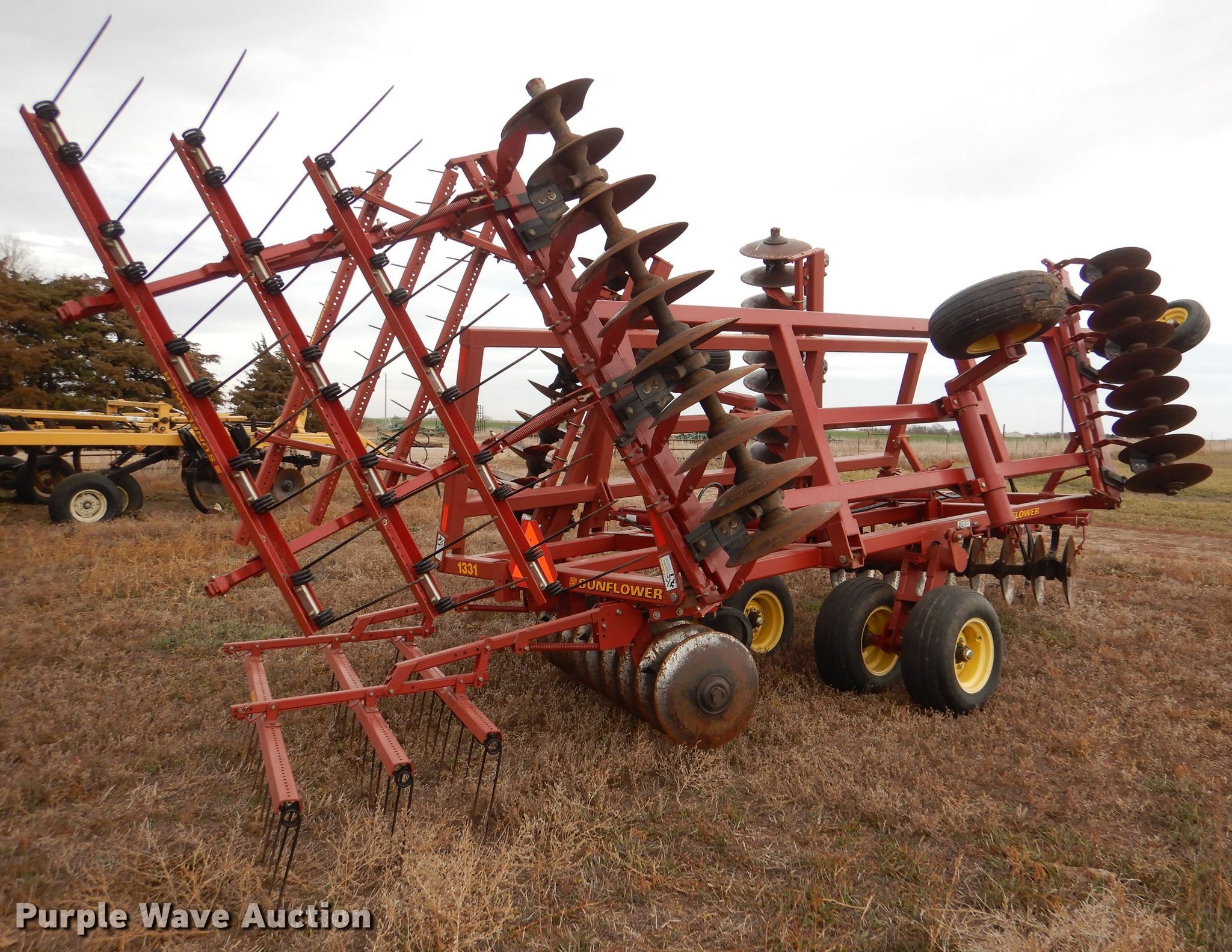 Purple Wave is selling a used Disk in Kansas. This item is a Sunflower 1331-20 off-set disk with the following: Overall width: 20'
