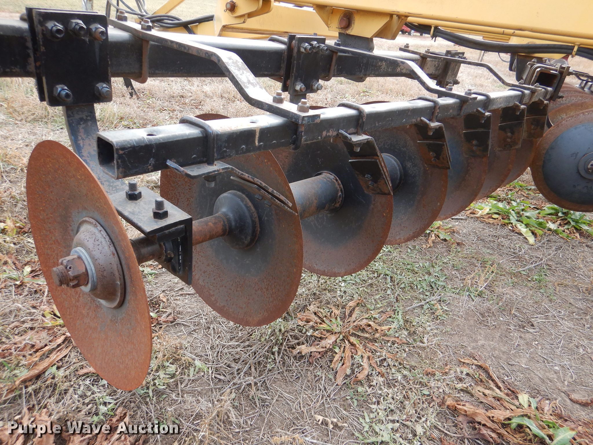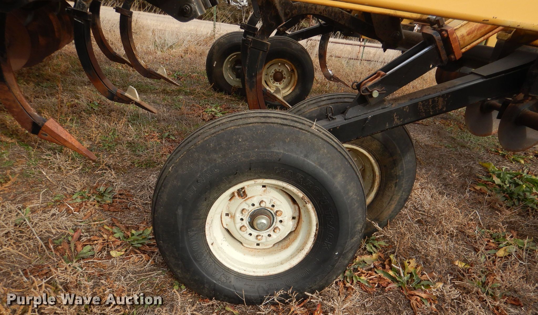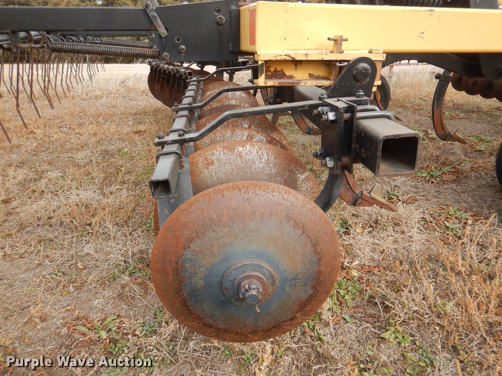 Landoll 2200 disk ripper. Serial: 22D9300144. Operational Blade diameter Front: 20", Rear: 23", Spacing: 14", Disk scrapers, Rippers: 9 Length: 24", Spacing: 24", Operation Hydraulic lift, Attachments Tine harrow Harrow bars: 3.. Tires Tire size: 10.00-15. 2416 19th Rd. Geneseo, KS 67444