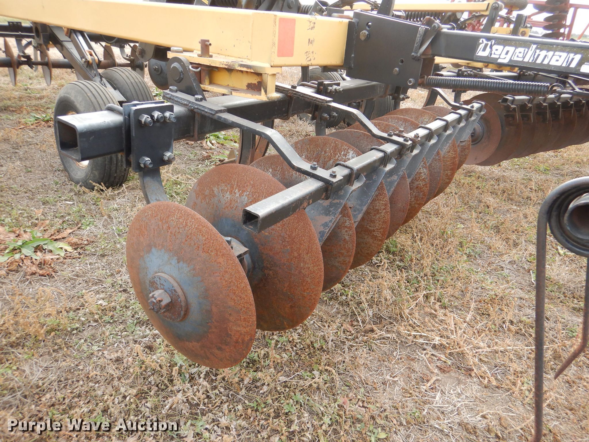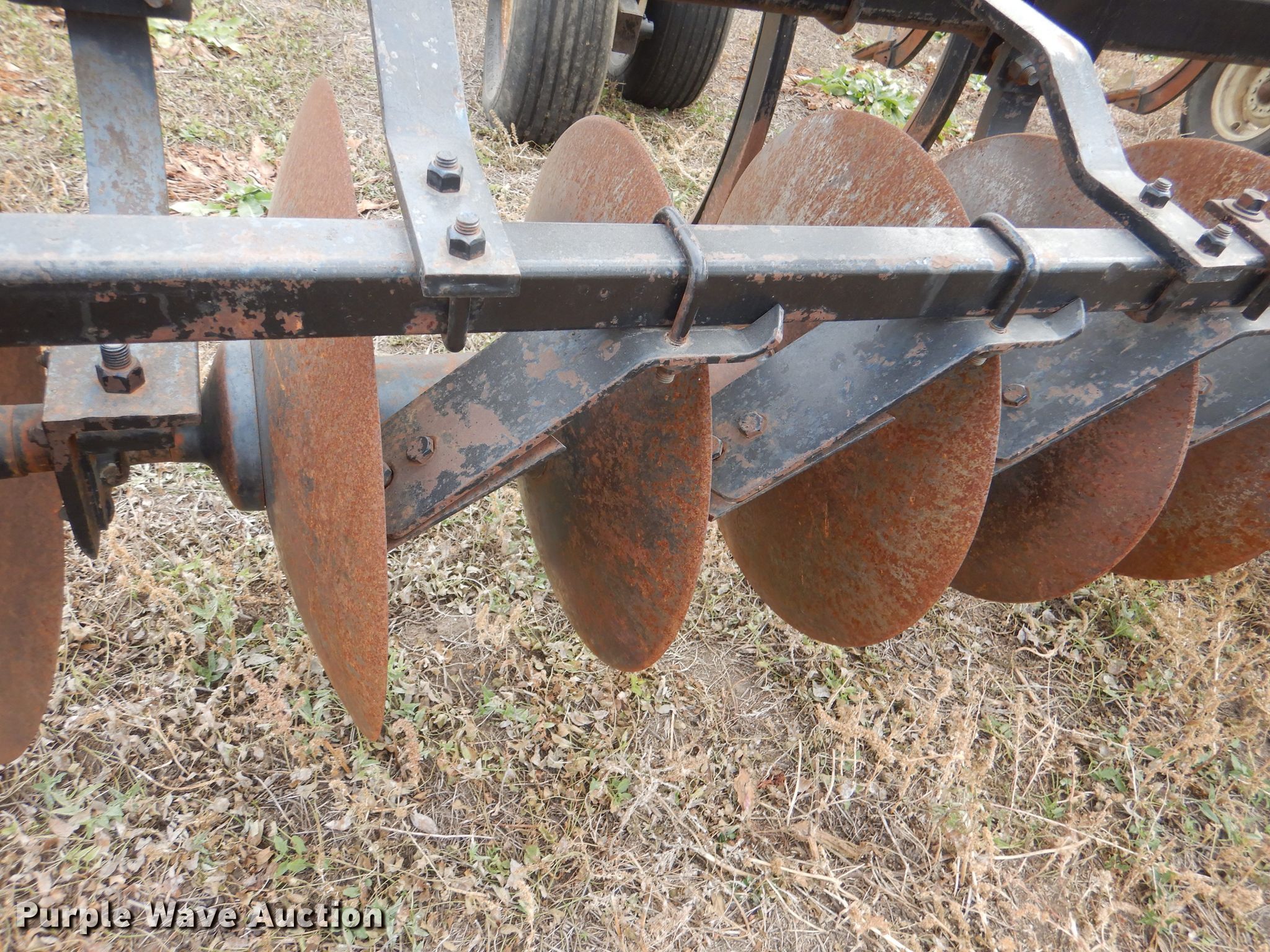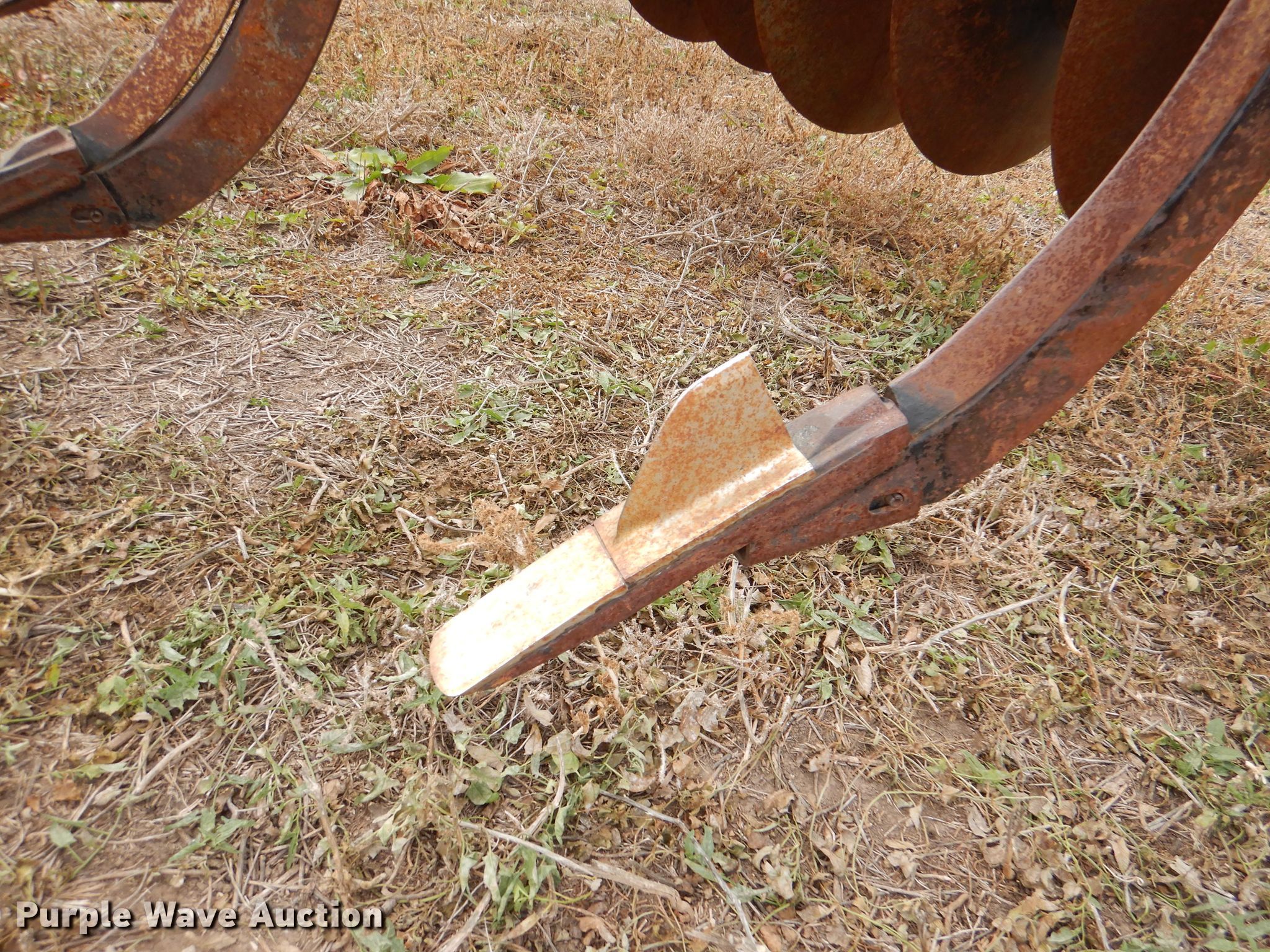 Landoll 2200 disk ripper. Serial: 22D9300144. Operational Blade diameter Front: 20", Rear: 23", Spacing: 14", Disk scrapers, Rippers: 9 Length: 24", Spacing: 24", Operation Hydraulic lift, Attachments Tine harrow Harrow bars: 3.. Tires Tire size: 10.00-15. 2416 19th Rd. Geneseo, KS 67444