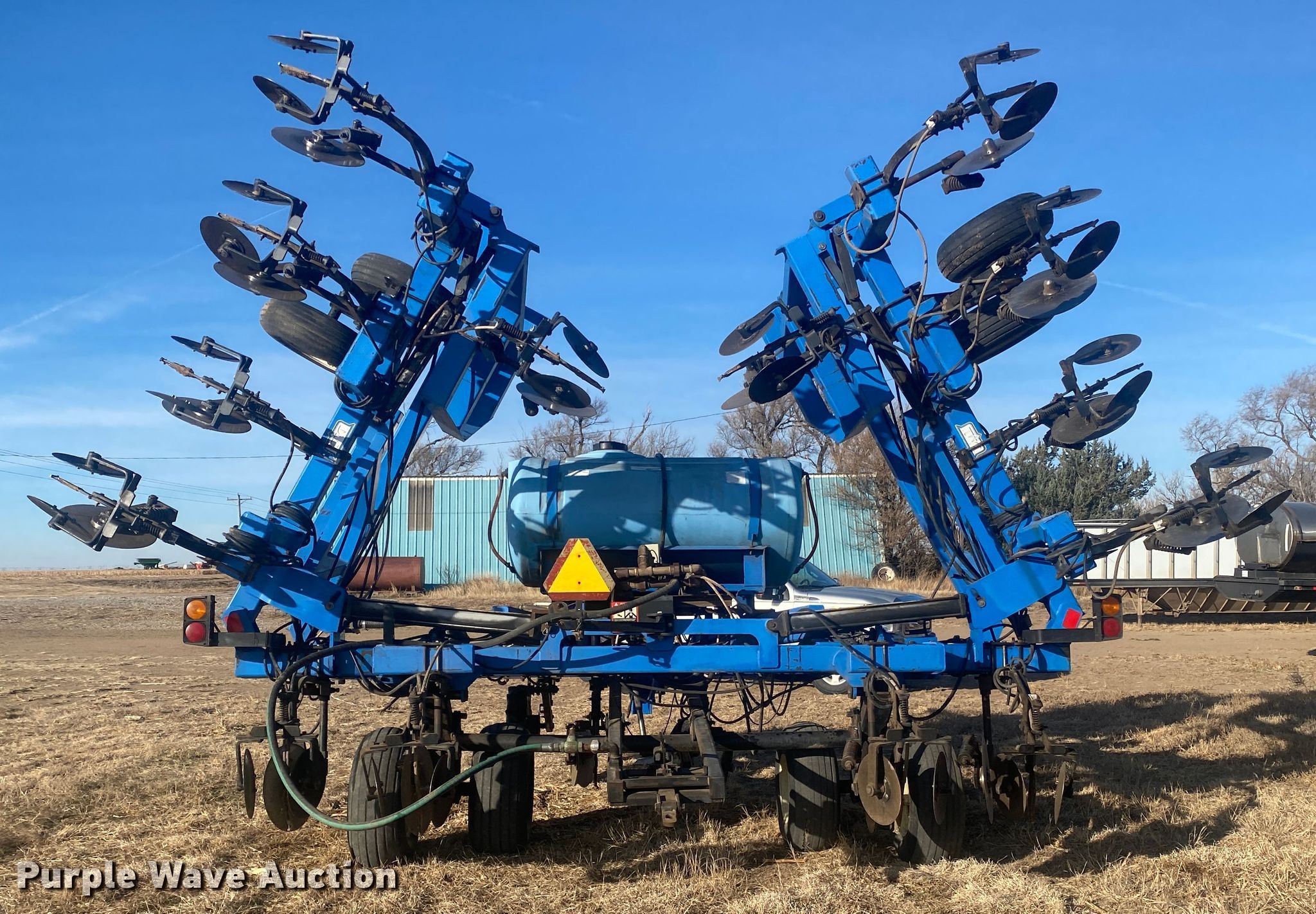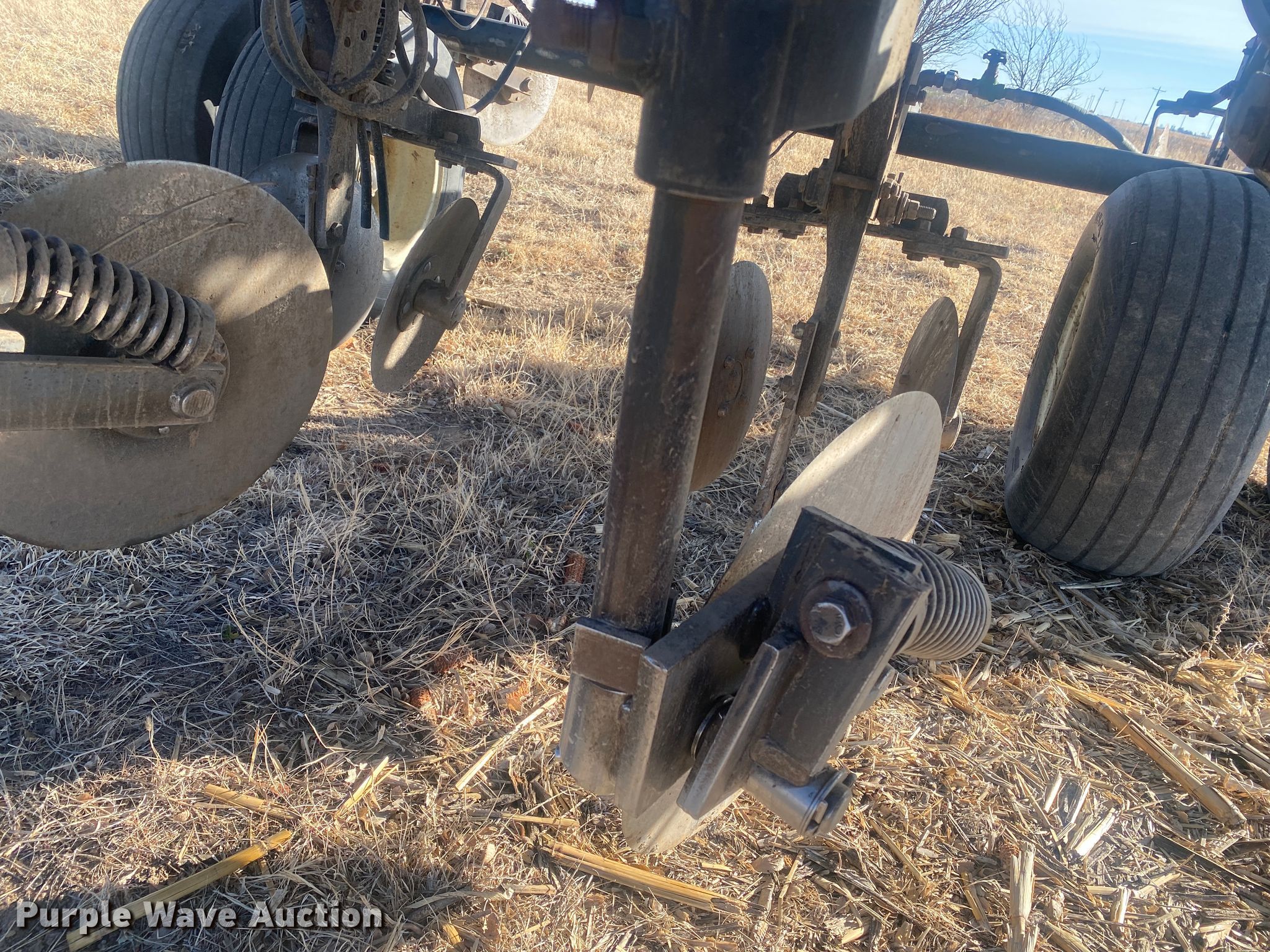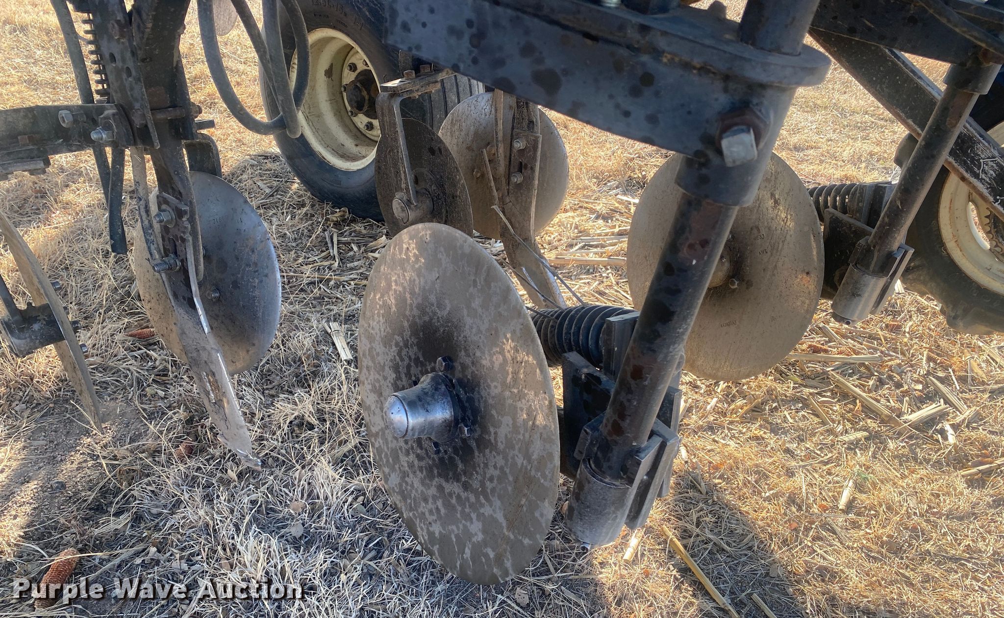DMI 5300 NH3 applicator. Overall width: 40', Serial: 825106. Operational Shanks: 14, Blade diameter Front: 18", Rear: 14", Spacing: 30", Operation Hydraulic lift, Hydraulic fold, Attachments NH3 hookups, Rear hitch. Tires Tire size: 9.5-15. Cimarron, KS 67835