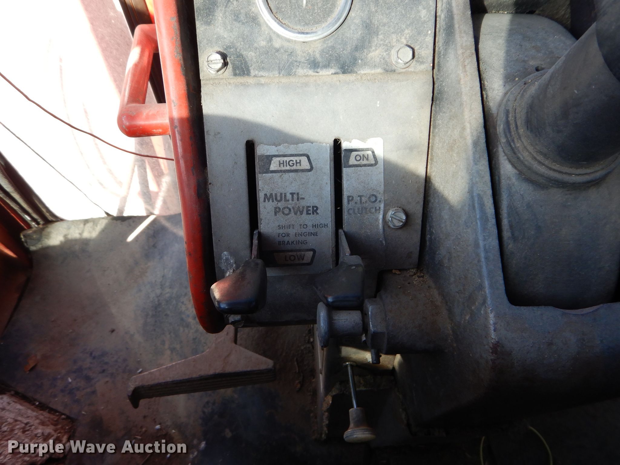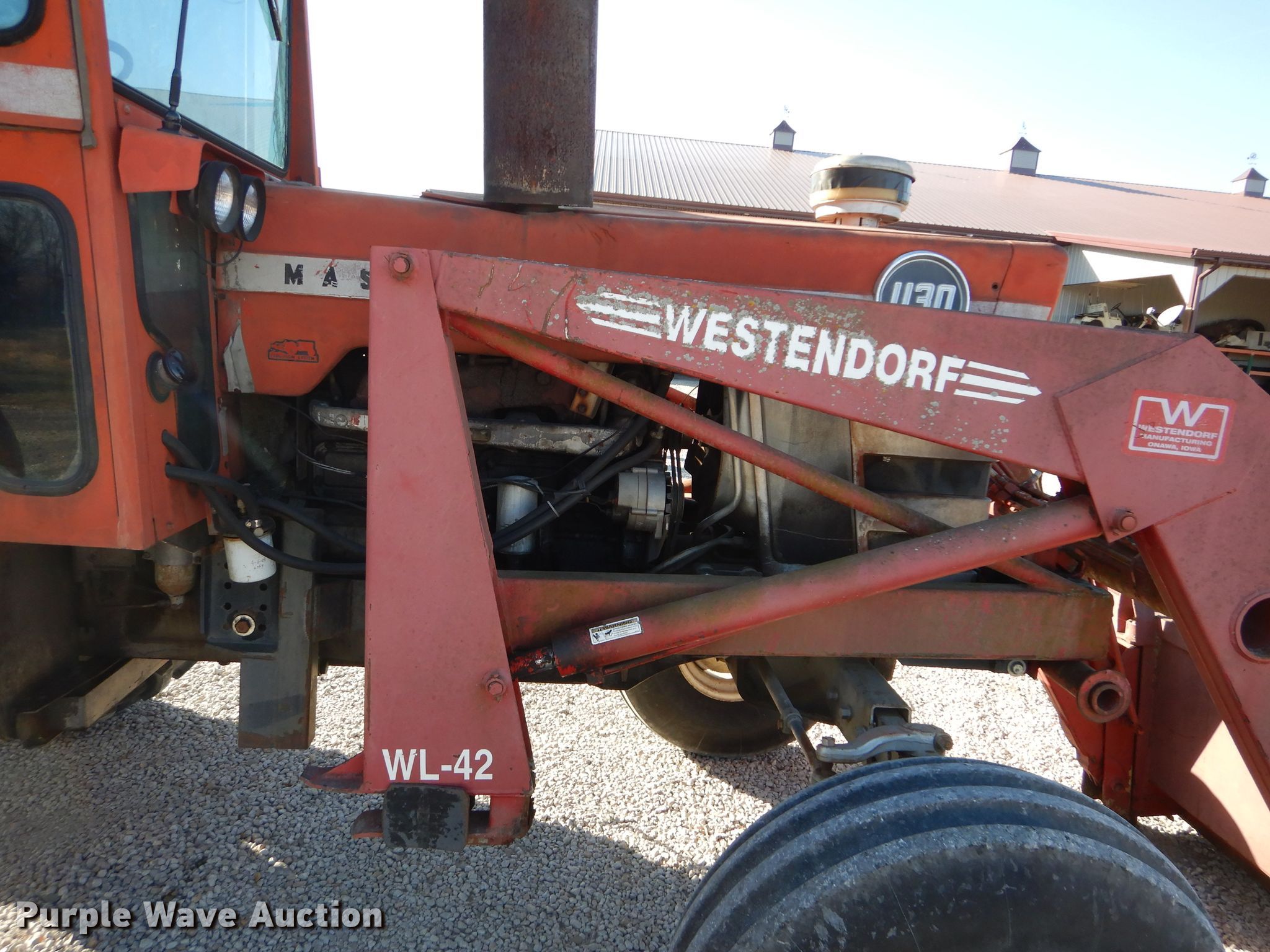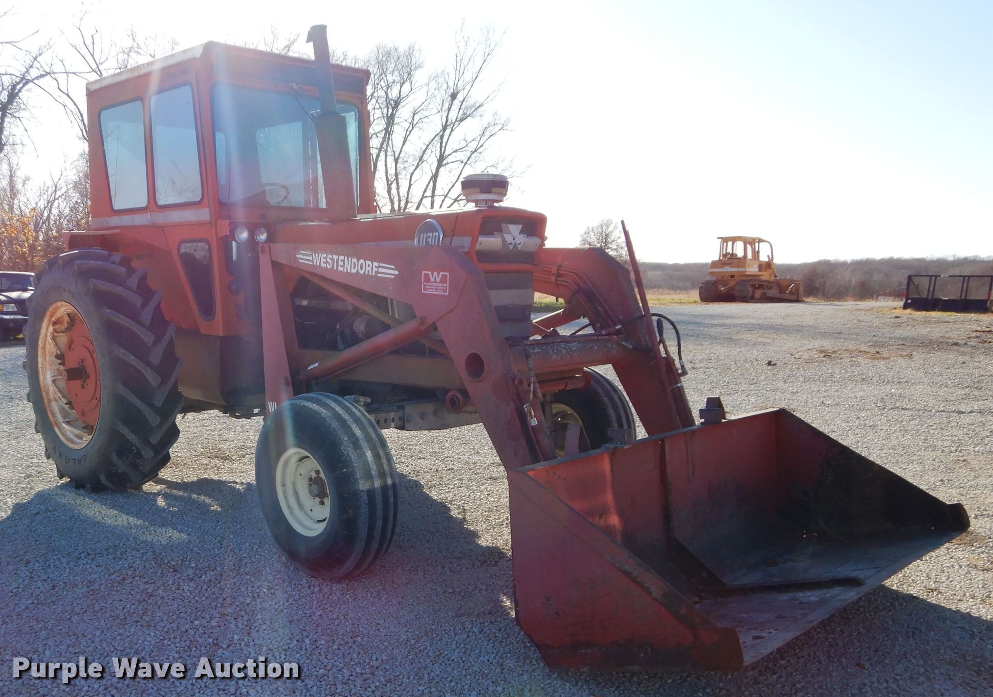 1972 Massey Ferguson 1130 tractor. Hours: 4,864 on meter, Serial: 9B 35688. Engine Cylinders: 6, Fuel type: Diesel. Transmission Multi power, 6F - 2R. Operators station AC, Heat. Operational PTO: 540, Three point, Hydraulic remote sets Rear: 1, Loader Westendorf WL-42, Bucket Width: 84".. Tires Front: 11.00-16, Rear: 18.4-38. Notes AC issues, does not blow cold. Shaw Excavating and Grading. Trimble, MO 64492