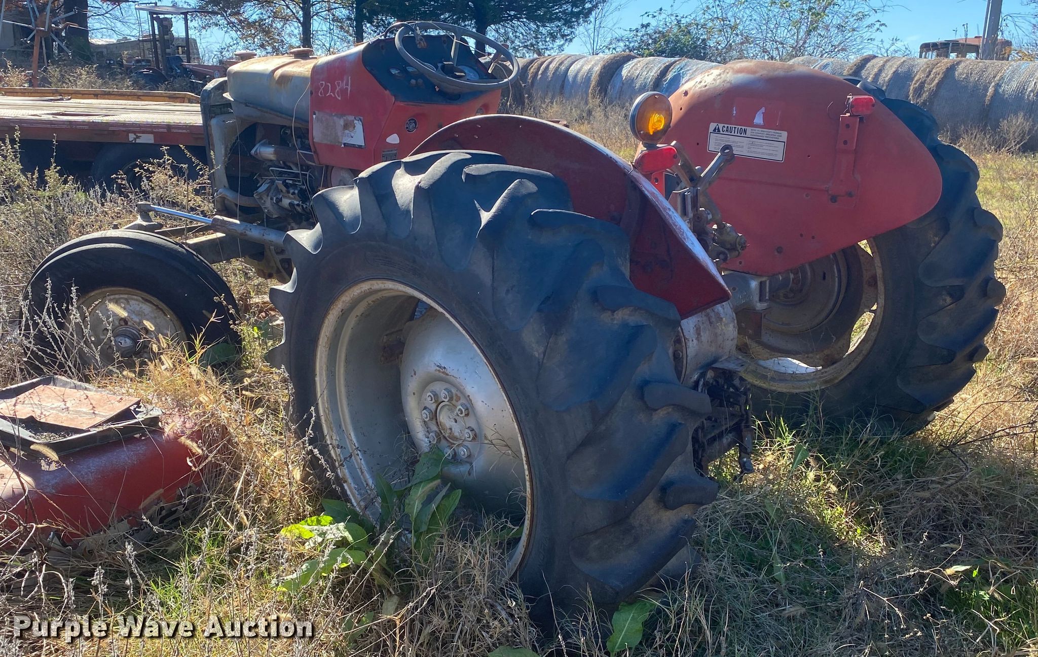 1996 Massey Ferguson 390T tractor. Hours: 2,558 on meter, Serial: 9A3I8537, Claim#: 1-814578. Engine Cylinders: 4, Fuel type: Diesel. Transmission Synchro, 12F - 4R. Operational PTO: 540. Tires Front: 7.50-16, Rear: 18.4-30, Wheelbase: 84". Notes Fire damage, Non-operational unit. Insurance salvage unit. Oklahoma Farm Bureau Insurance. 37243 US Hwy 59. Howe, OK 74940