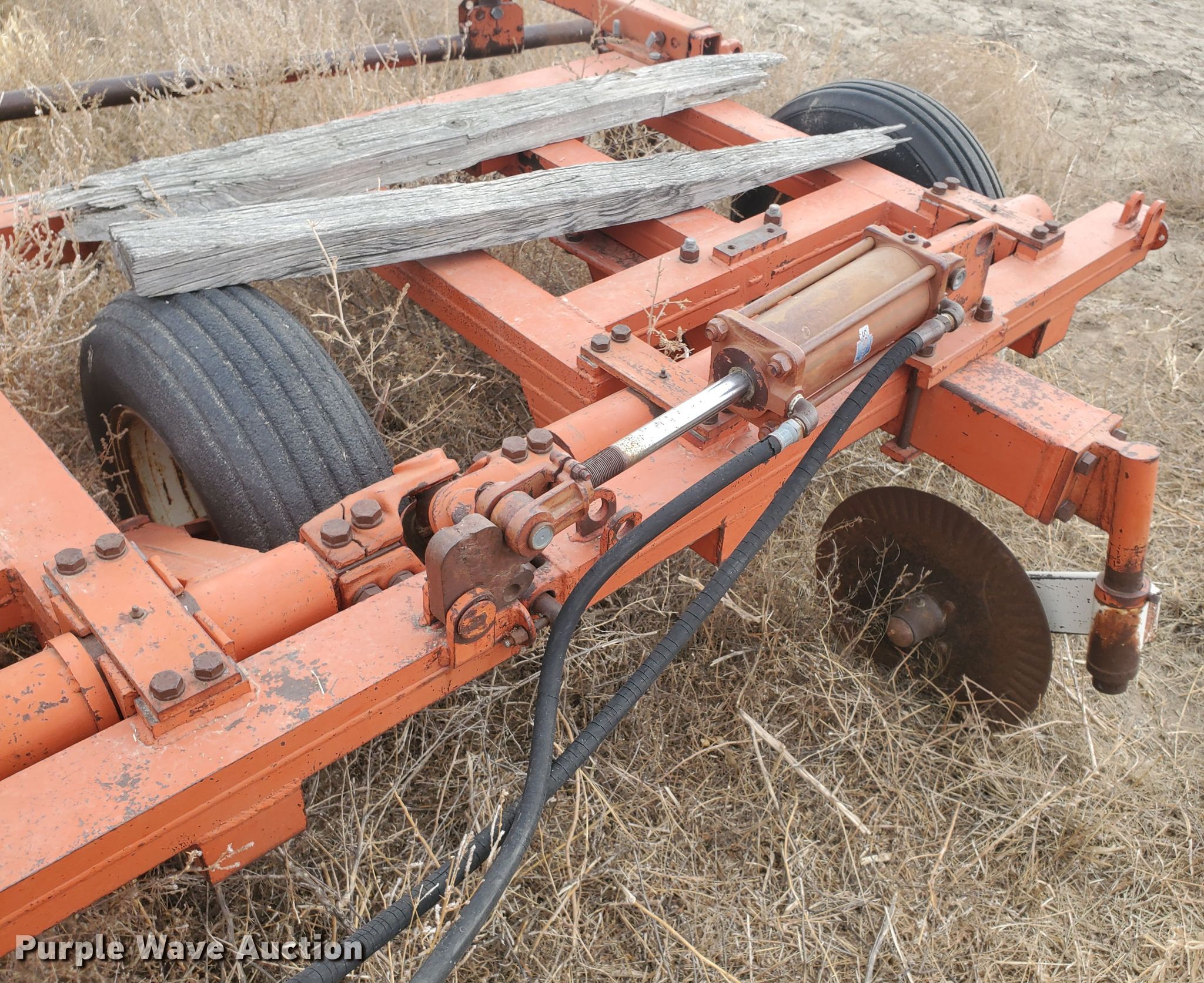 Richardson sweep plow. Overall width: 25'. Operational Shanks: 5, Sweep width: 60", Operation Hydraulic lift, Hydraulic fold, Leveler: Manual, Attachments Rolling pickers/ treader, Rear hitch. Tires Tire size: 9.5L-15. Notes Unknown operating condition. 530 E Rd 30 S. Hoxie, KS 67740