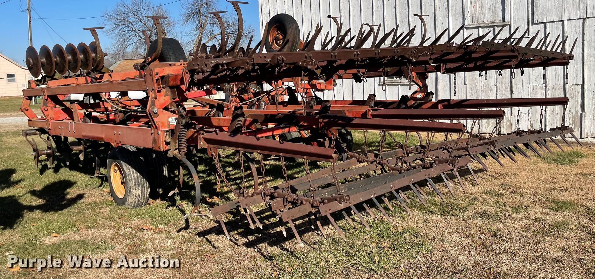 Bush Hog SC9000 mulcher finisher. Overall width: 22', Serial: 1100516. Operational Shanks: 28, Sweep width: 9", Operation Hydraulic lift, Hydraulic fold, Leveler: Manual, Attachments Spike tooth harrow Harrow bars: 5.. Tires Tire size: 9.5L-15. 368 Castleton Rd. Denton, KS 66017