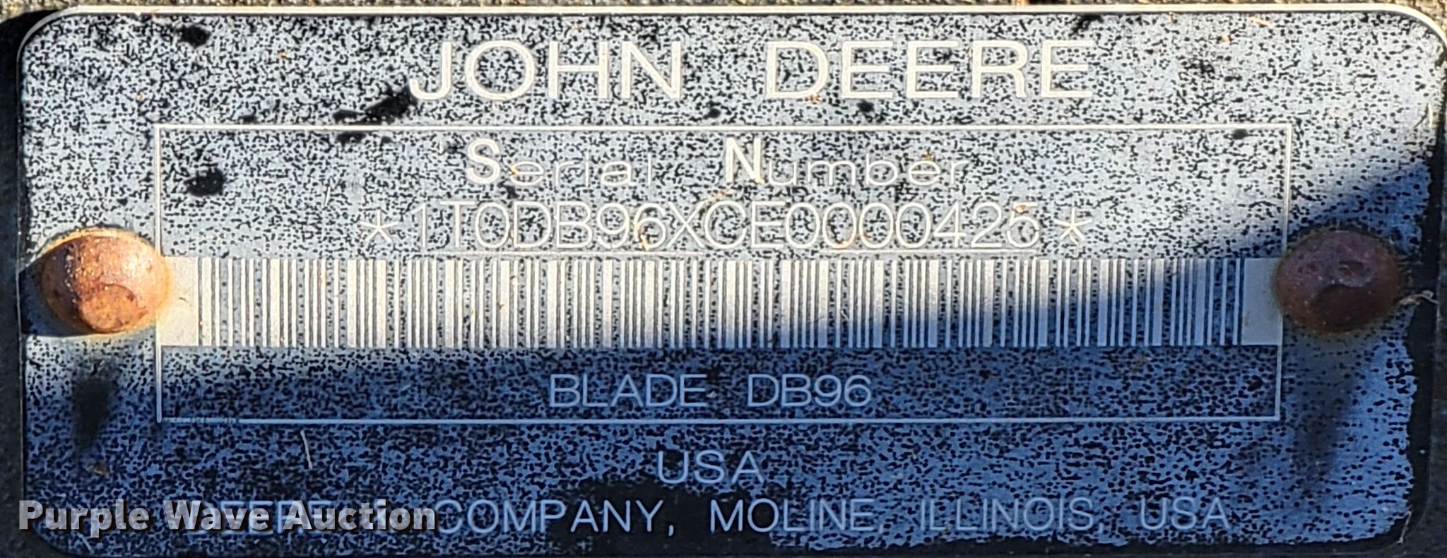 Purple Wave is selling a used Skid Steer Attach. in Kansas. This item is a John Deere DB96 skid steer blade with the following: Width: 96", Serial: 1T0DB96XCE0000425