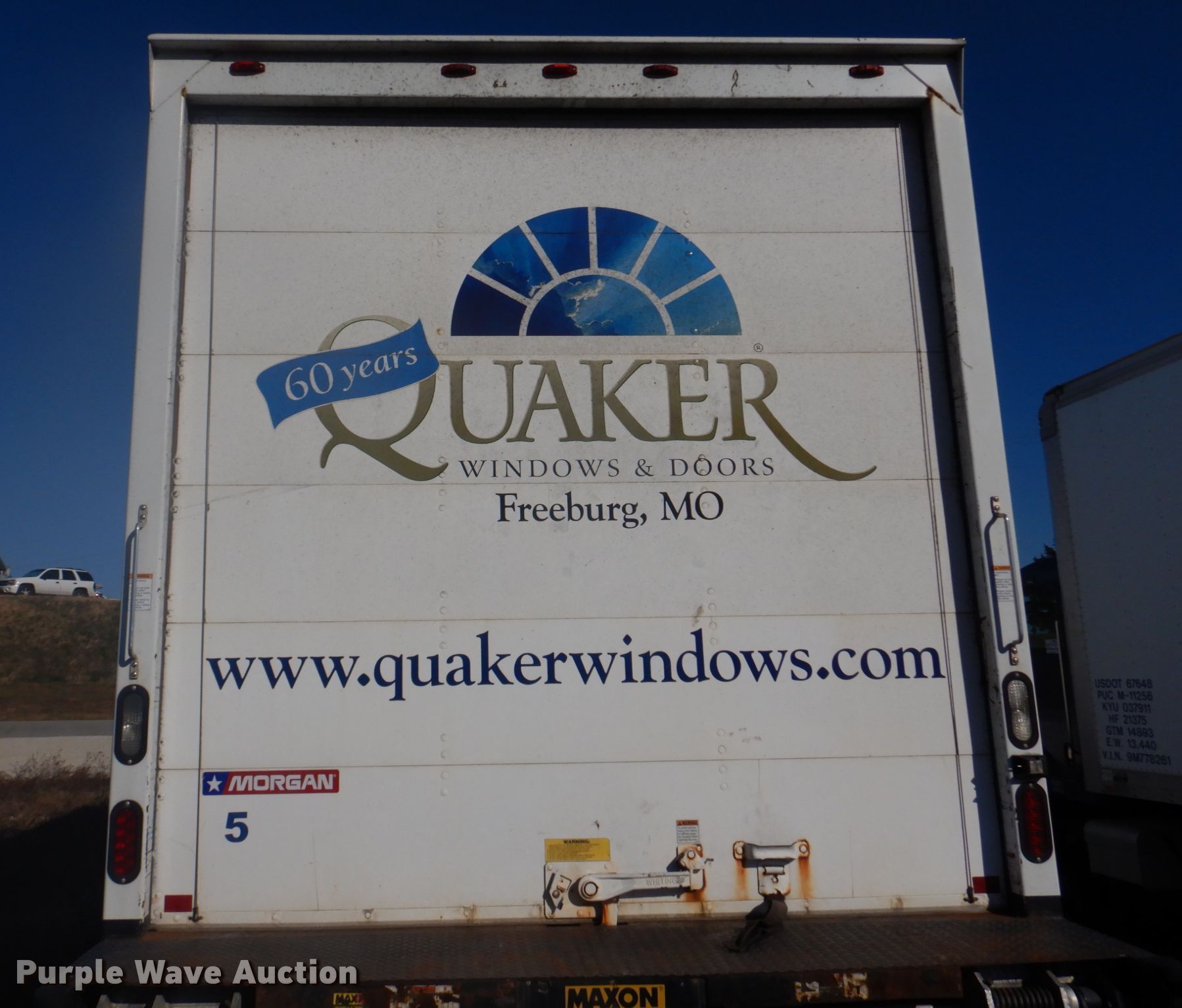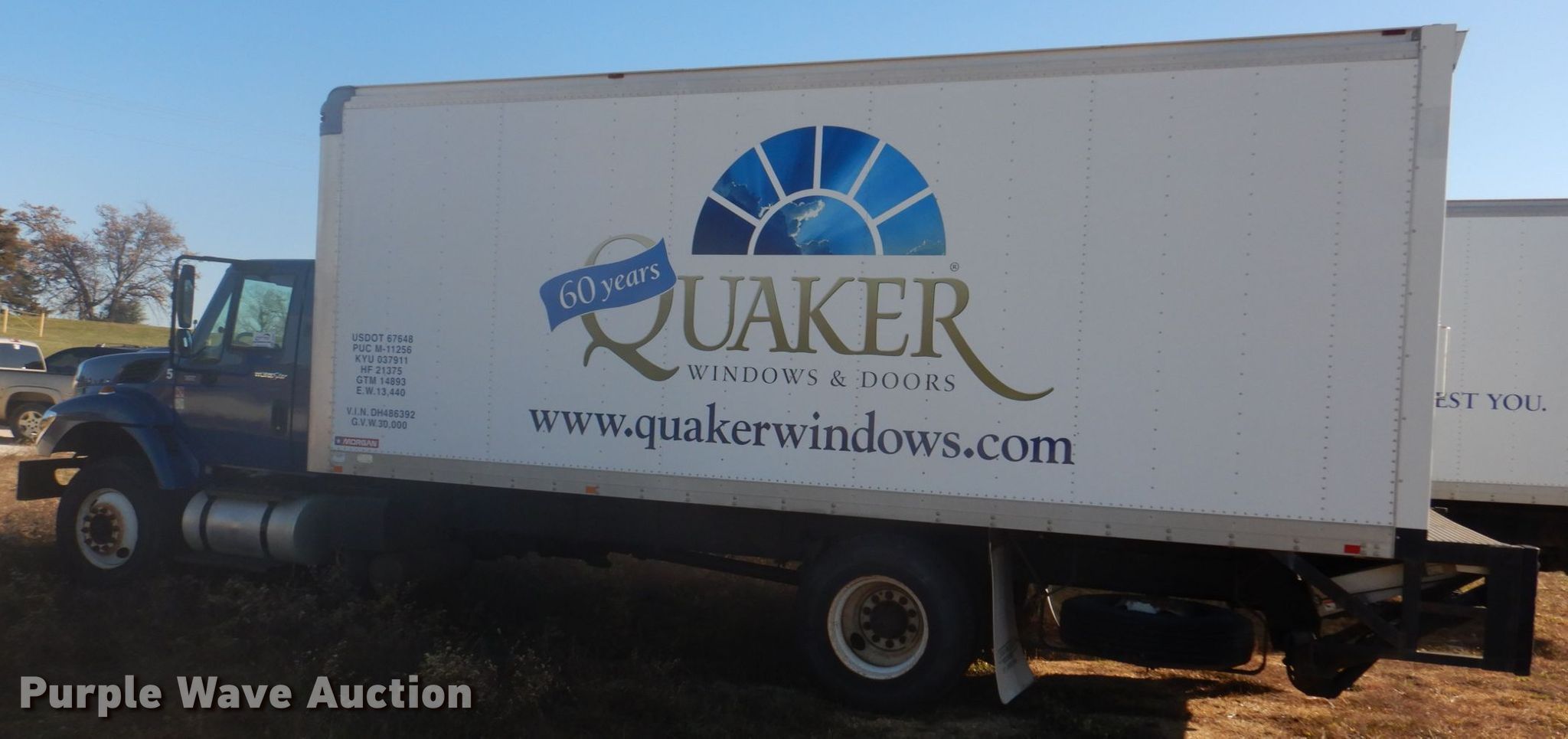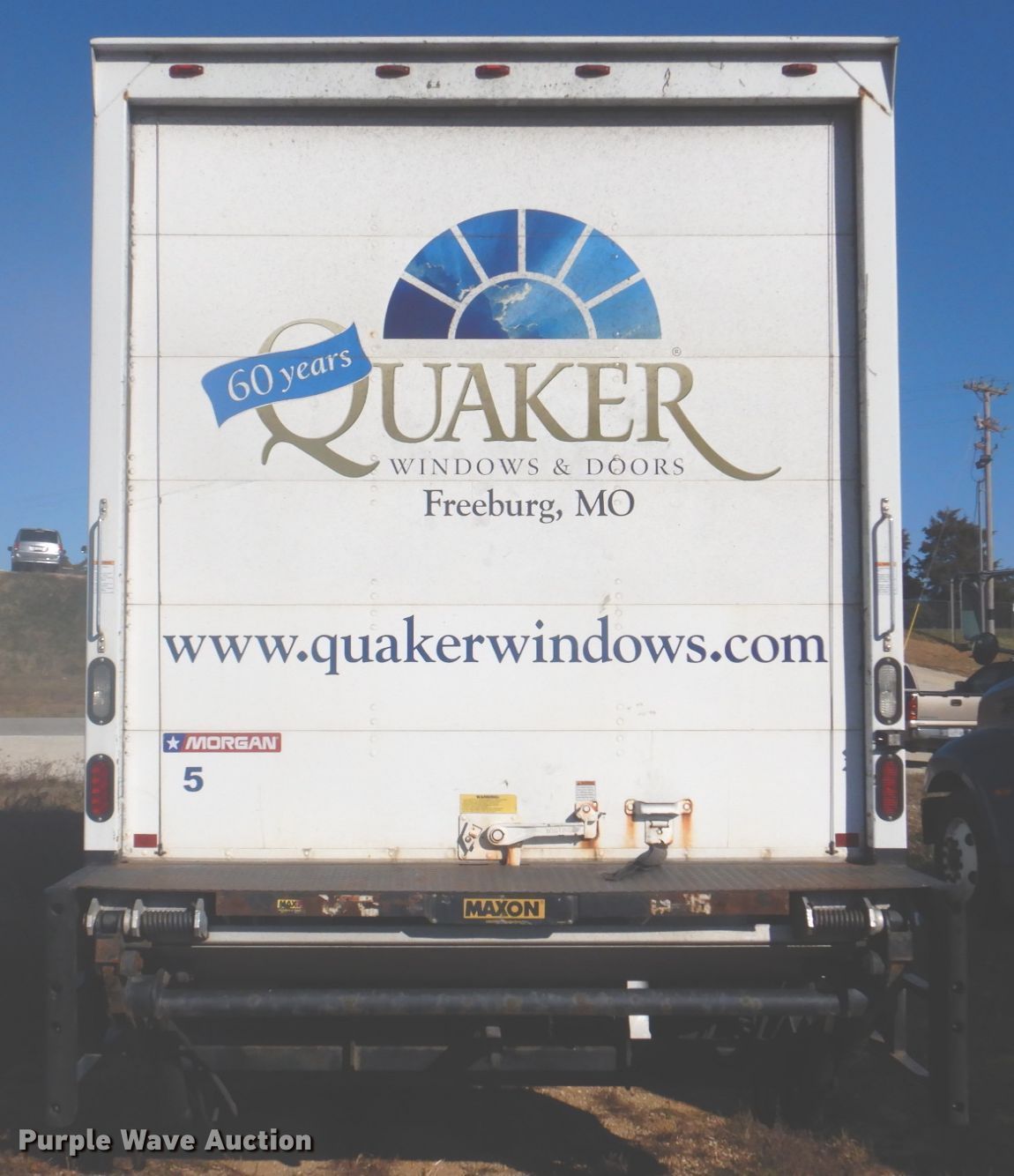 2013 International WorkStar 7300 box truck. Miles: 344,704 on odometer, VIN: 1HTZZAAN5DH486392, Unit #: 5. Engine International DT466, Displacement: 7.6L, Cylinders: 6, Fuel type: Diesel. Transmission Automatic. Chassis Axles: Single, Suspension: Spring, Brakes: Air, GVWR: 29,000 lbs, Wheelbase: 232". Interior AC, Heat. Operational Box bed Morgan GVSD09722FT, Serial: MWI51733-001, 22' L x 92" W x 95" H, Floor: Wood, End gate lift Maxon, Capacity: 3,000 lbs.. Tires Size: 11R22.5. Missouri title. Quaker Windows & Doors. 504 S Hwy 63. Freeburg, MO 65035