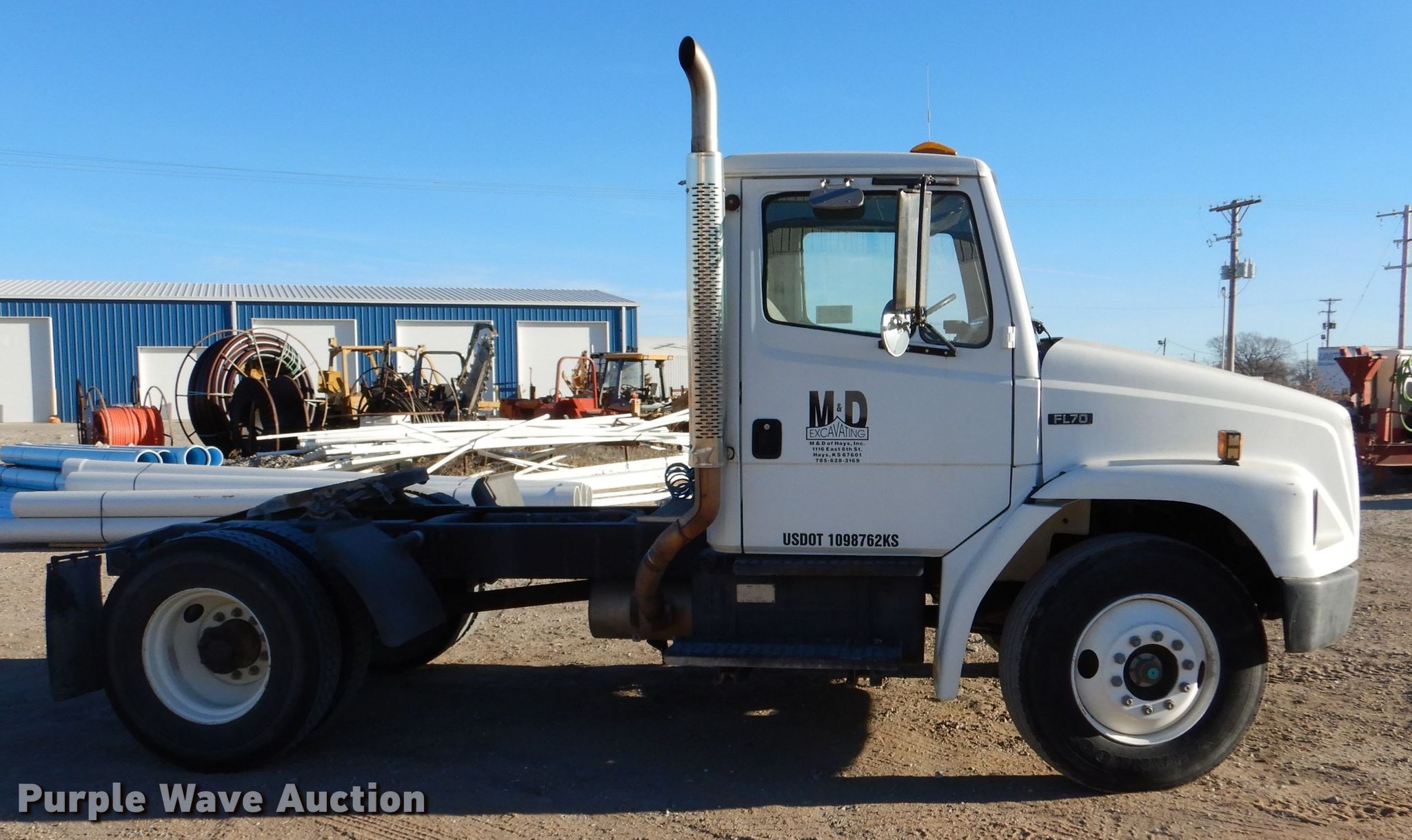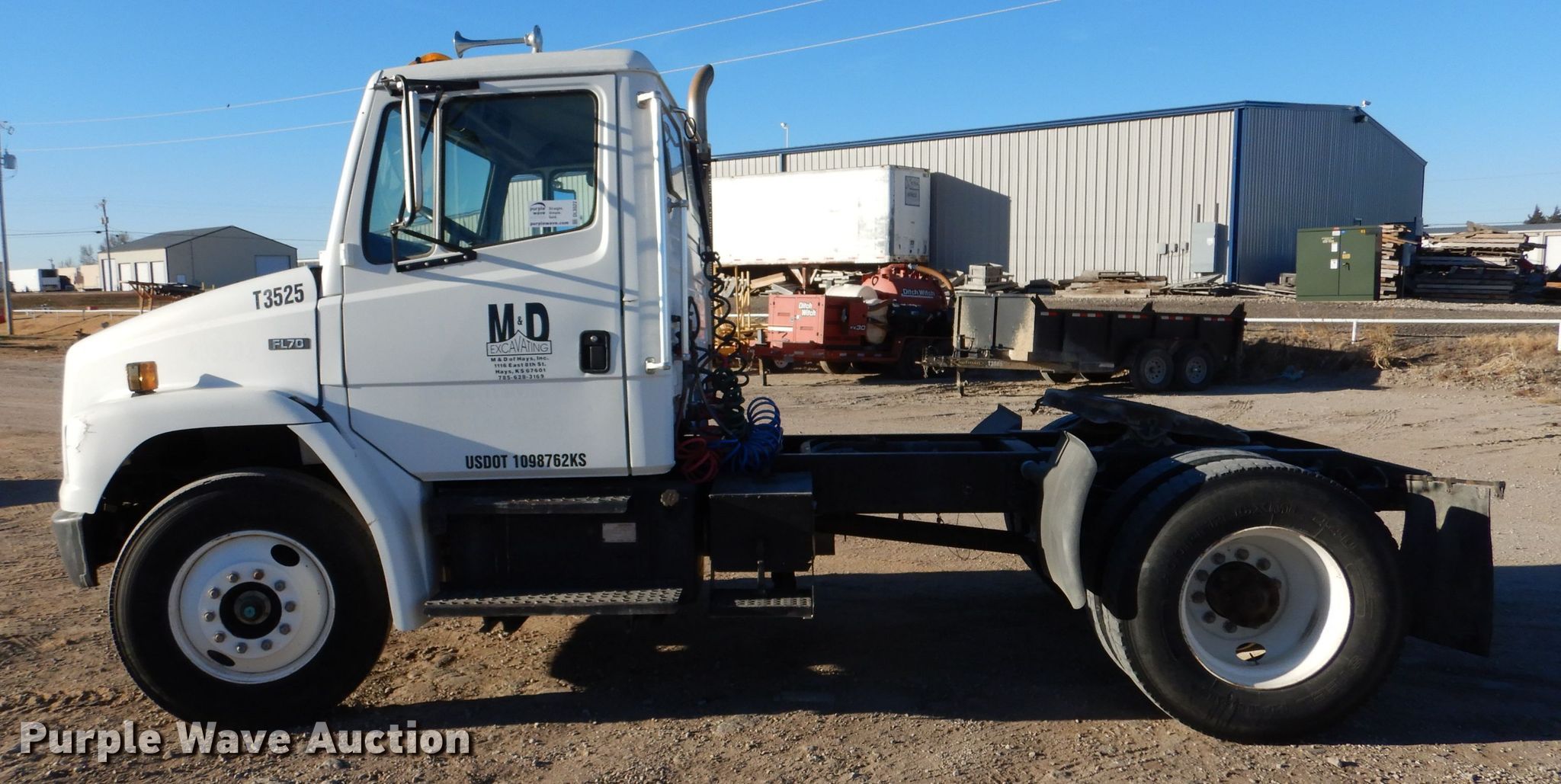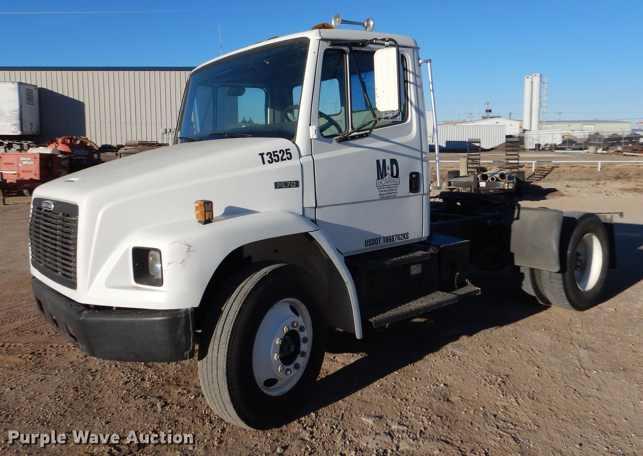 Purple Wave is selling a used Truck Tractor in Kansas. This item is a 1996 Freightliner FL70 semi truck with the following: Miles: 166,555 on odometer, Hours: 9,156 on meter, VIN: 1FUWHLBA3TH770024, Unit #: T3525